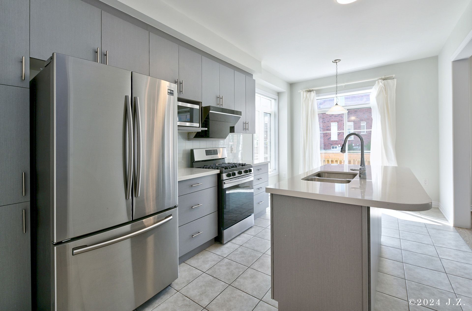 Stunning 4 bedroom end unit townhouse in highly desired neighbourhood! An inviting open-concept floor plan with Oversized backyard on a pie-shaped lot beside ravine! Loads of upgrades include: engineered hardwood on first floor with 9' ceiling. upgraded kitchen cabinet and caesar stone countertop, Stainless steel appliances. Second floor includes a Prime bedroom with ensuite/granite countertop, and walk-in closet plus three other well-sized bedrooms and a second bathroom. Finished Basement with full bathroom and large windows and huge Recreational room for Entertainment! Close toall kinds of shoppings and restaurants! Walking distance to Oodenawi public school! Don't miss it! Legal Description: PART OF BLOCK 541, PLAN 20M1160 DESIGNATED AS PART 1 PLAN 20R21444 ; T/W ANUNDIVIDED COMMON INTEREST IN HALTON COMMON ELEMENTS CONDOMINIUM PLAN NO. 706 SUBJECT TO AN EASEMENTFOR ENTRY AS IN HR1336934 SUBJECT TO AN EASEMENT IN GROSS AS IN HR1559446 SUBJECT TO AN EASEMENT ASIN HR1611192 (C)SUBJECT TO AN EASEMENT AS IN HR1632089 SUBJECT TO AN EASEMENT IN GROSS AS IN HR1634010 TOGETHER WITHAN EASEMENT OVER PART 36, 20R21444 AS IN HR1645794 SUBJECT TO AN EASEMENT OVER PART 1, 20R21444 INFAVOUR OF HALTON COMMON ELEMENTS (C)