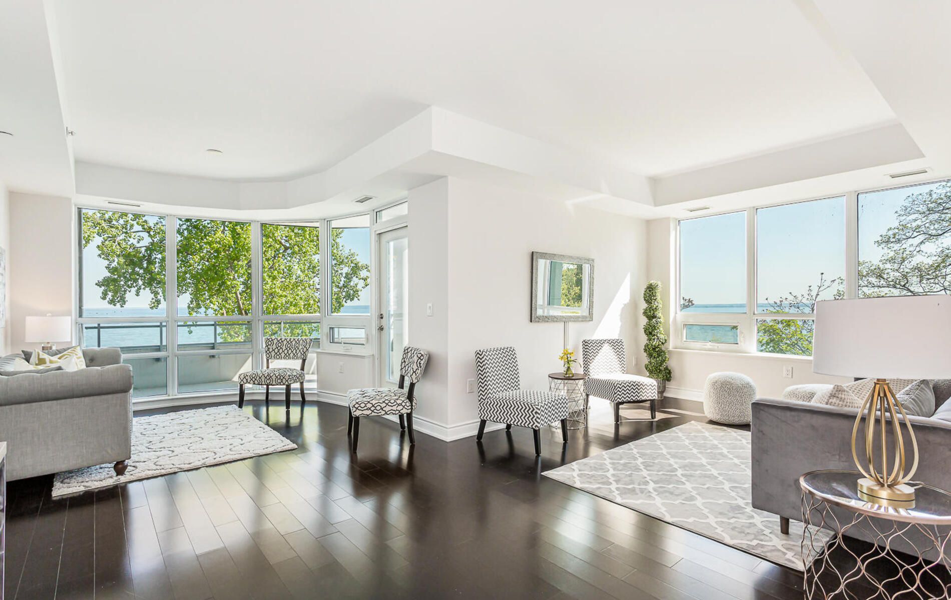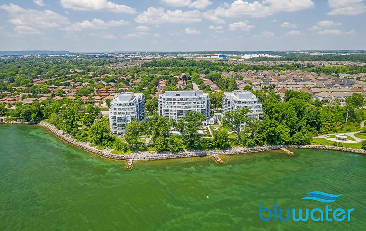 Rarely Offered! A Spectacular Waterfront Resort Style Luxury Corner Condo Apartment! Enjoy An Unobstructed & Breathtaking Paranomic View of Lake Ontario from your Living, Breakfast, Dining And Bedrooms or From The Two Wrap-around Balconies! Brand New Porcelain Tiles in the Foyer & Kitchen. The Chef's Kitchen Has High-End Built-in Appliances and a Quartz countertop. Two Large bedrooms With SPA Like Ensuite. This Lovely condo apartment Has Hardwood Floor Throughout and It Has Been Freshly Painted. The Large Den Can Be Used As An Office or a 3rd Bedroom. This Exquisite Bluwater Community is Loaded with Amenities Including an Outdoor Pool! Steps To Trails, Parks, Beach, and Public Transit! View 3D Mettaport Virtual Tour.Buyers To Verify All Measurements, Property Taxes & Maintenance Fee.