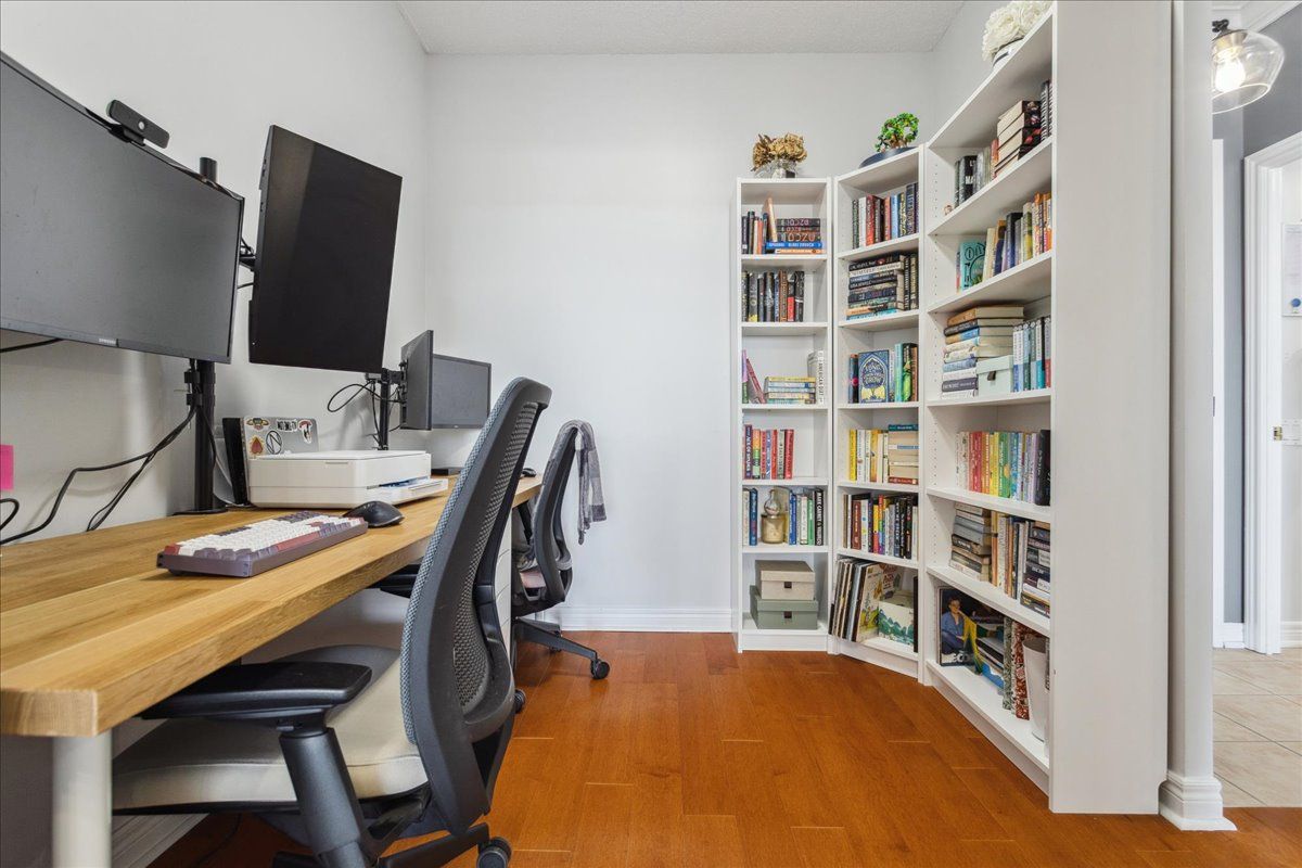 Sundrenched 1 Bed + Den In Oakridge Heights Community! A Commuter's Dream - Steps From The Oakville Go Stn, Wholefoods And Quick Access To Qew/403! Walking Distance To Schools, Shopping, Oakville Mall, Waterfront Trails & Downtown Oakville! Open Concept 856 Sqft Floor Plan, 9Ft Ceilings, Hardwood Flooring! Unobstructed West View With Floor-To-Ceiling Windows. Small Balcony, Soaker/Jetted Tub & Sep Shower, Separate Walk-In Closet & Plenty Of Storage Space. Large Den. Laundry Rm W/Storage.