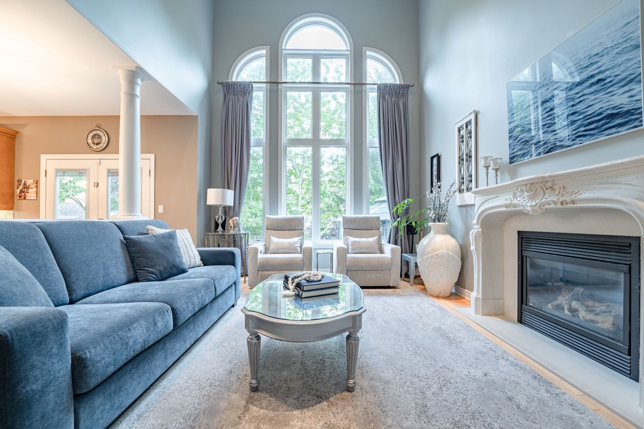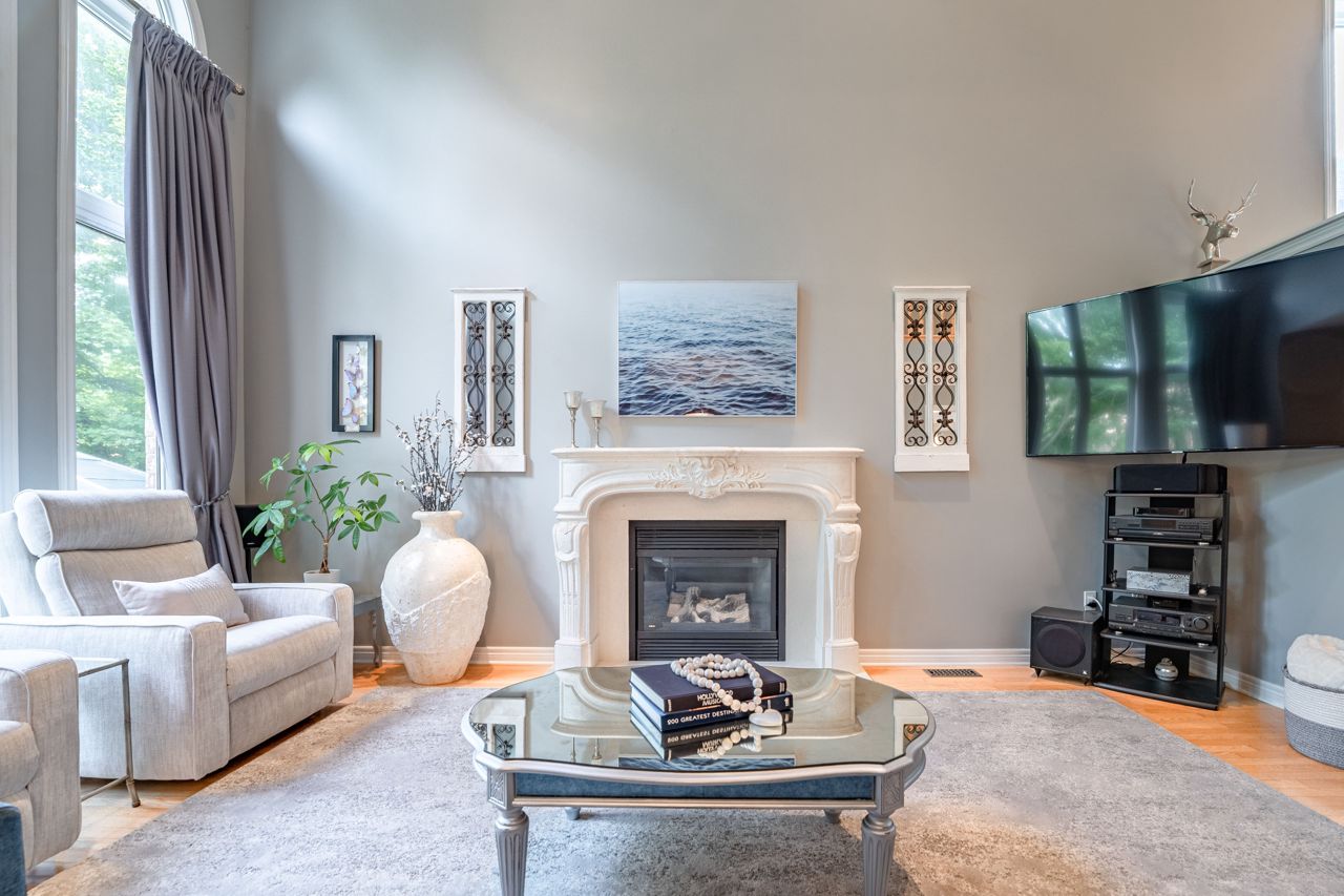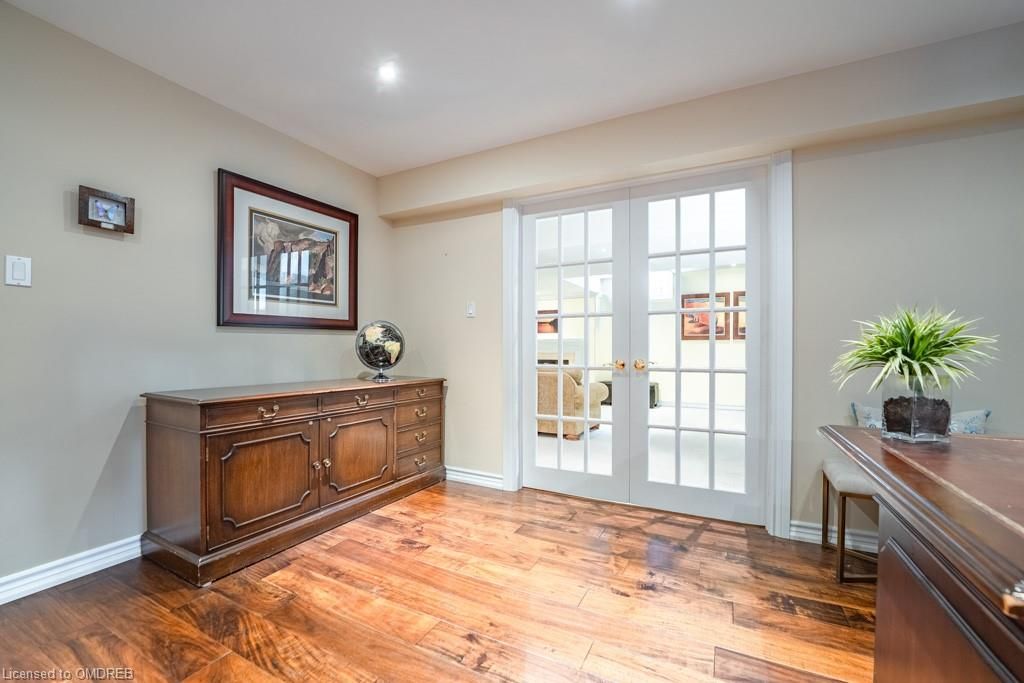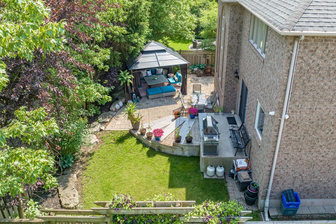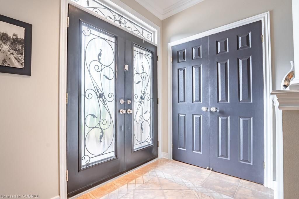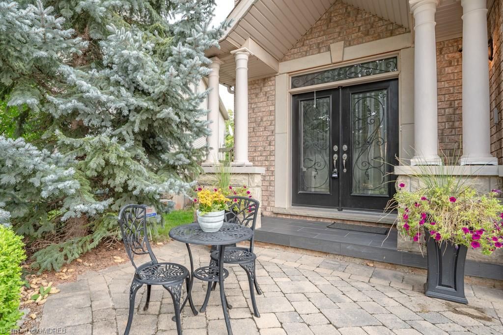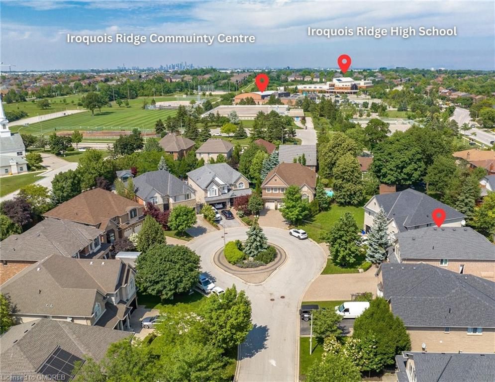 Situated on a 55-ft lot at a cul-de-sac's end, this custom 4+1-bedroom home offers luxury in Iroquois Ridge North with 4122 sqft of living space, with rare 3-car garage! featuring black-framed windows, a brick & stone façade & double front doors. Inside, hardwood floors, crown moldings & a functional layout adorn the main level. Elegant living/dining area. The eat-in kitchen has Maple cabinets, newer S/S app. & French doors opening to the private backyard. There is custom laundry/mud room. The inviting 2-storey family rm w/a fireplace complete the scene. The primary bdrm boasts 2 walk-in closets & a 5-piece ensuite. 3 more hardwood-adorned bdrms share a 5-piece bath with ensuite privileges. Lower level includes a finished family rm with a fireplace, a 3-piece bathroom & a 5th bedroom/office with w/in closet. Professionally landscaped yard features mature trees, interlock detailing & park for 10 cars. Close proximity to Oakville's top schools, trails, parks, and more!HWT, furnace, and AC owned - 2017