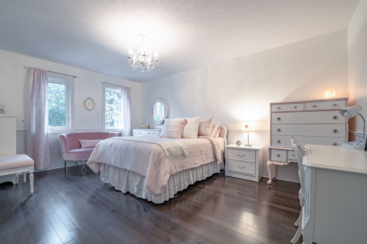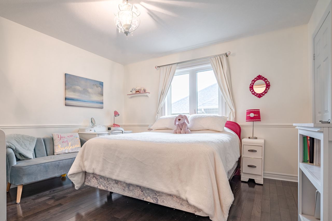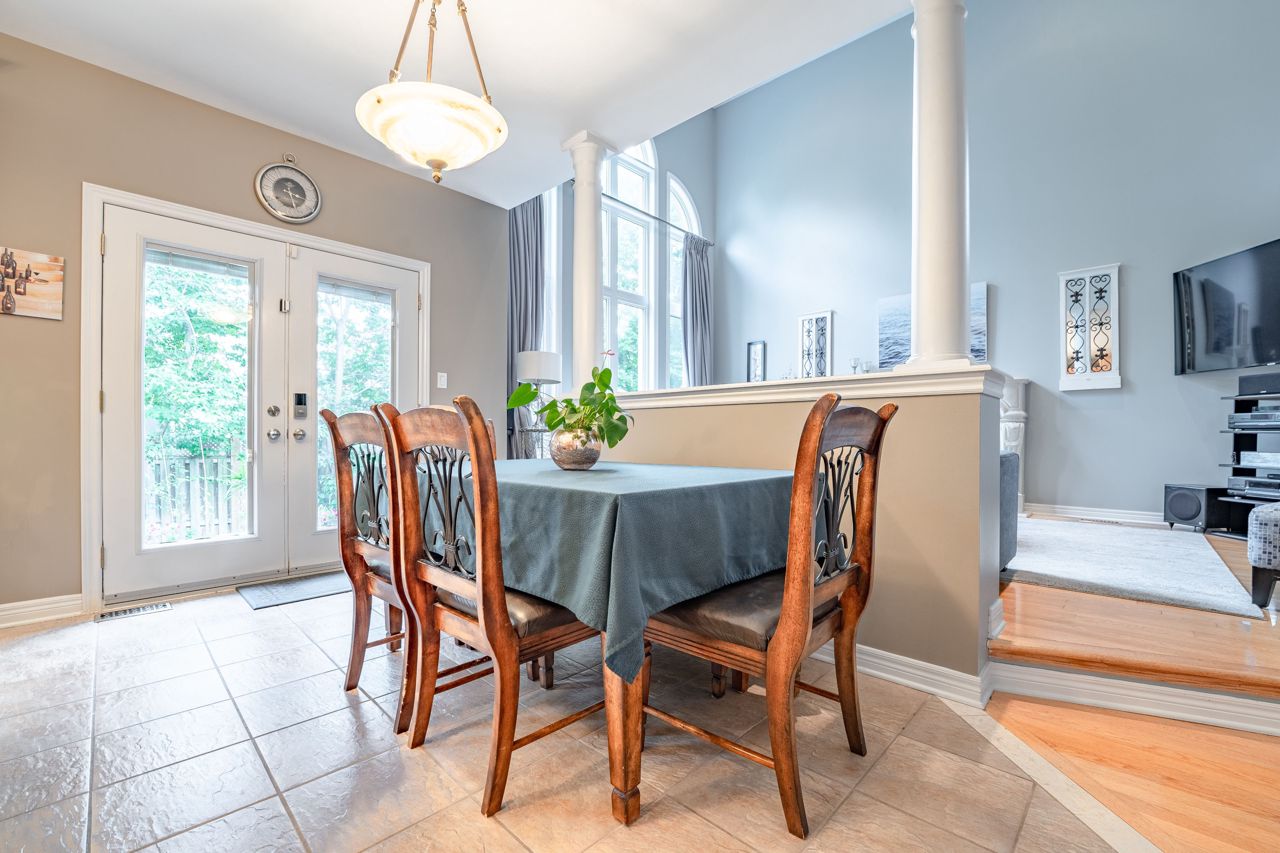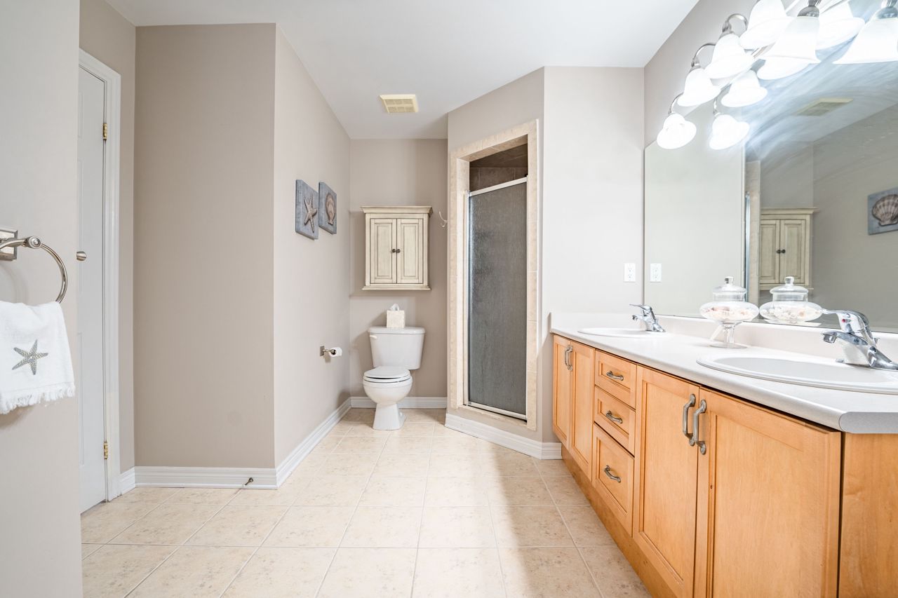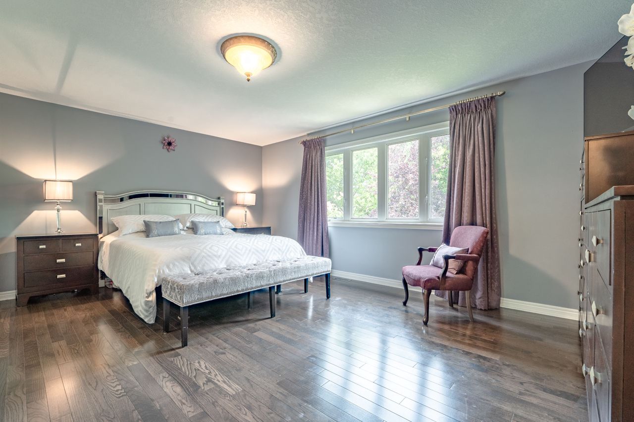 Situated on a 55-ft lot at a cul-de-sac's end, this custom 4+1-bedroom home offers luxury in Iroquois Ridge North with 4122 sqft of living space, with rare 3-car garage! featuring black-framed windows, a brick & stone façade & double front doors. Inside, hardwood floors, crown moldings & a functional layout adorn the main level. Elegant living/dining area. The eat-in kitchen has Maple cabinets, newer S/S app. & French doors opening to the private backyard. There is custom laundry/mud room. The inviting 2-storey family rm w/a fireplace complete the scene. The primary bdrm boasts 2 walk-in closets & a 5-piece ensuite. 3 more hardwood-adorned bdrms share a 5-piece bath with ensuite privileges. Lower level includes a finished family rm with a fireplace, a 3-piece bathroom & a 5th bedroom/office with w/in closet. Professionally landscaped yard features mature trees, interlock detailing & park for 10 cars. Close proximity to Oakville's top schools, trails, parks, and more!HWT, furnace, and AC owned - 2017
