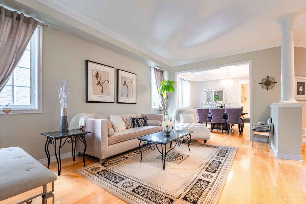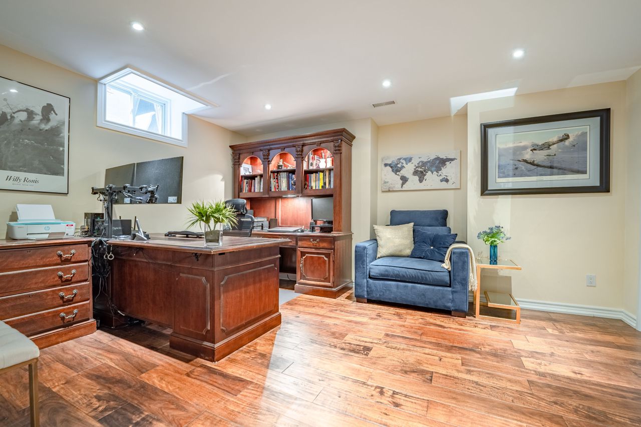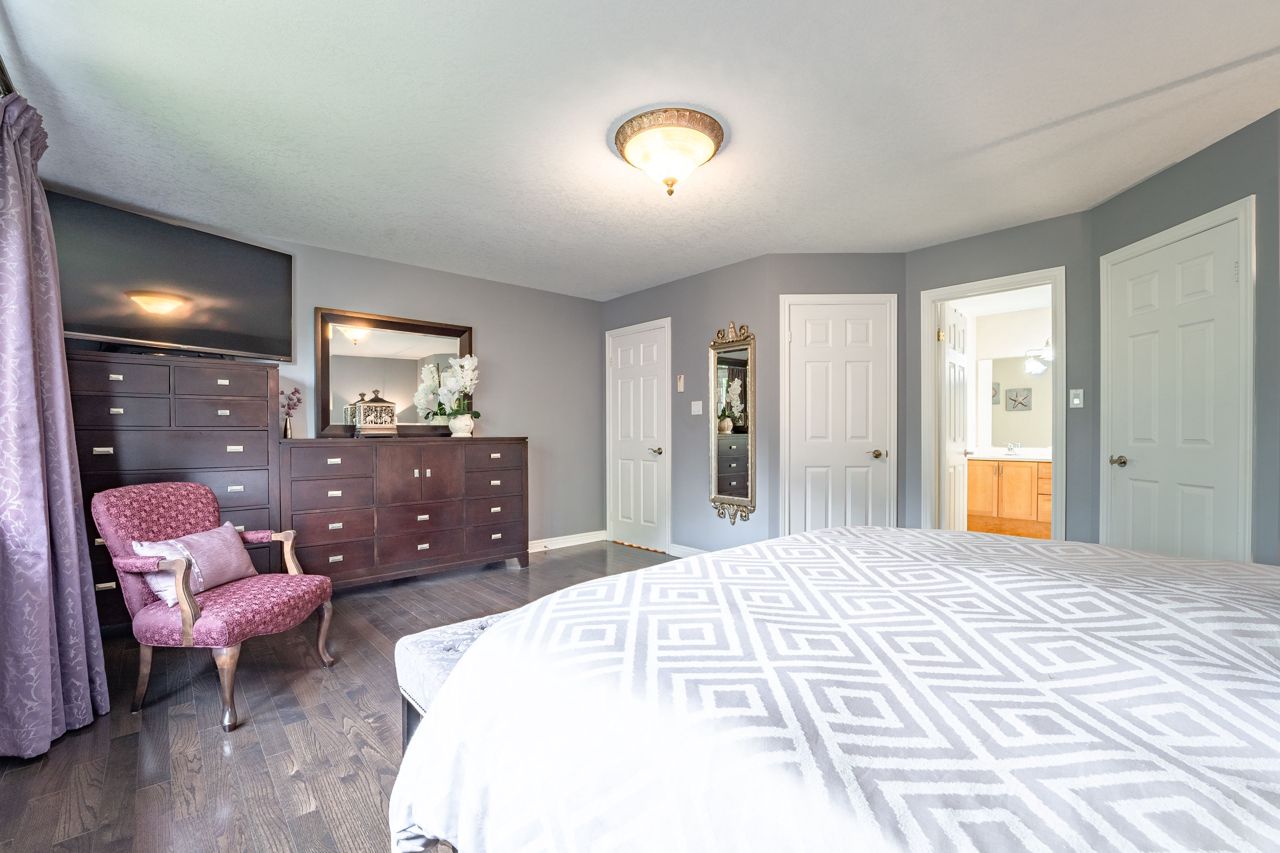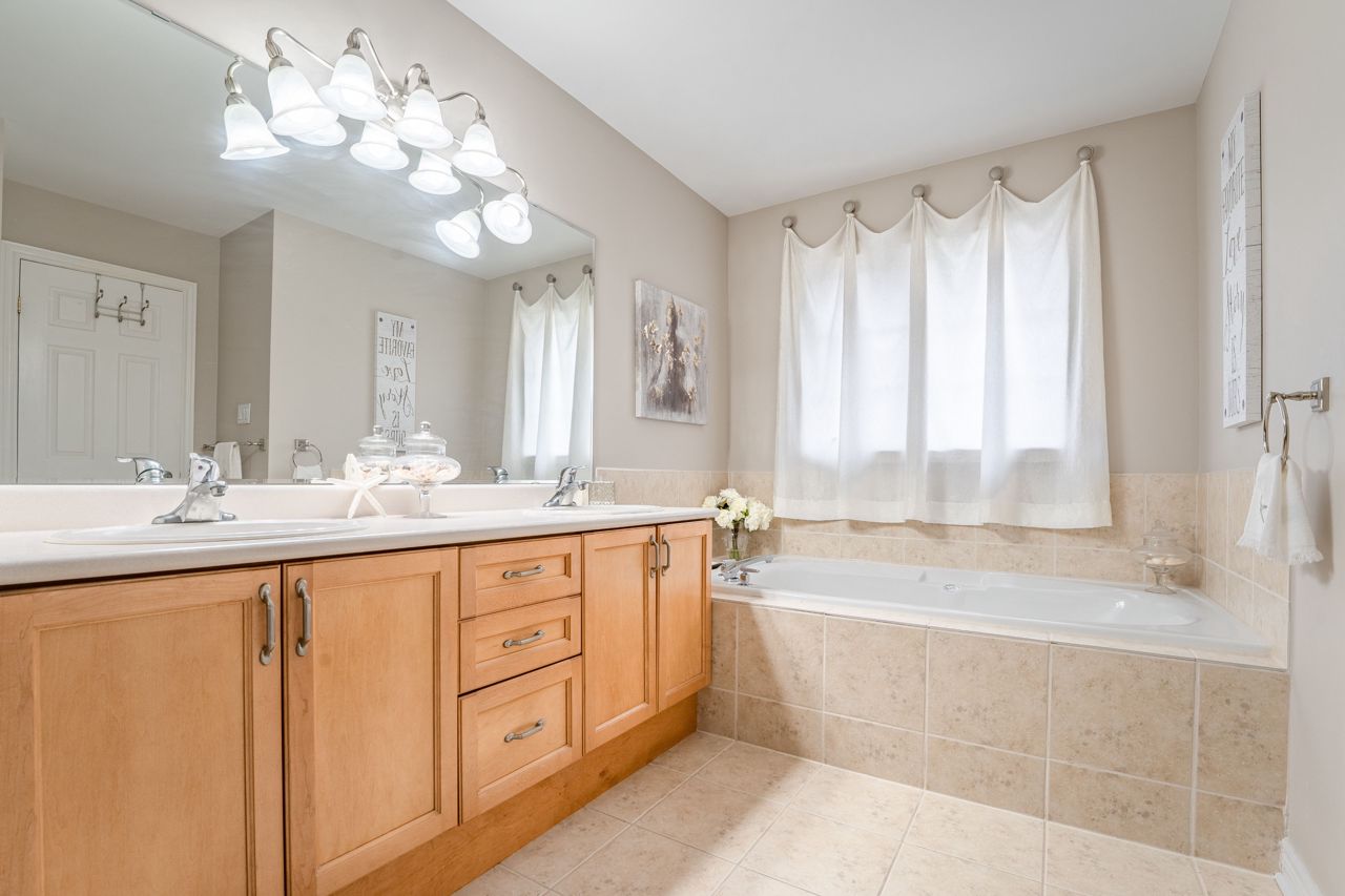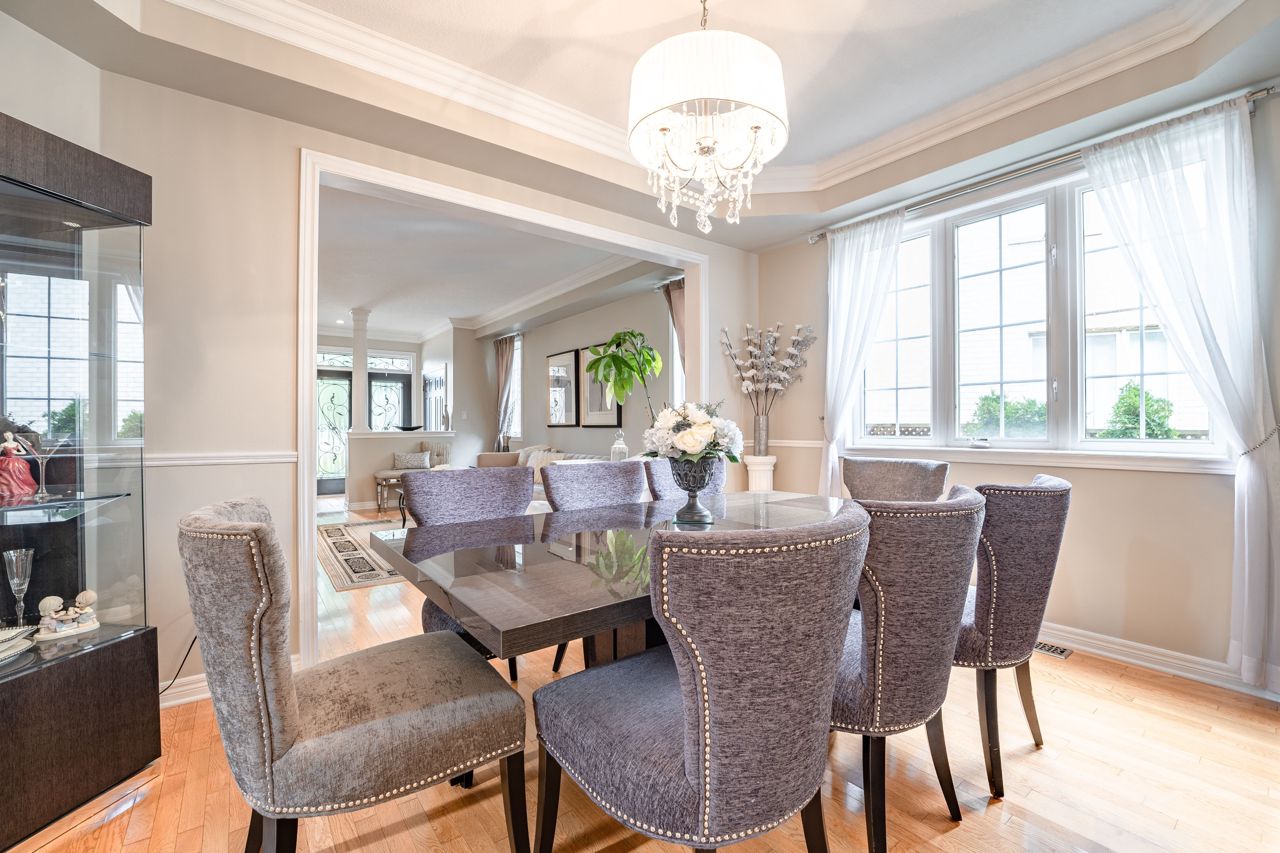 Situated on a 55-ft lot at a cul-de-sac's end, this custom 4+1-bedroom home offers luxury in Iroquois Ridge North with 4122 sqft of living space, with rare 3-car garage! featuring black-framed windows, a brick & stone façade & double front doors. Inside, hardwood floors, crown moldings & a functional layout adorn the main level. Elegant living/dining area. The eat-in kitchen has Maple cabinets, newer S/S app. & French doors opening to the private backyard. There is custom laundry/mud room. The inviting 2-storey family rm w/a fireplace complete the scene. The primary bdrm boasts 2 walk-in closets & a 5-piece ensuite. 3 more hardwood-adorned bdrms share a 5-piece bath with ensuite privileges. Lower level includes a finished family rm with a fireplace, a 3-piece bathroom & a 5th bedroom/office with w/in closet. Professionally landscaped yard features mature trees, interlock detailing & park for 10 cars. Close proximity to Oakville's top schools, trails, parks, and more!HWT, furnace, and AC owned - 2017