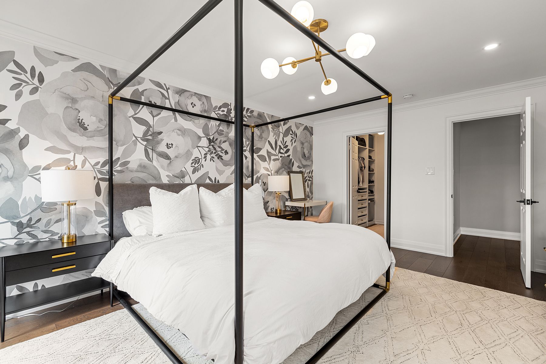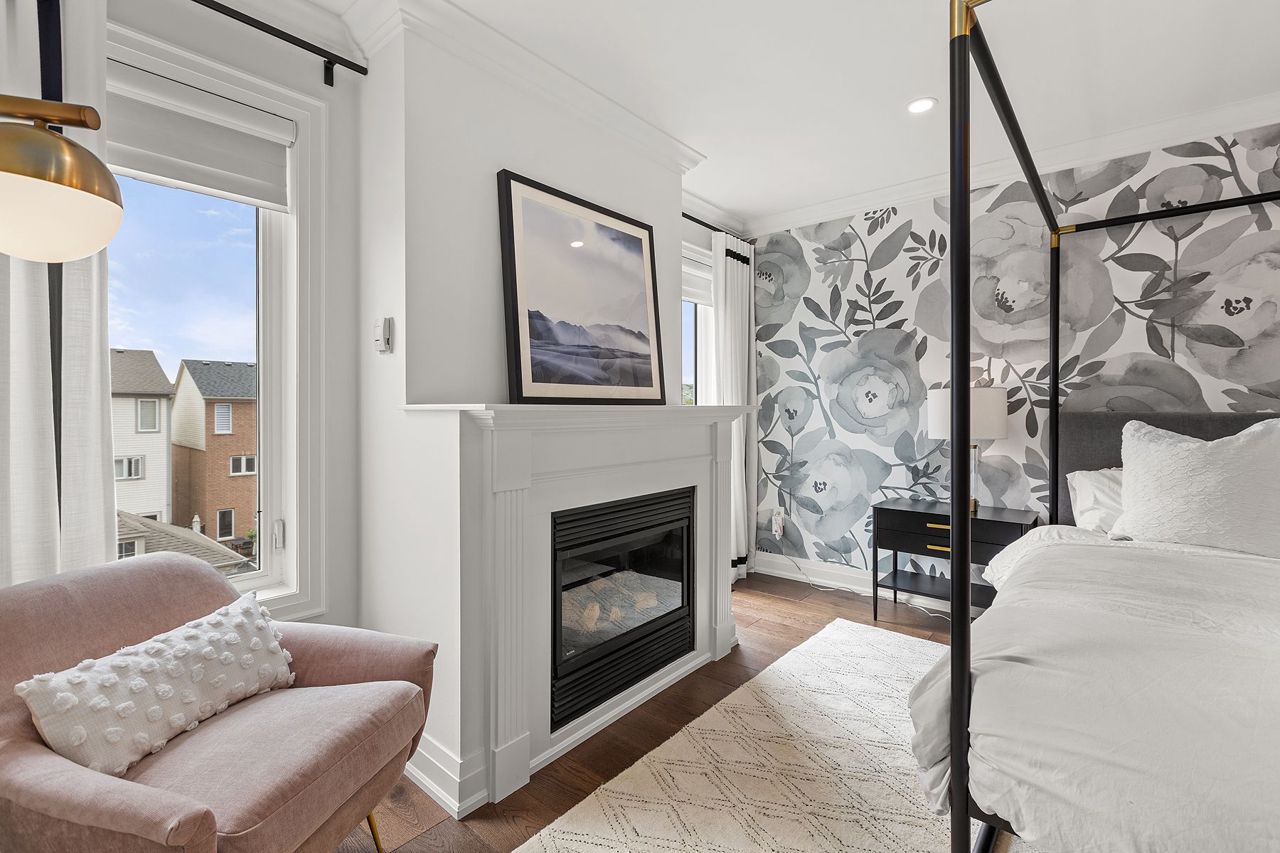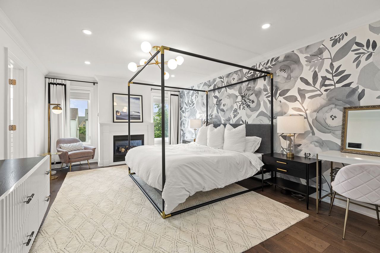 Gas Fireplace Ensuite Bath Hardwood Floor
