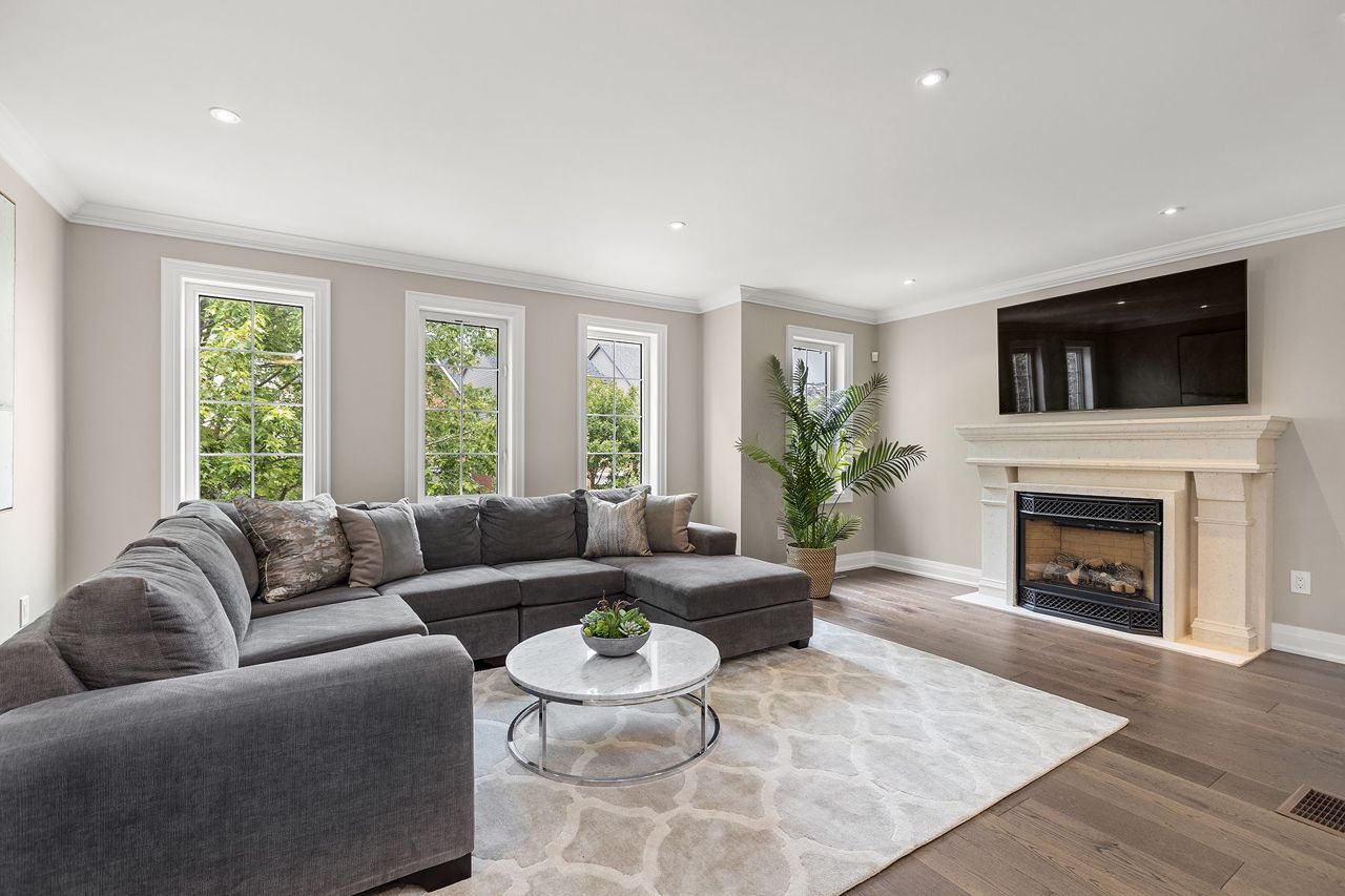Hardwood Floor Gas Fireplace Large Window