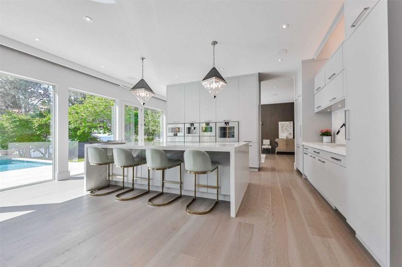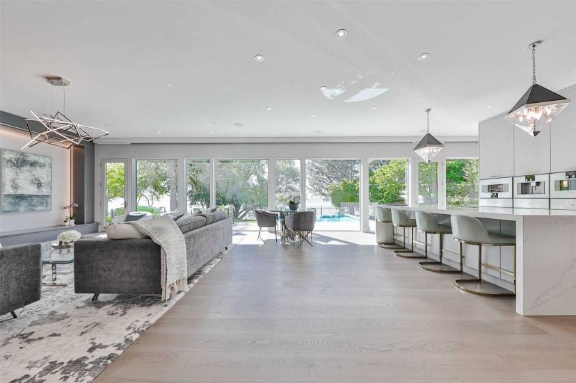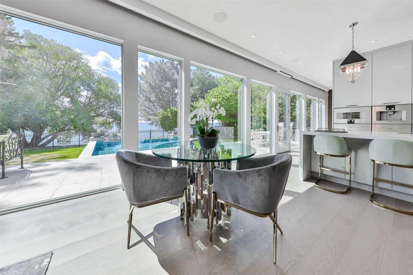 位于奥克维尔东南Eastlake 的最先进的一线湖景定制住宅。进入定制的门,立即欣赏到安大略湖的景色,并从上层和主层的几乎每个房间继续欣赏 92 英尺的非河岸湖景。每层楼的天花板为 10 英尺,剧院室和高尔夫模拟区的天花板为 11 英尺。配备定制 SS Gaggenau 电器和定制橱柜和抽屉的美食厨房是娱乐人士的梦想。主层办公室,可欣赏湖景。任何有瓷砖的地方都可控温加热地板,让您的双脚保持温暖。上层有 4 间大卧室,均配有套间和步入式衣橱。可欣赏全景湖景的主要休息区、带岛的大型步入式衣柜、带定制坐浴盆的 5 件套套间、浸泡浴缸、他和她的水槽、步入式淋浴间和磨砂玻璃私密卫生间区域。乘坐 3 层电梯下到较低楼层,在您的剧院房间享受电影之夜,或在您的模拟器中练习高尔夫挥杆,或在带酒吧、葡萄酒冰箱、燃气壁炉和 75 英寸电视的大型开放区域与家人和朋友聚会.下层还有备用卧室、水疗室、工艺室。游泳的时间?从步行地下室上去,潜入俯瞰安大略湖的无边泳池,同时等待内置烧烤的食物完成。