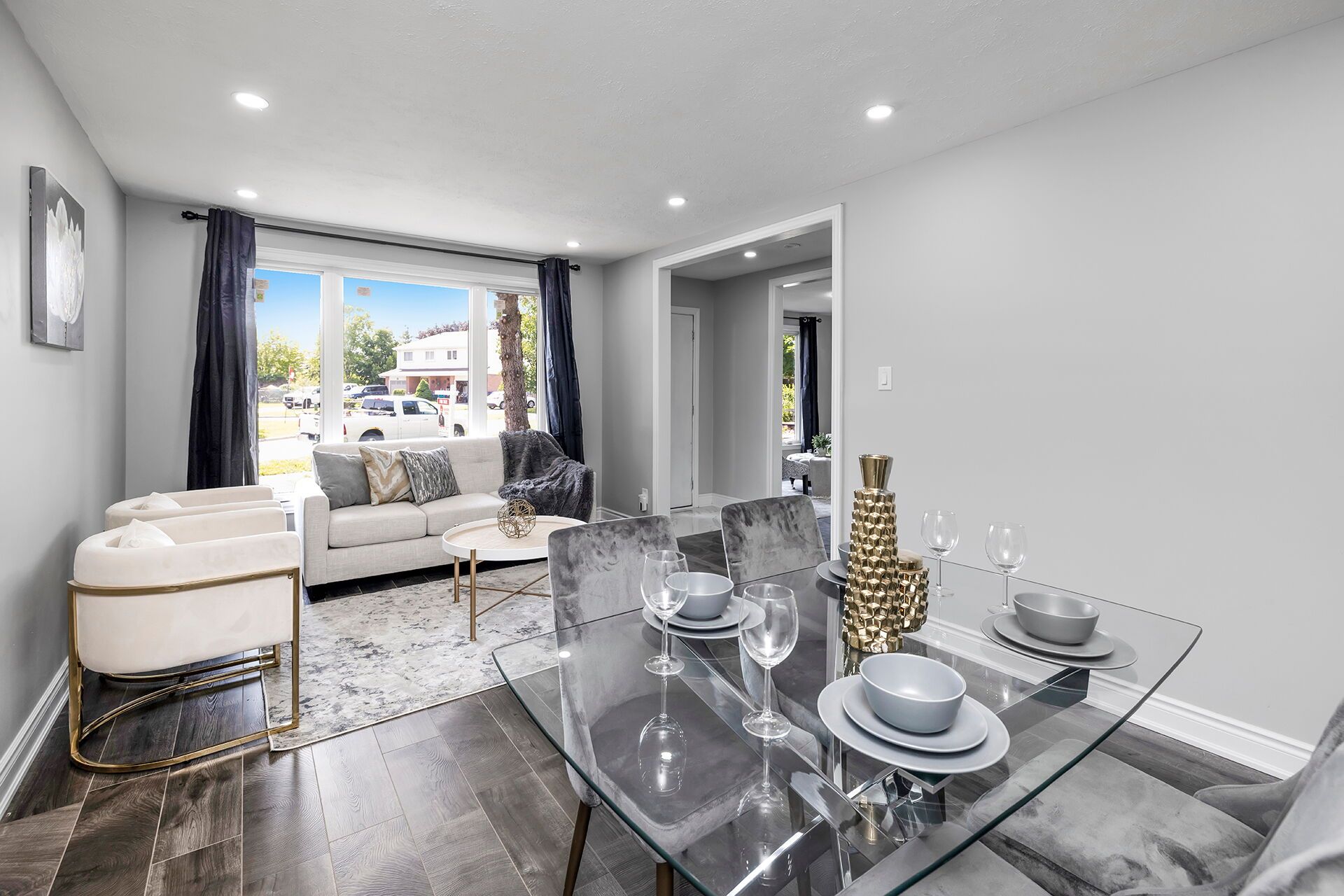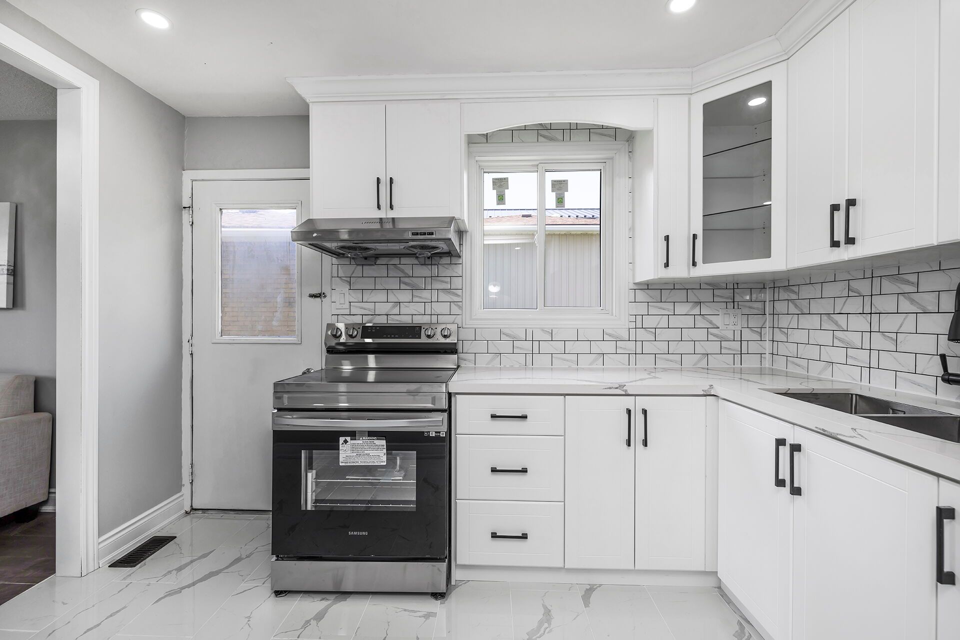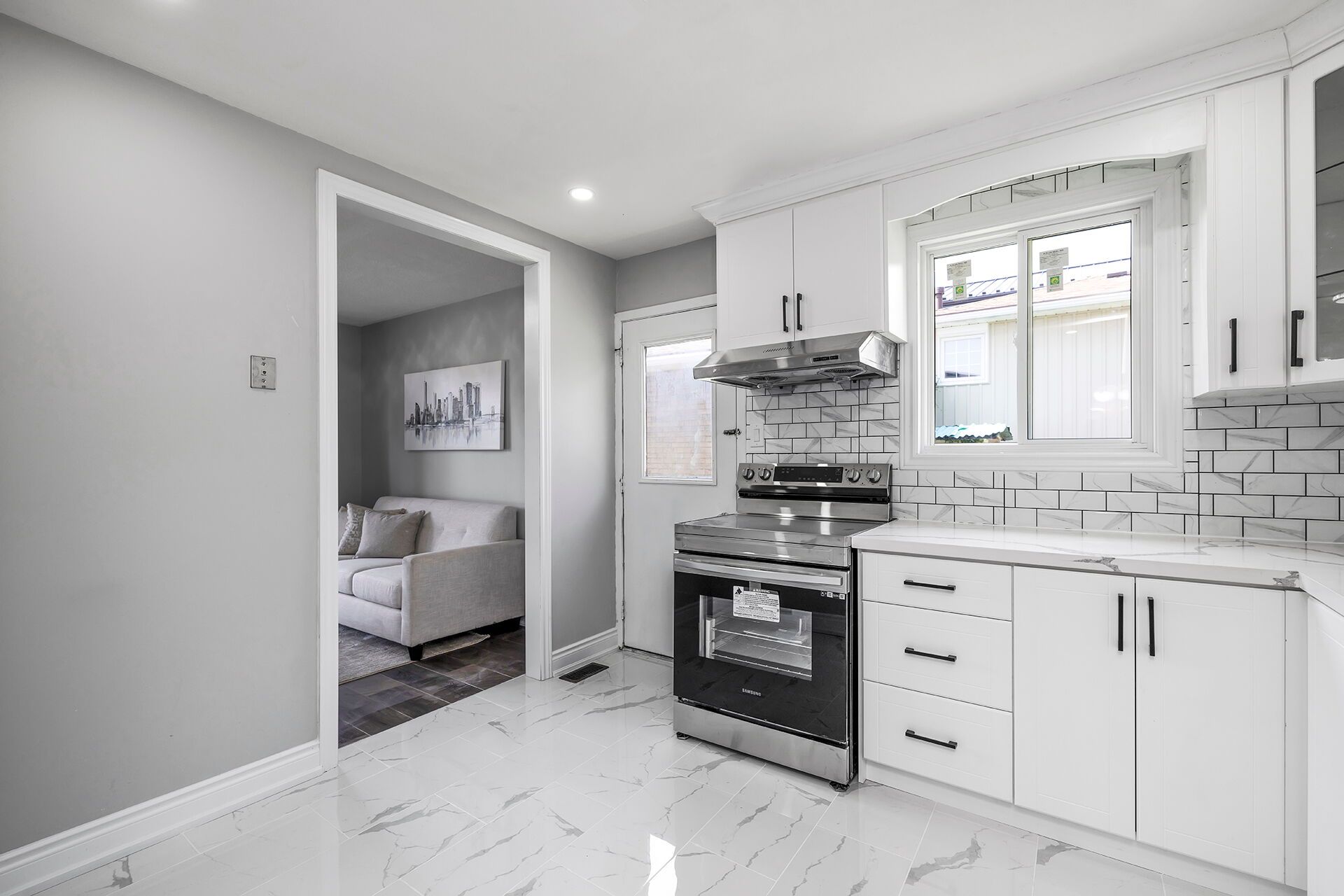 Fully Renovated Top to Bottom Luxury with 3 Bedrooms plus 2 Full washrooms , 3+ 1 = 4 Car Parking. Brand New Modern kitchen with Quartz countertop, Backsplash , Brand New High-End S/S Appliances , Brand New Flooring, Freshly Painted, Both washrooms fully renovated with glass doors, Brand New all Windows & Doors , New Windows Covers (Drapery's) , New Ashphalt Driveway, New Garage Door , New Grass & Landscaping .Washer, Dryer, Stove, Fridge, Tankless Water Heater All Window Coverings and mirrors .