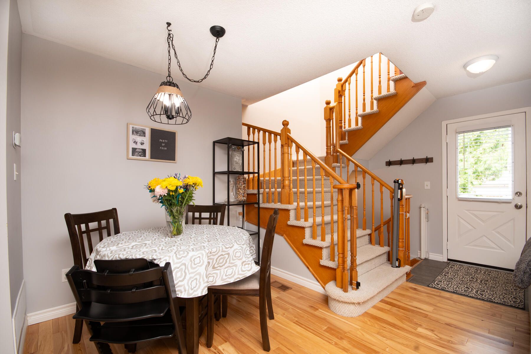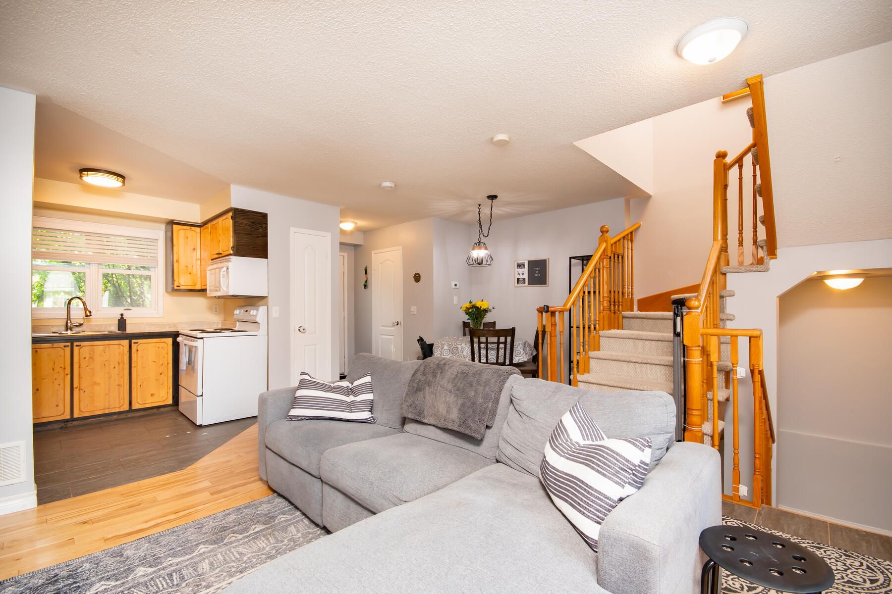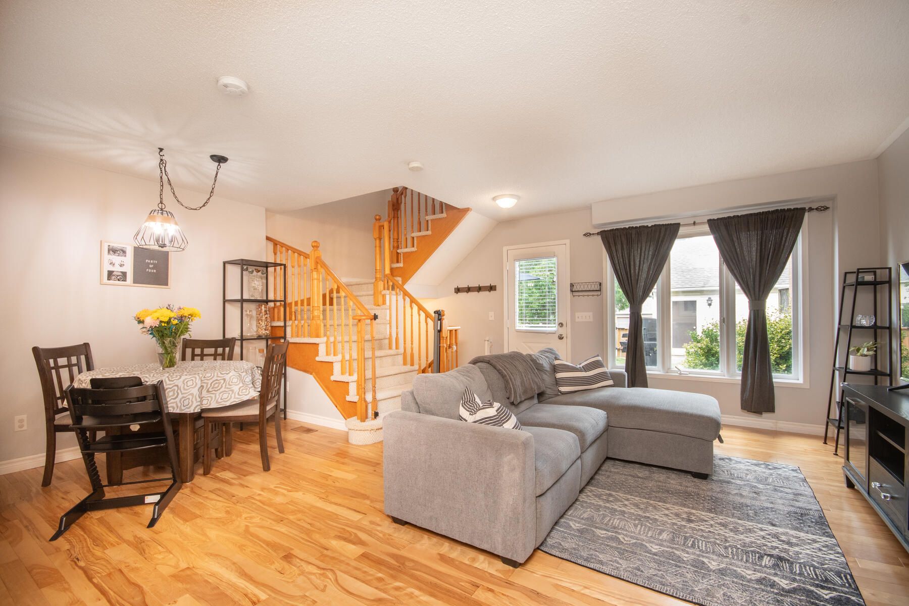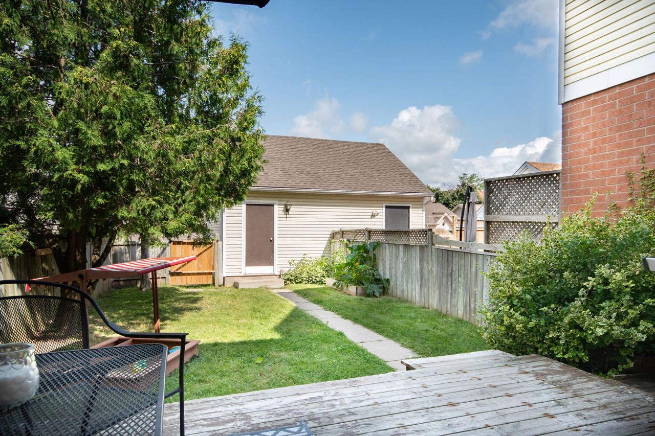 Location, location location! This lovely 2 bedroom townhome in high demand Montgomery Village is sure to suit your tastes and your budget. Bright and open concept main floor featuring maple hardwood floors, 2pc powder room and walk out to large private fenced yard. Detached fully insulated and drywalled garage. Oversized primary bedroom with double windows and large closet system. Walking distance to shopping, schools, rec centre, walking trails, parks and more! Perfect for those starting out or starting over. Ideal commuter location.Furnace & AC replaced 2016 Grg roof 2017, house roof 2011 2pc rough in bsmt