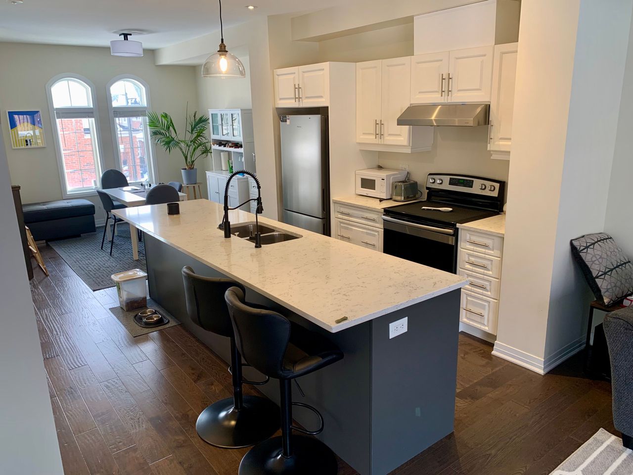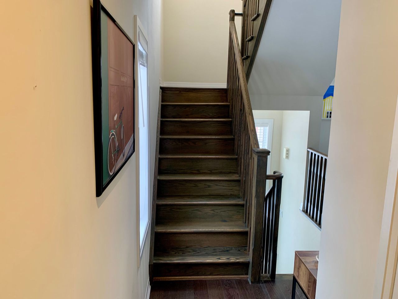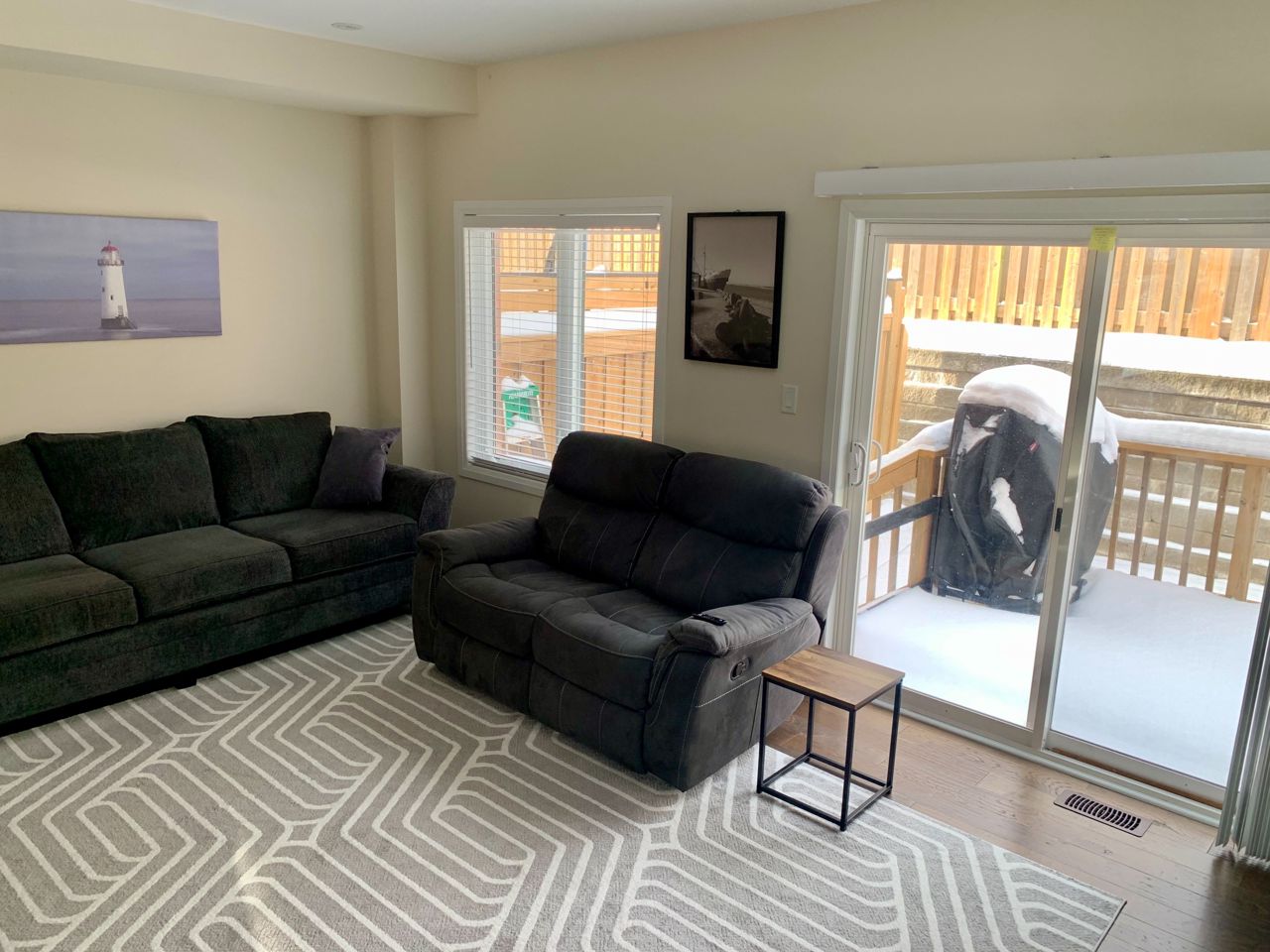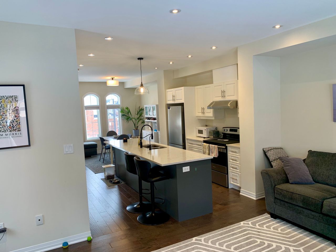 Beautiful 2 storey end unit townhome is located in a prime downtown location, offering both comfort and convenience. Nicely located in quiet area with very private fenced backyard. One of the largest lots in the neighbourhood. Main level showcases stunning hardwood flooring that radiates warmth and elegance, complemented by plenty of pot lights that fill the area with light, enhancing the contemporary atmosphere. The heart of the home is the gourmet kitchen, with water treatment system complete with a center island featuring a breakfast bar and quartz counters, the perfect spot for casual dining or entertaining guests. This open layout seamlessly connects the kitchen to the Dining Room and Living Room with walk-out to backyard, creating a roomy and inclusive space for entertaining family and friends. Ascend to the upper level with upgraded Berber carpet where there are 3 bedrooms including the primary bedroom with spa like 3 piece ensuite. These well-appointed rooms offer comfort and privacy, making them perfect for a growing family or accommodating overnight guests. The completely finished lower level provides extra living area with direct entry to the garage, making it an ideal space for a home office setup or family rec room.
