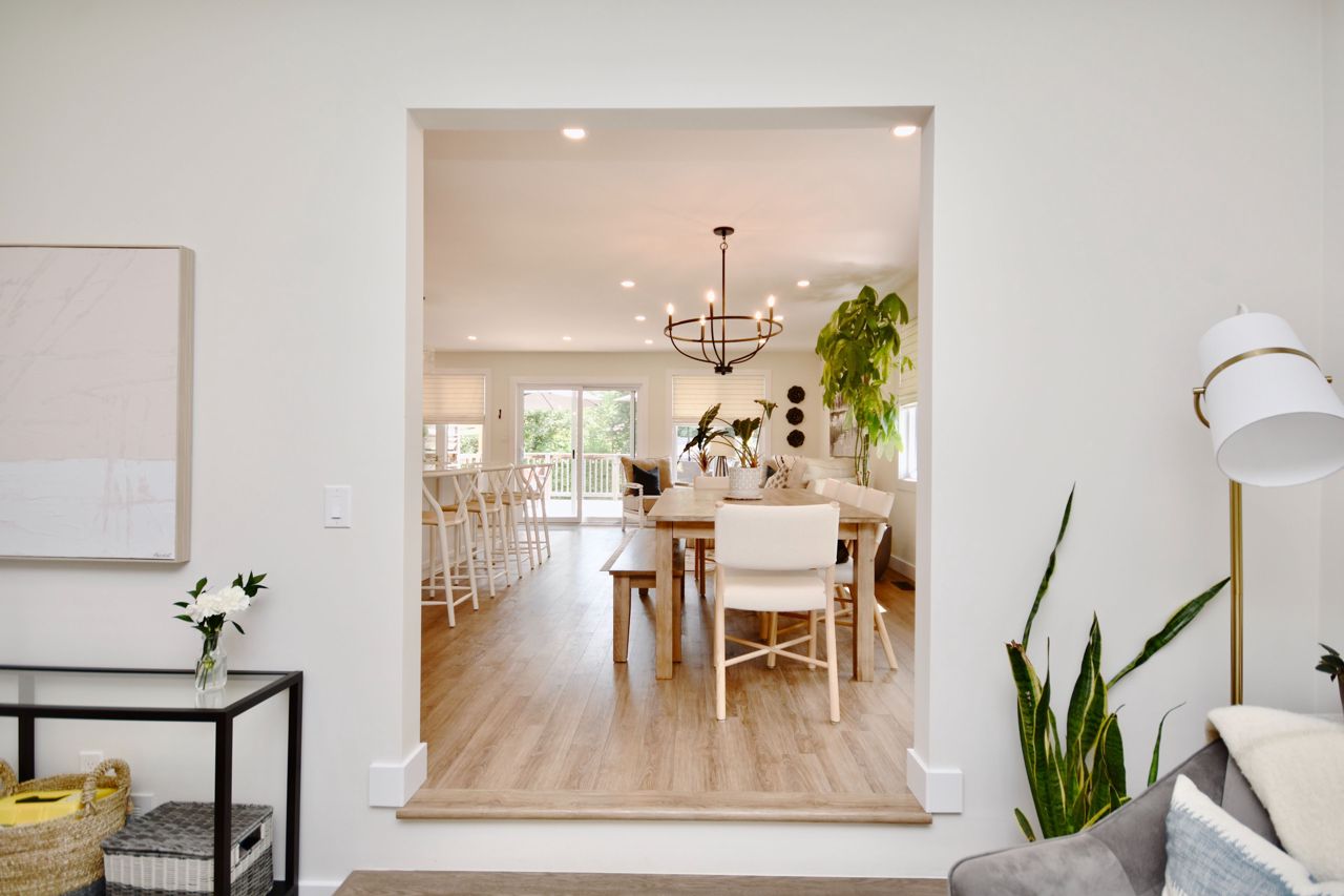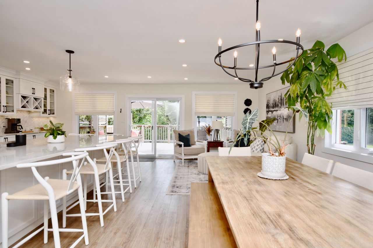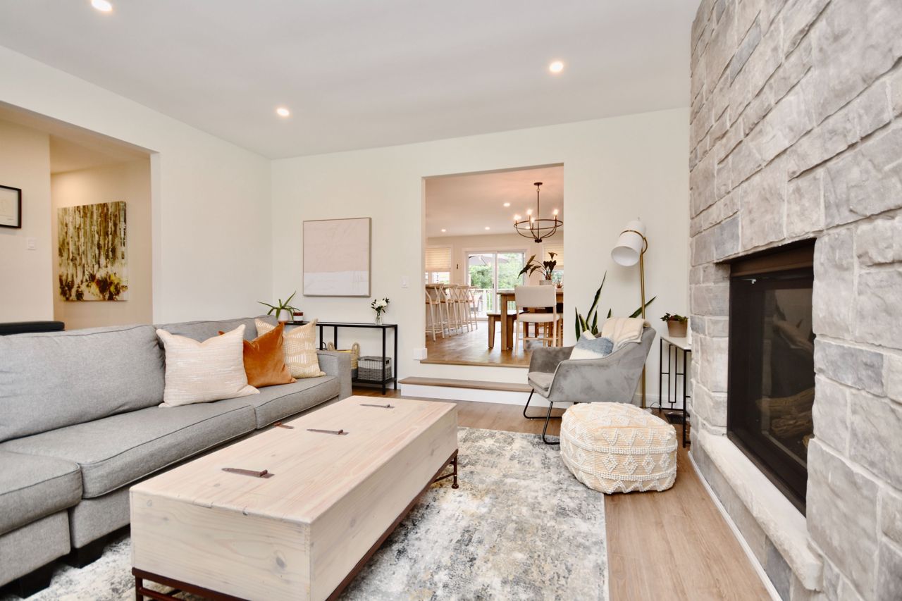 Welcome to 302 Leonard Dr! You will immediately be impressed by the attention to detail & quality finishes of this f/f, all brick bungalow! Over 1700sqft on the main & located in Orillia's desirable Northward! The entire home has been recently renovated! Open concept kit/din rm is spectacular and perfect for a busy family! Featuring a huge island w tons of storage, cabinets, seating & quartz counters. Walk out to the expansive deck that merges indoor & outdoor liv. The primary bdrm boasts a w/i closet & newly reno 3 piece ensuite! 2 more bdrms & an updated main 4pc bath complete the mn flr. Lwr lvl has a huge rec rm, 2 more bdrms, a sep laundry rm, a full 3pc bth & lots of storage! The fully fenced, beautifully landscaped yard is perfect for pets & entertaining making this a space you are sure to enjoy! Everything in this home has been done for you! Parking for 6 cars & a 2 car garage all in a family friendly neighbourhood, min to amenities, desirable schools , parks & more!California shutters in living room.