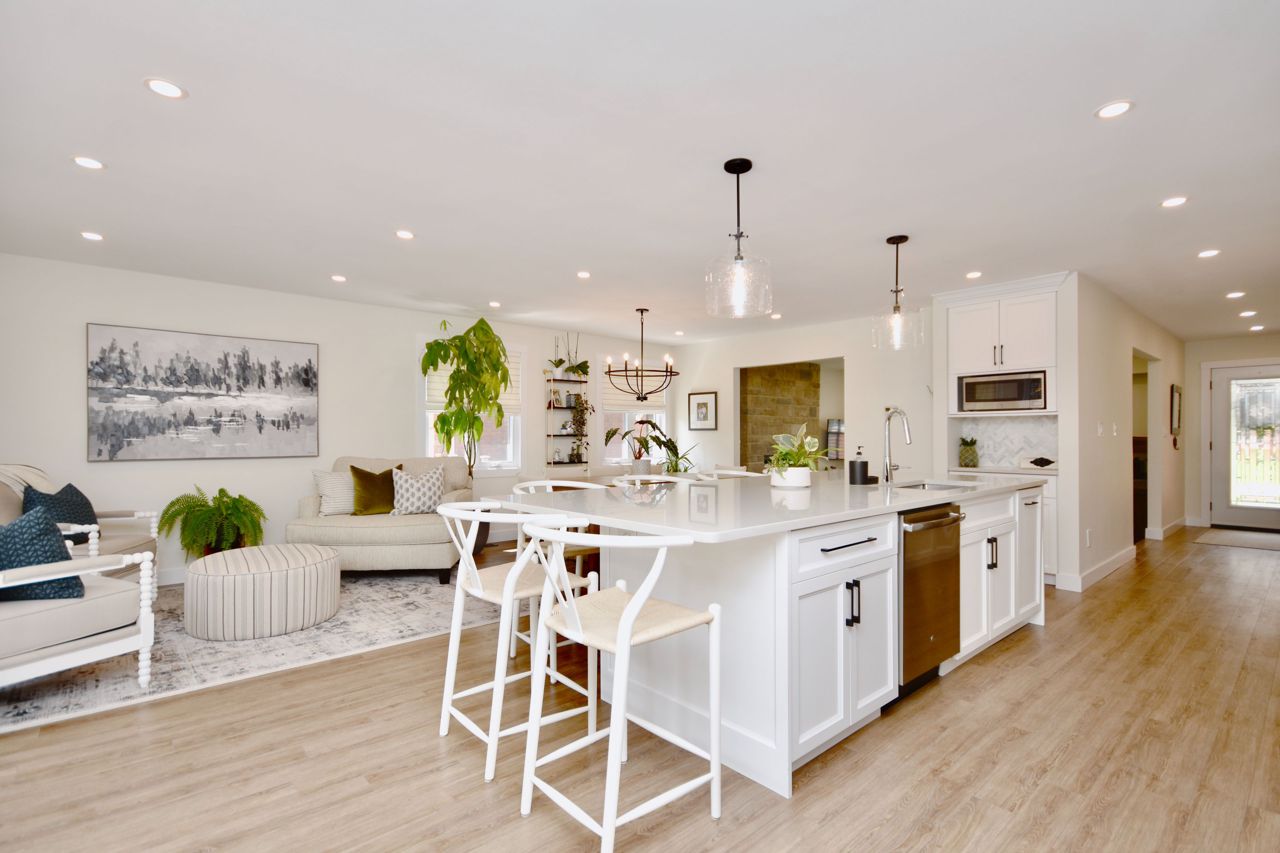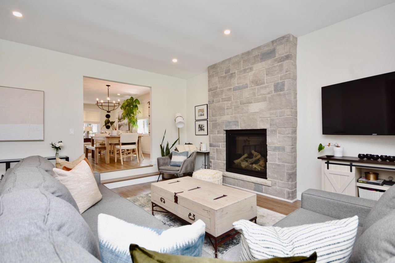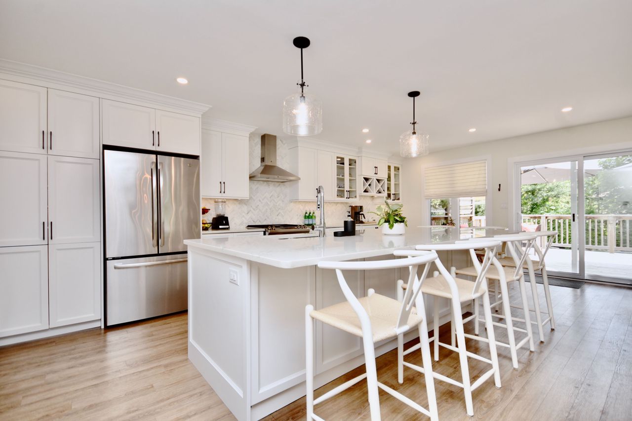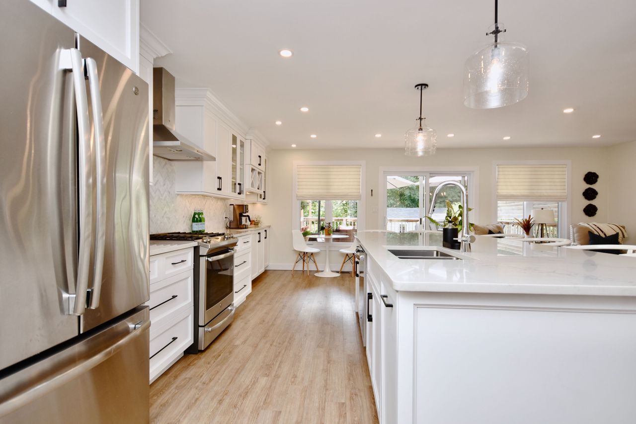 Welcome to 302 Leonard Dr! You will immediately be impressed by the attention to detail & quality finishes of this f/f, all brick bungalow! Over 1700sqft on the main & located in Orillia's desirable Northward! The entire home has been recently renovated! Open concept kit/din rm is spectacular and perfect for a busy family! Featuring a huge island w tons of storage, cabinets, seating & quartz counters. Walk out to the expansive deck that merges indoor & outdoor liv. The primary bdrm boasts a w/i closet & newly reno 3 piece ensuite! 2 more bdrms & an updated main 4pc bath complete the mn flr. Lwr lvl has a huge rec rm, 2 more bdrms, a sep laundry rm, a full 3pc bth & lots of storage! The fully fenced, beautifully landscaped yard is perfect for pets & entertaining making this a space you are sure to enjoy! Everything in this home has been done for you! Parking for 6 cars & a 2 car garage all in a family friendly neighbourhood, min to amenities, desirable schools , parks & more!California shutters in living room.