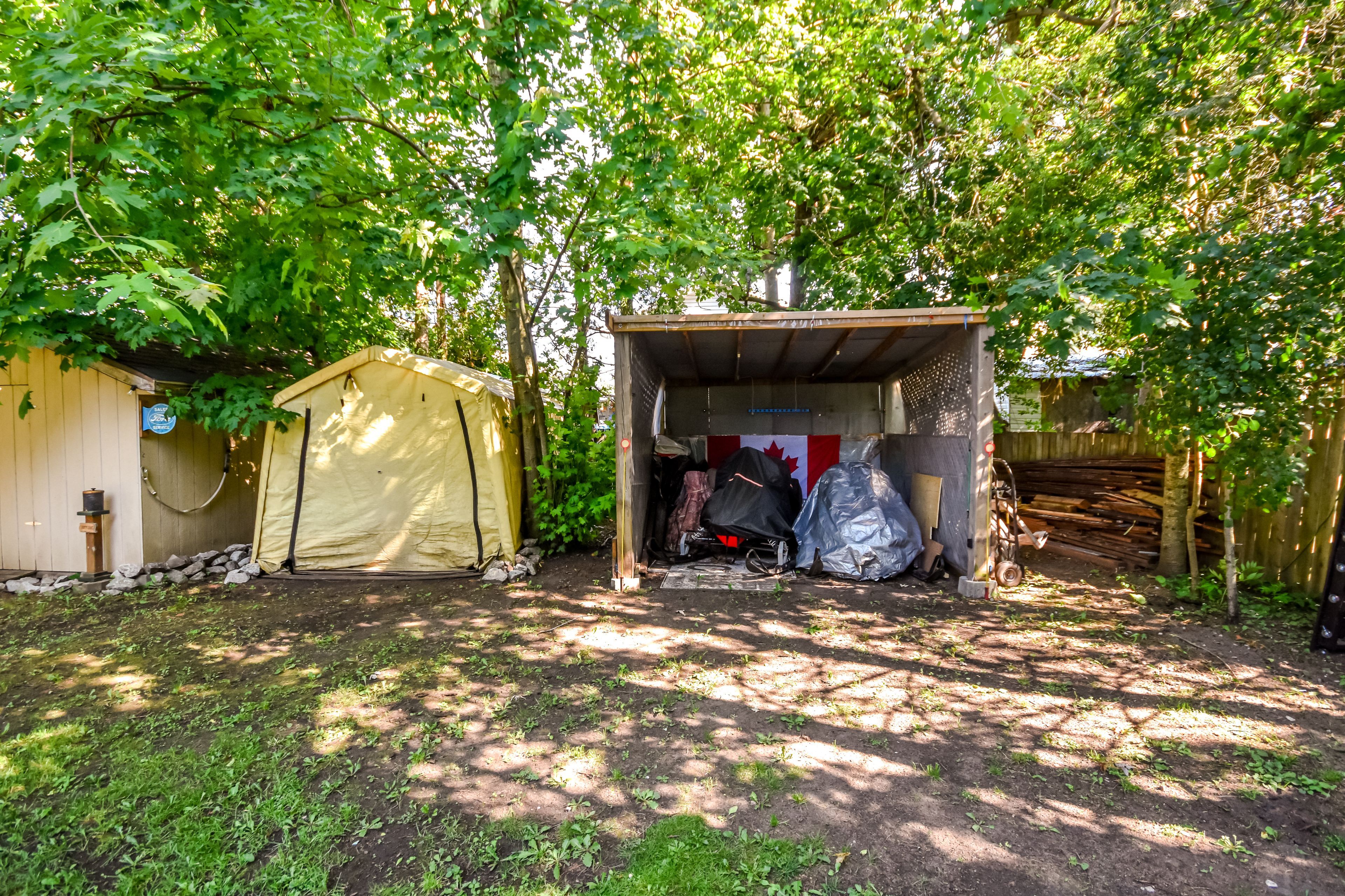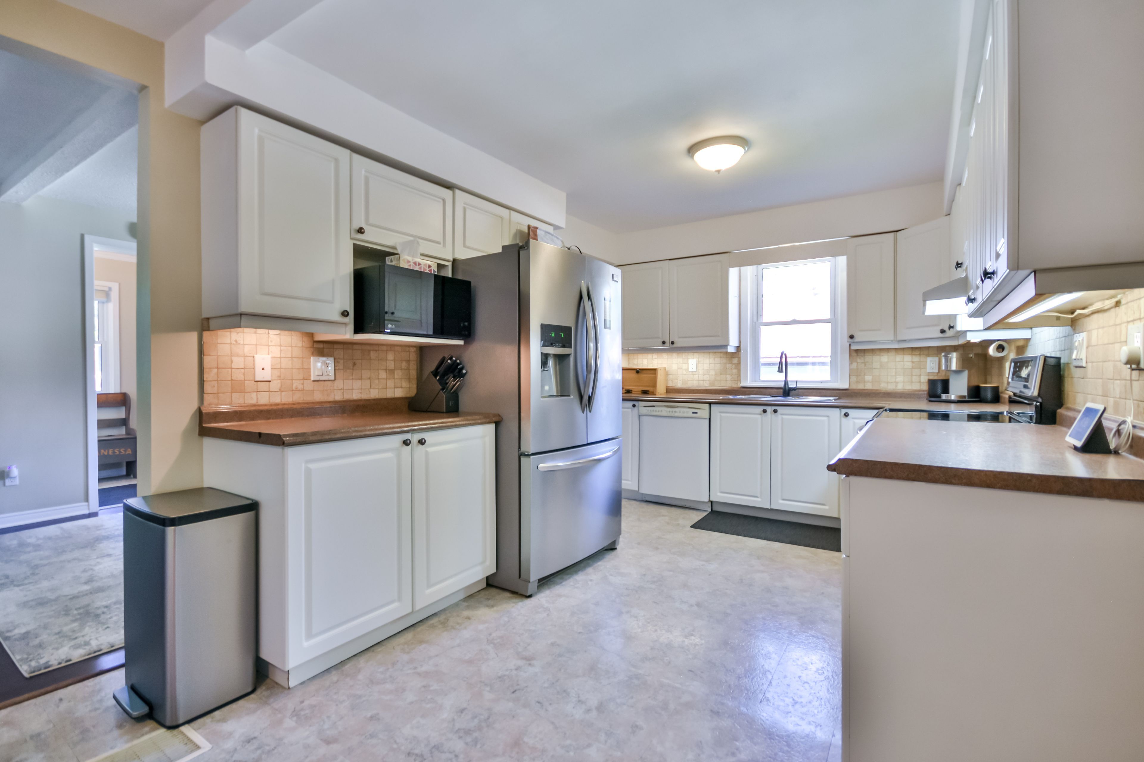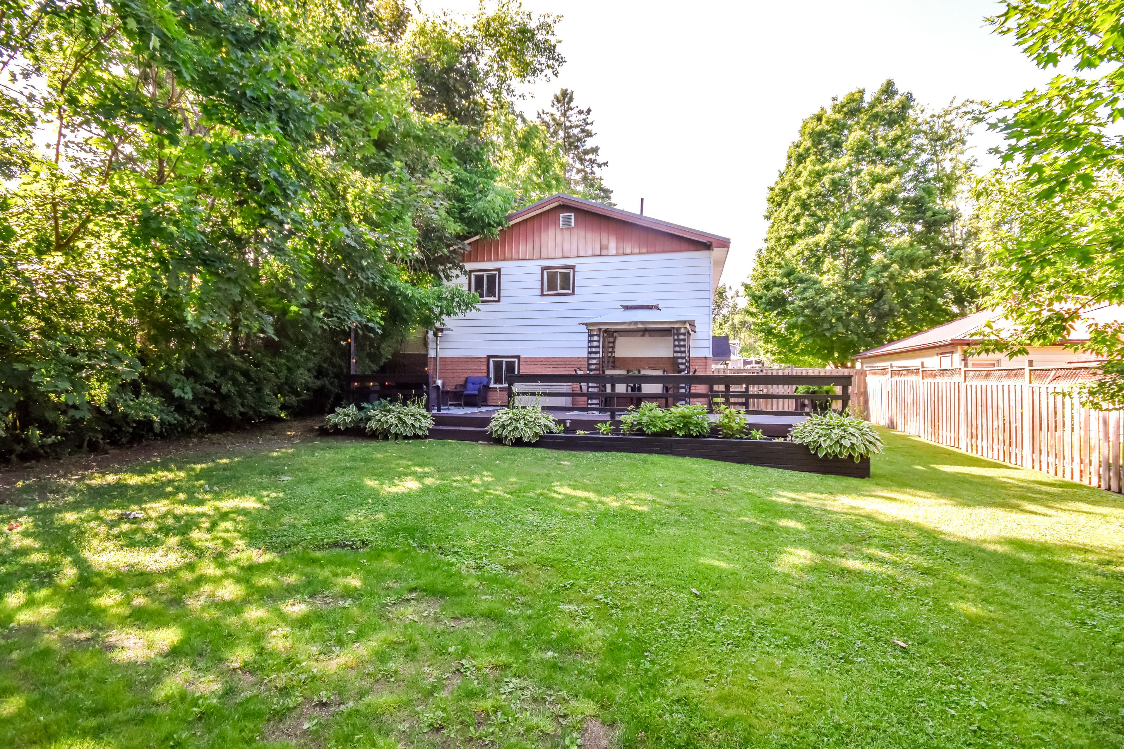 This charming and affordable West Ward home is a fantastic opportunity! Situated on a deep, fully fenced lot, it features a welcoming front porch, a private side deck, and a large backyard with a shed/workshop perfect for outdoor enjoyment and extra storage .Step inside to a bright entry foyer that opens to a versatile living room or combined living/dining space with durable laminate flooring. The spacious eat-in kitchen boasts plenty of updated cabinetry, a stylish tile backsplash, under-cabinet lighting, and a walkout to the side deck ideal for BBQs and entertaining. Upstairs, you'll find three comfortable bedrooms, including a generous primary suite with a walk-in closet. The updated 4-piece bathroom features a relaxing jetted tub and a separate shower. The full lower level offers even more living space, including a cozy family room with a gas fireplace, a den/home office or potential 4th bedroom with a large daylight window, a 2-piece bathroom, laundry area, and direct side entrance making it a great setup for an in-law suite or rental potential. A few steps down, the additional basement area provides excellent storage and houses the home's utilities. Additional highlights include forced-air gas heating, central air conditioning, updated windows, and included appliances. Flexible closing available move in and enjoy!