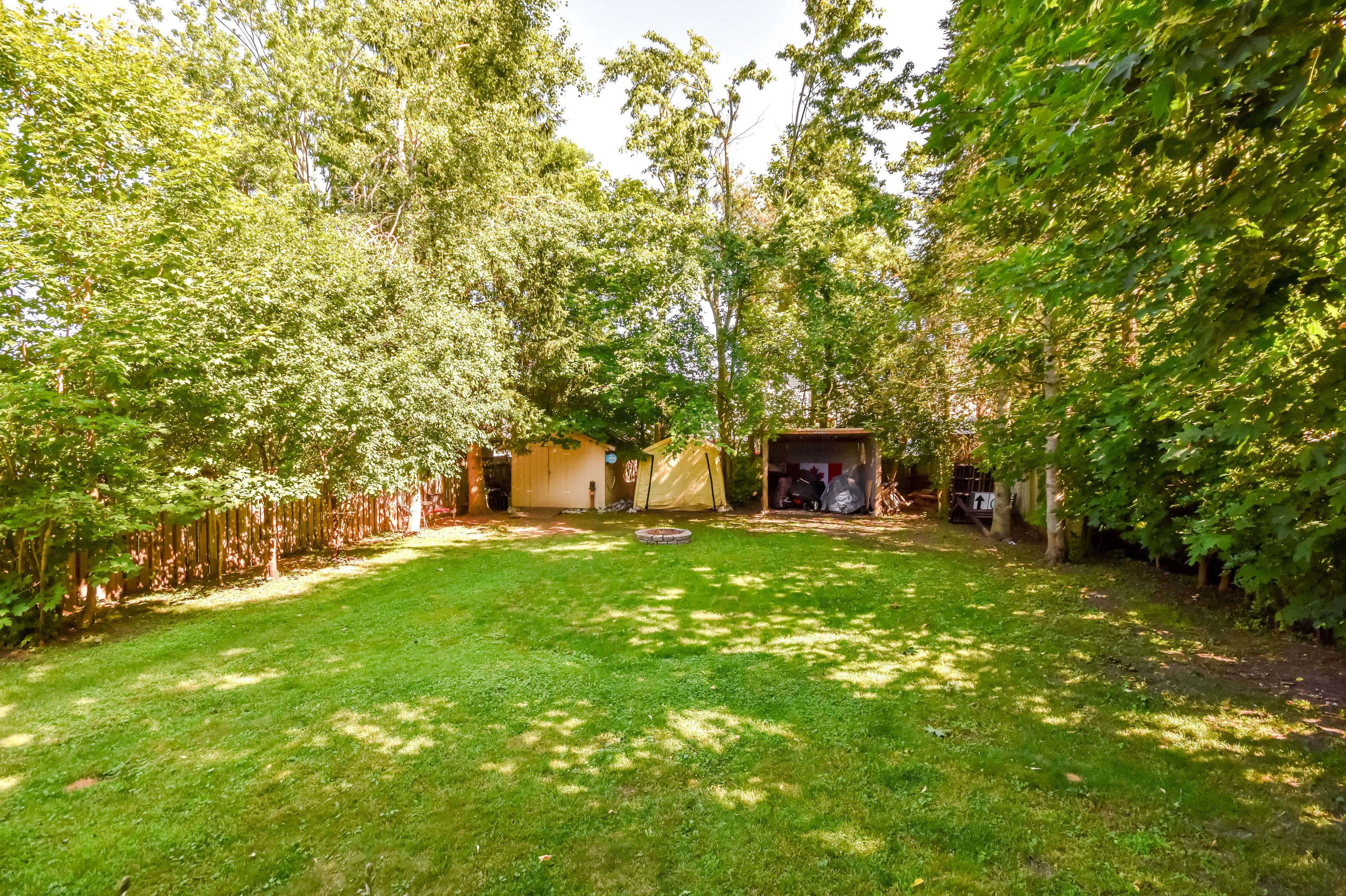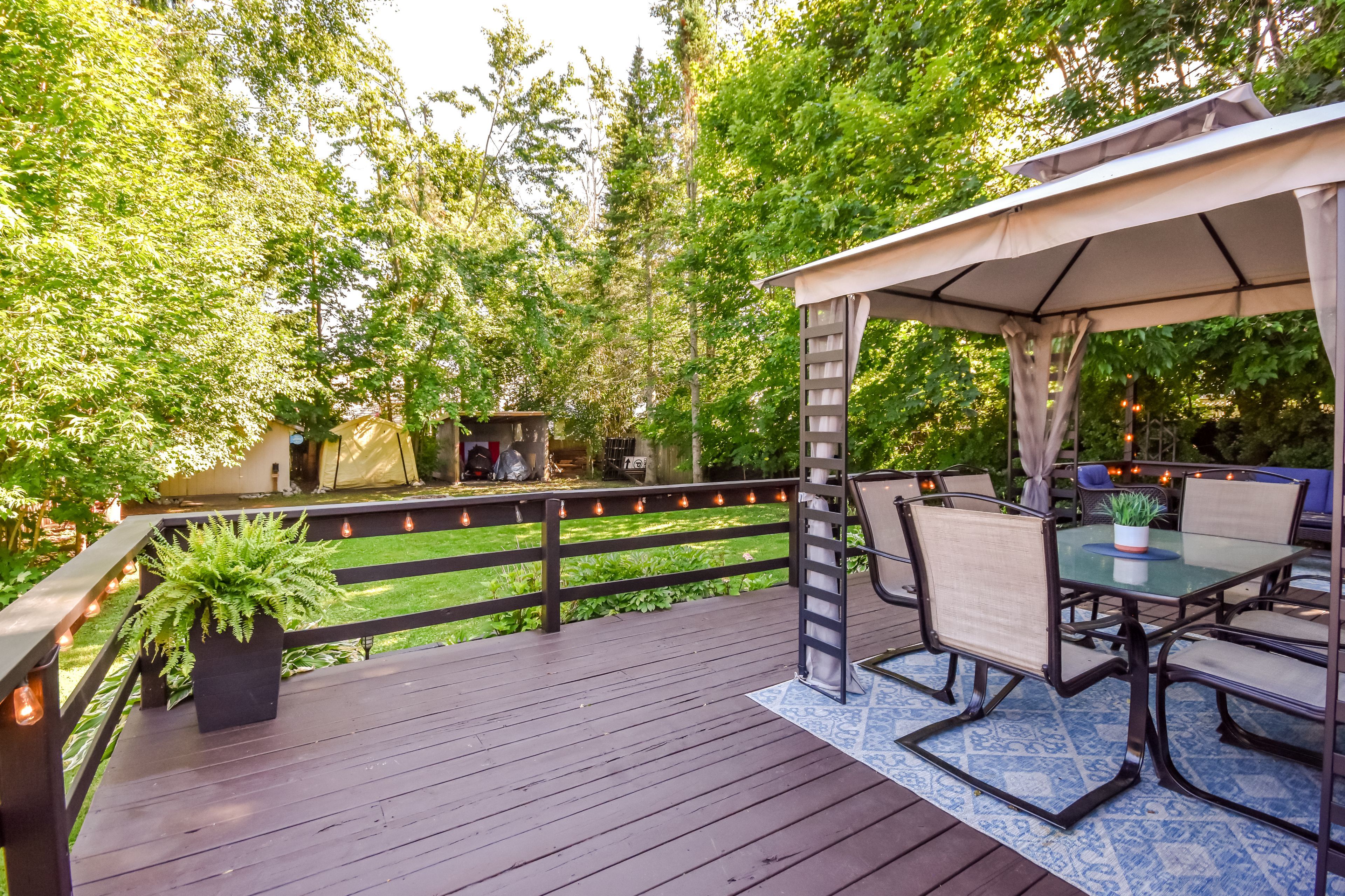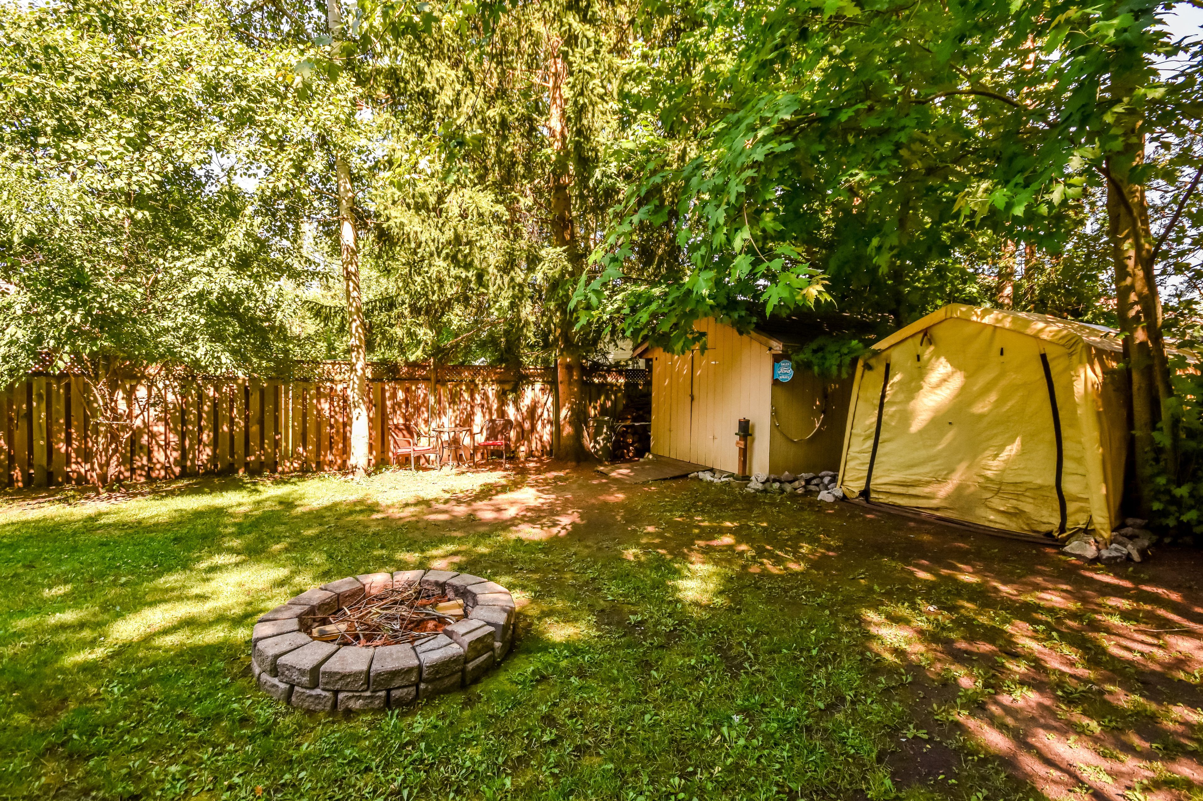 This charming and affordable West Ward home is a fantastic opportunity! Situated on a deep, fully fenced lot, it features a welcoming front porch, a private side deck, and a large backyard with a shed/workshop perfect for outdoor enjoyment and extra storage .Step inside to a bright entry foyer that opens to a versatile living room or combined living/dining space with durable laminate flooring. The spacious eat-in kitchen boasts plenty of updated cabinetry, a stylish tile backsplash, under-cabinet lighting, and a walkout to the side deck ideal for BBQs and entertaining. Upstairs, you'll find three comfortable bedrooms, including a generous primary suite with a walk-in closet. The updated 4-piece bathroom features a relaxing jetted tub and a separate shower. The full lower level offers even more living space, including a cozy family room with a gas fireplace, a den/home office or potential 4th bedroom with a large daylight window, a 2-piece bathroom, laundry area, and direct side entrance making it a great setup for an in-law suite or rental potential. A few steps down, the additional basement area provides excellent storage and houses the home's utilities. Additional highlights include forced-air gas heating, central air conditioning, updated windows, and included appliances. Flexible closing available move in and enjoy!