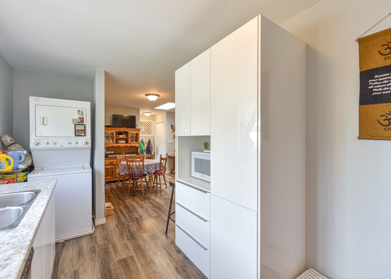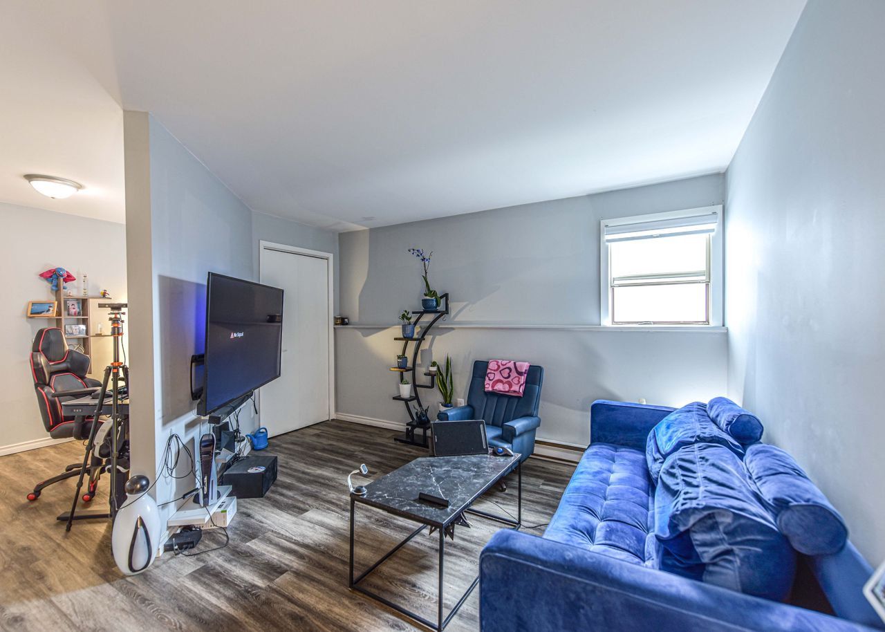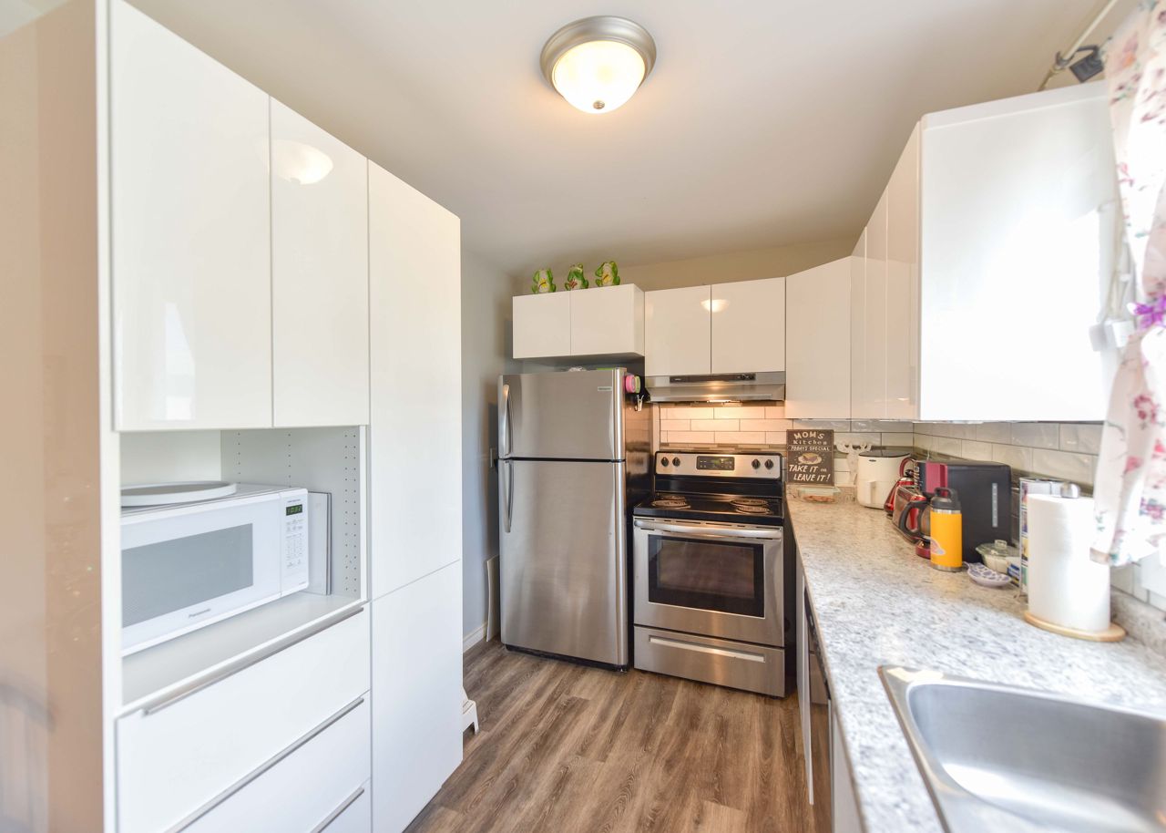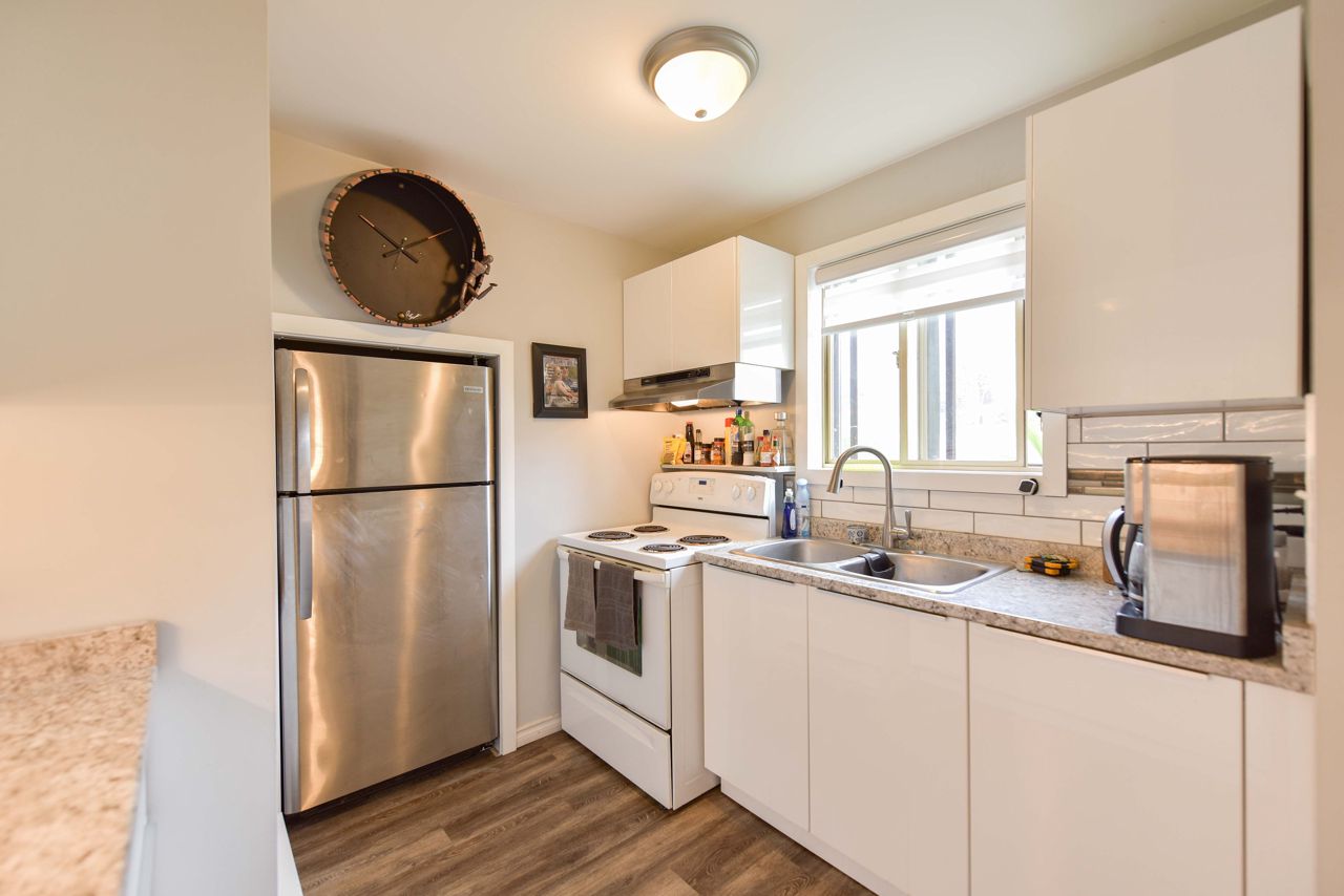 Lower unit is 1025 sq ft of living space, large master bed, 2 more beds, laundry, large closets, open concept living space and IKEA kitchen, with 2 appliances.