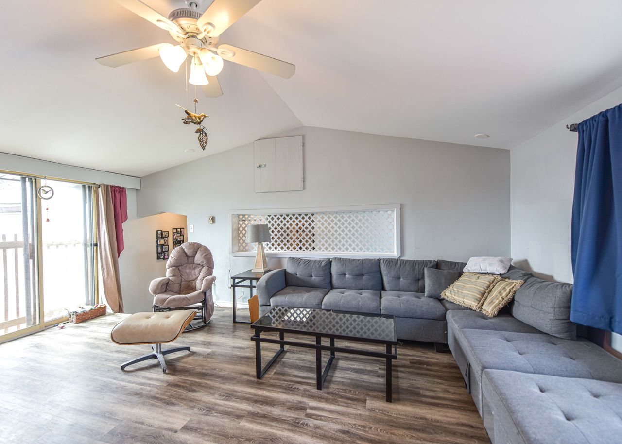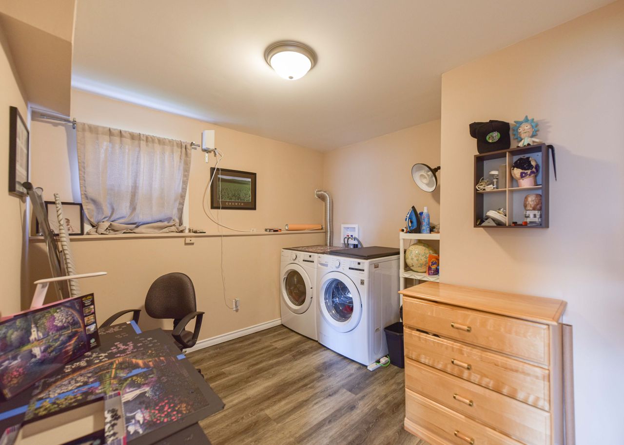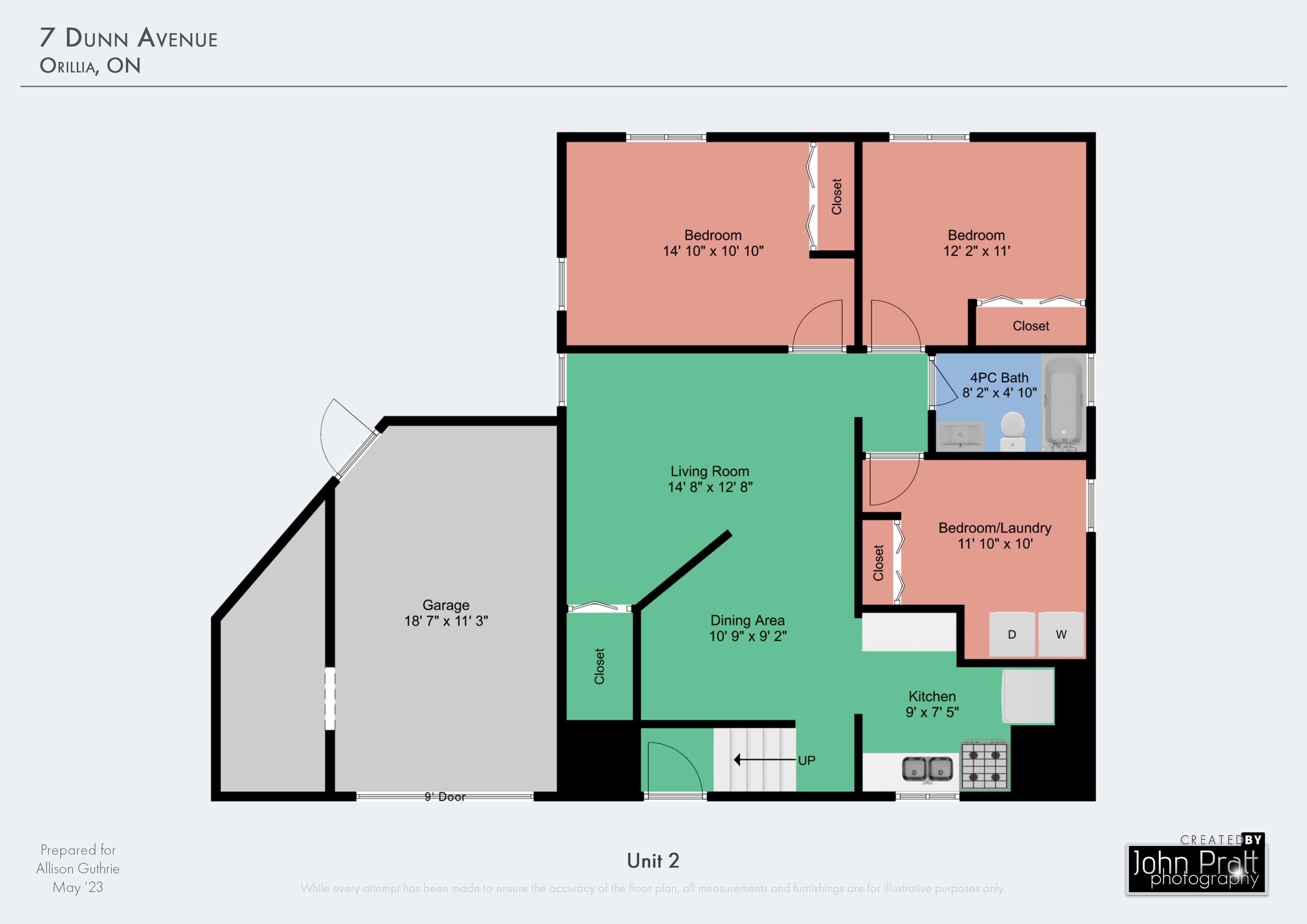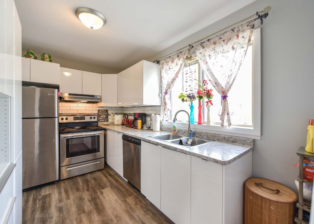 Lower unit is 1025 sq ft of living space, large master bed, 2 more beds, laundry, large closets, open concept living space and IKEA kitchen, with 2 appliances.