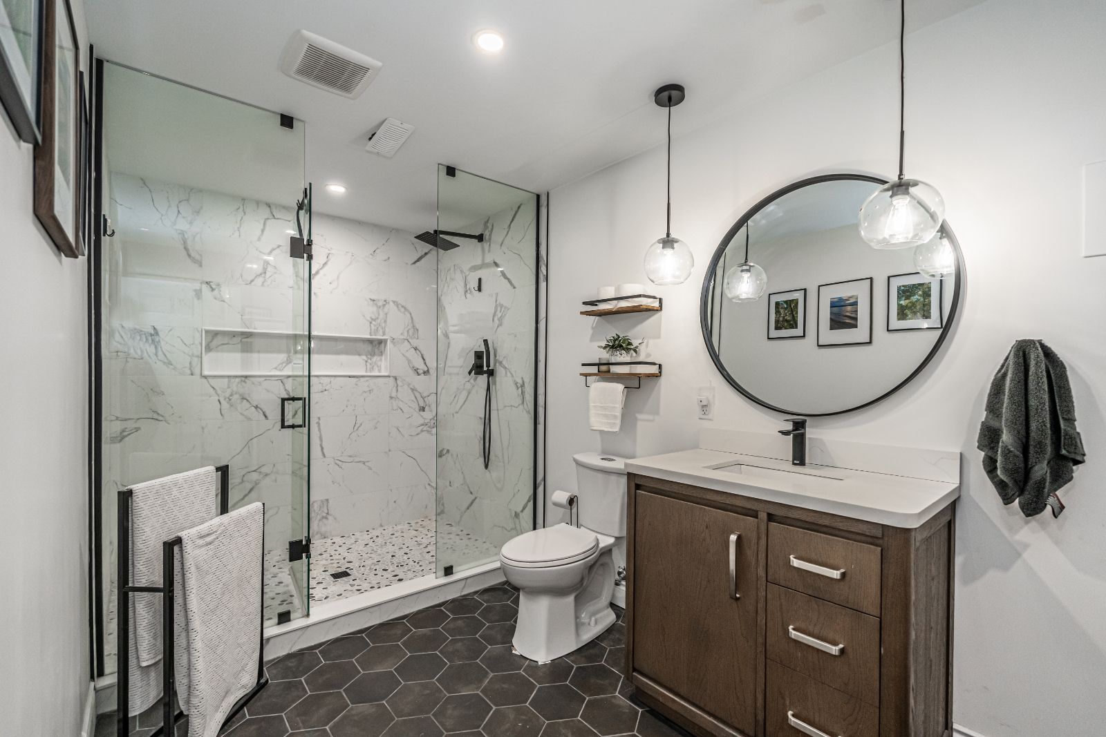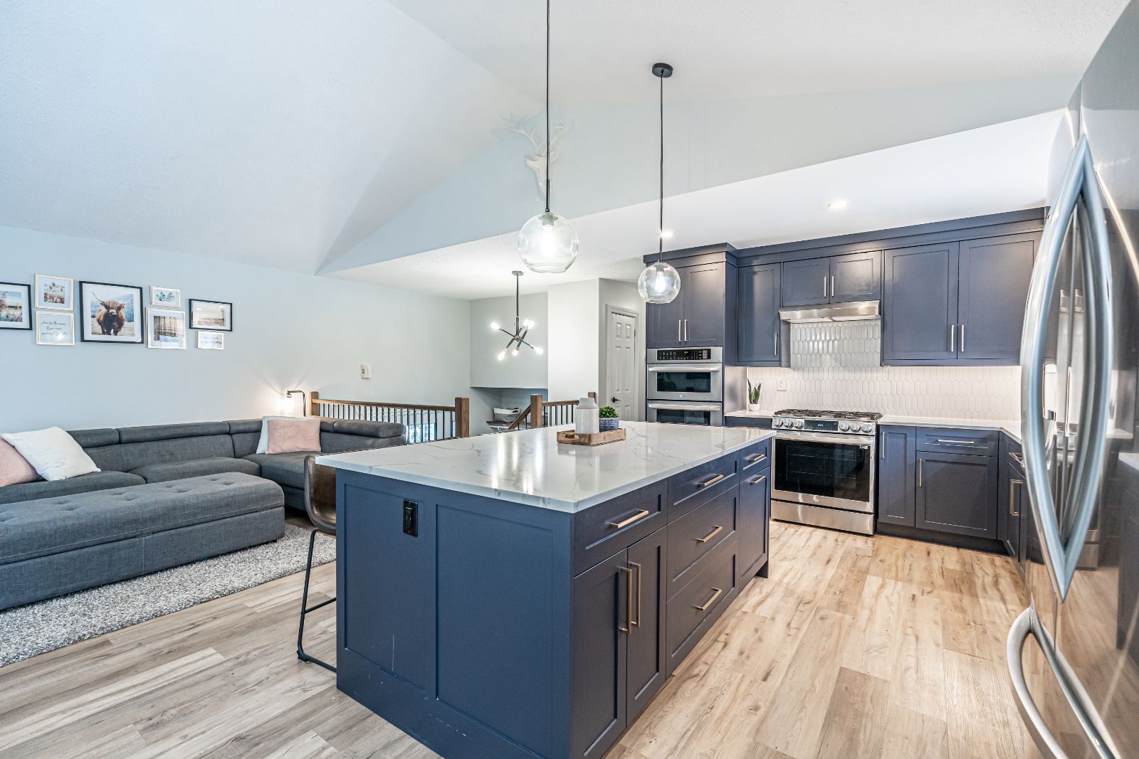 步入室内,映入眼帘的是经过精美翻新的内部空间,高耸的天花板、中性色调和豪华乙烯基地板相得益彰。开放式厨房尤为引人注目,石英台面、带座位的大型岛台、顶部饰有皇冠造型的定制橱柜、食品储藏室以及不锈钢电器,包括内置微波炉/壁挂式烤箱组合和燃气灶,一应俱全。餐厅设有备餐台、实木边缘搁架和酒柜,轻松款待宾客,或通过直通院子的出口享受无缝的室内外生活。主卧套房配备双衣柜、木质特色墙和私人浴室。装修完毕的地下室提供更多放松空间,大窗户让娱乐室充满自然光,木质壁炉、额外卧室、多功能房以及新近翻新的水疗风格浴室,配有步入式淋浴间和地暖。