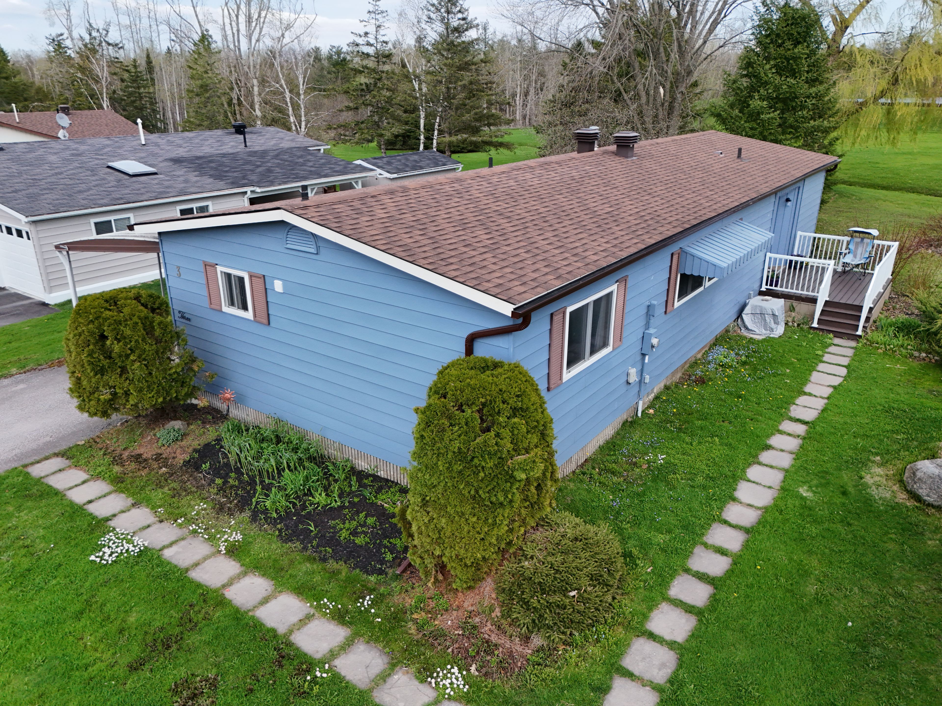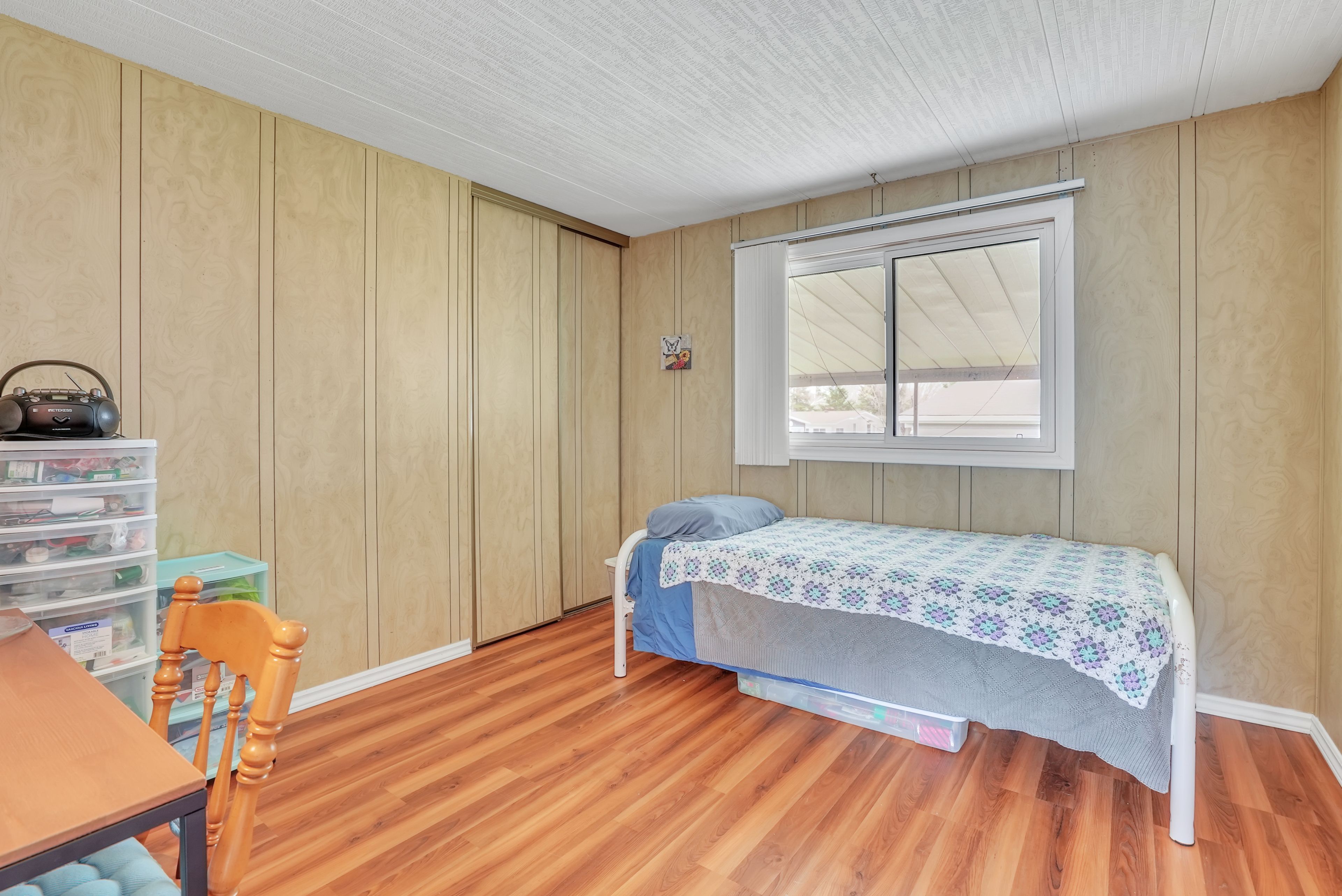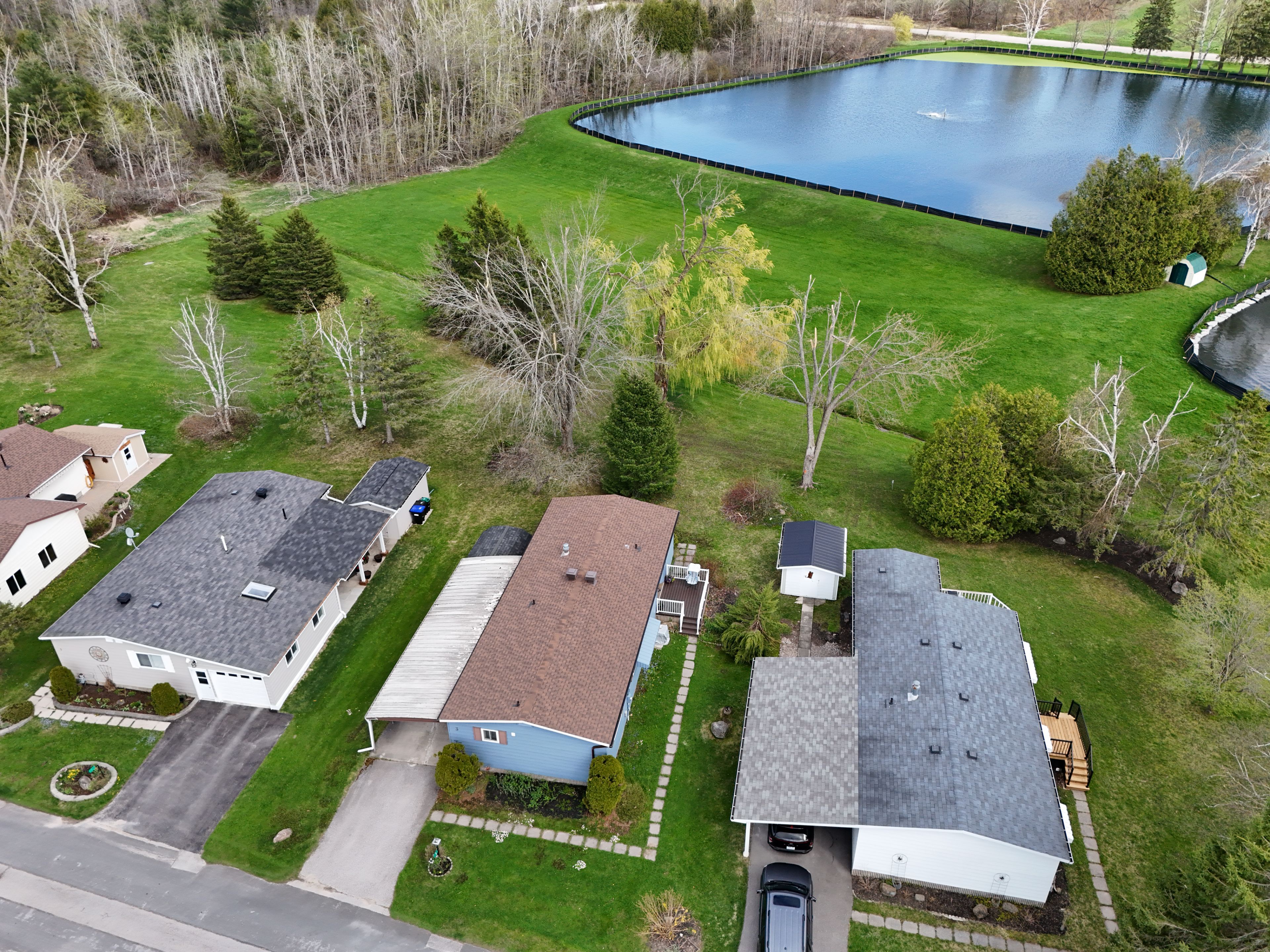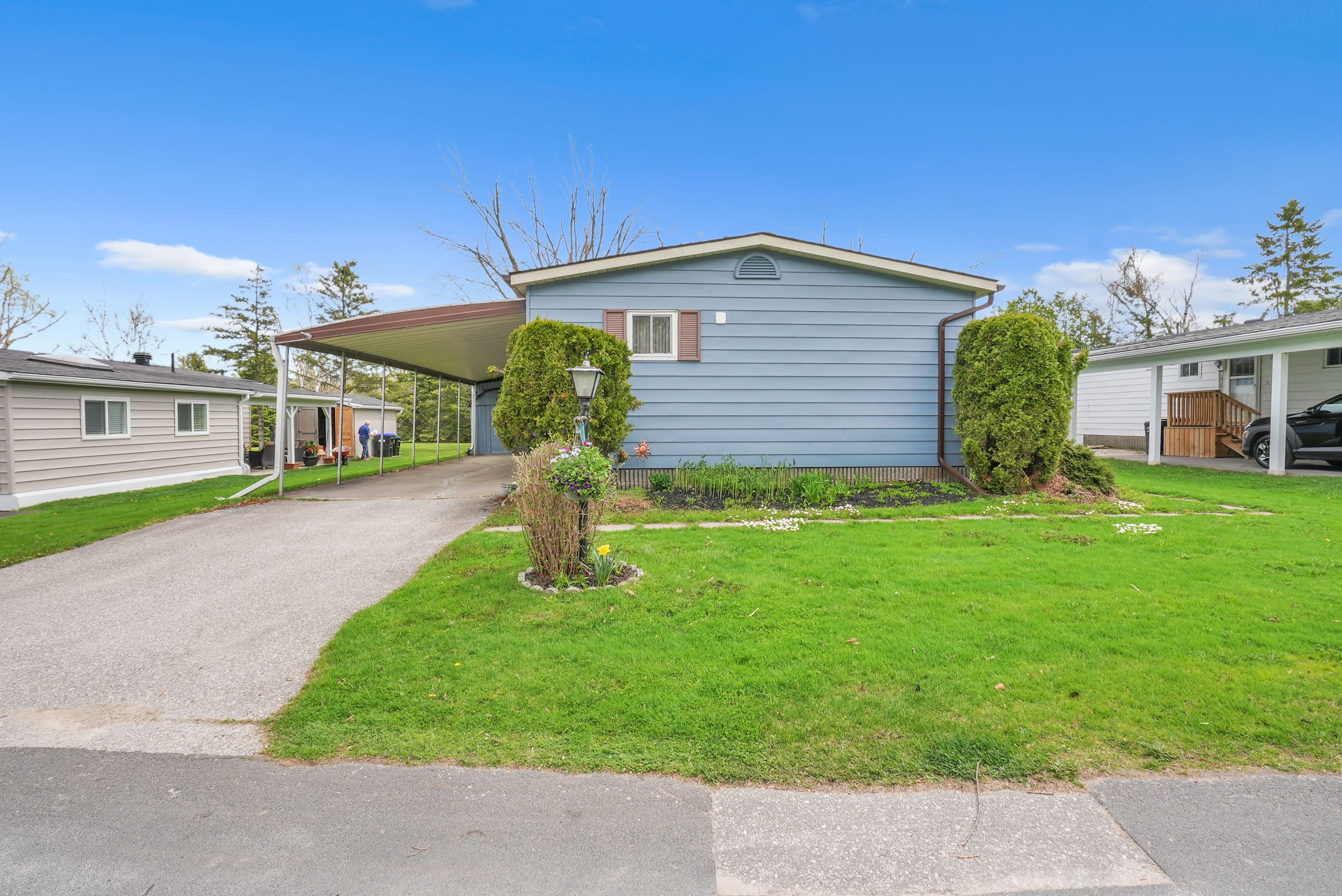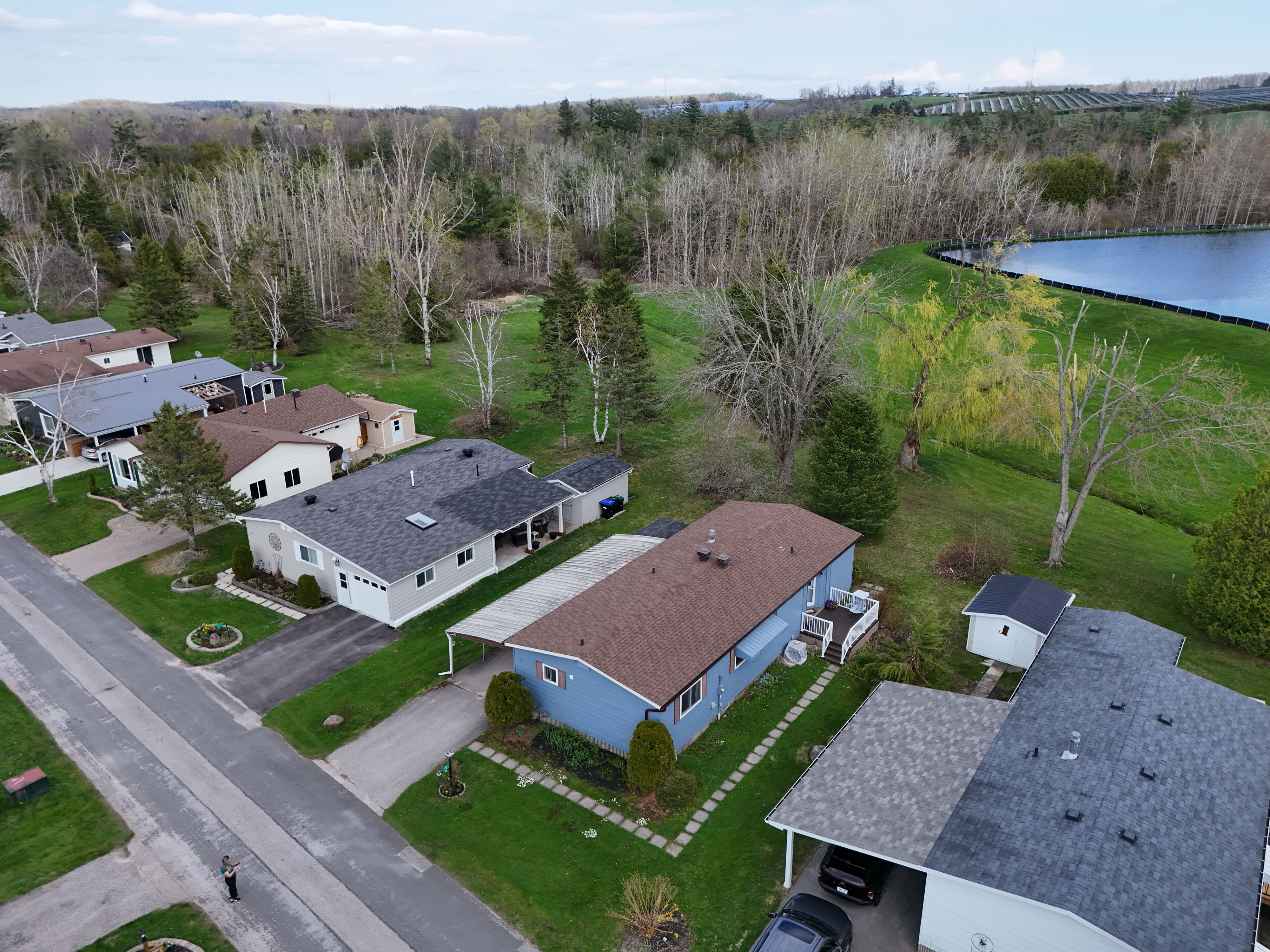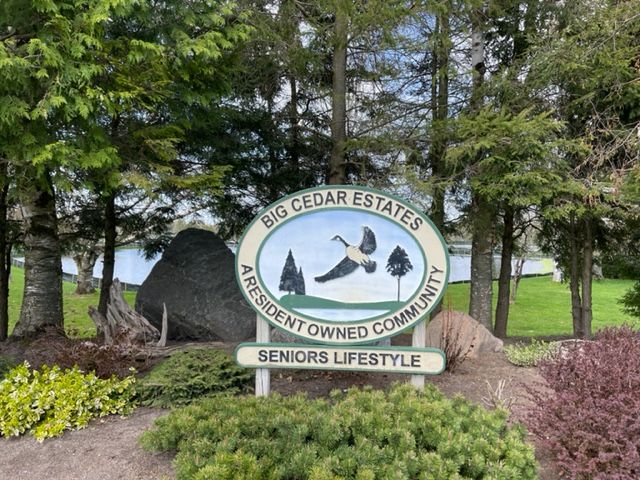 Enjoy peaceful, low-maintenance living in this spacious 1,185 sq/ft 2-bedroom, 2-bathroom home in the desirable Big Cedar Estates 50+ community just around the corner from Bass Lake. Set on a premium lot with no rear neighbours, the home backs onto tranquil ponds and mature trees, offering exceptional privacy and a natural setting. Inside, the layout offers great potential with an open-concept kitchen and dining area, wraparound counters, and a convenient breakfast bar or desk space. The primary bedroom includes a 4-piece ensuite with a soaker tub and separate shower, while the second bedroom and full 3-piece bath add flexibility for guests or hobbies.The living room opens to a newer back deck (2022) where you can unwind and take in the peaceful views. Garden beds surround the home, providing a wonderful canvas for gardening enthusiasts. A large walk-in storage closet and outdoor shed offer practical storage solutions. Some updates have been completed including exterior paint (2023), furnace, AC, and hot water tank (2019), the home offers an excellent opportunity for buyers to personalize and make improvements to suit their style and needs. The monthly maintenance fee ($345 as of June 1) includes water, sewage, garbage and recycling pickup, yard maintenance, snow removal, Rogers Ignite TV and internet, plus access to excellent amenities: a clubhouse with social events, community gardens, walking trails, a beach, boat dock, canoe/kayak storage, RV compound, winterization for Snowbirds, and more. An excellent opportunity for someone looking to enjoy a quiet, community-oriented lifestyle while customizing a home with great potential to match their needs and taste.