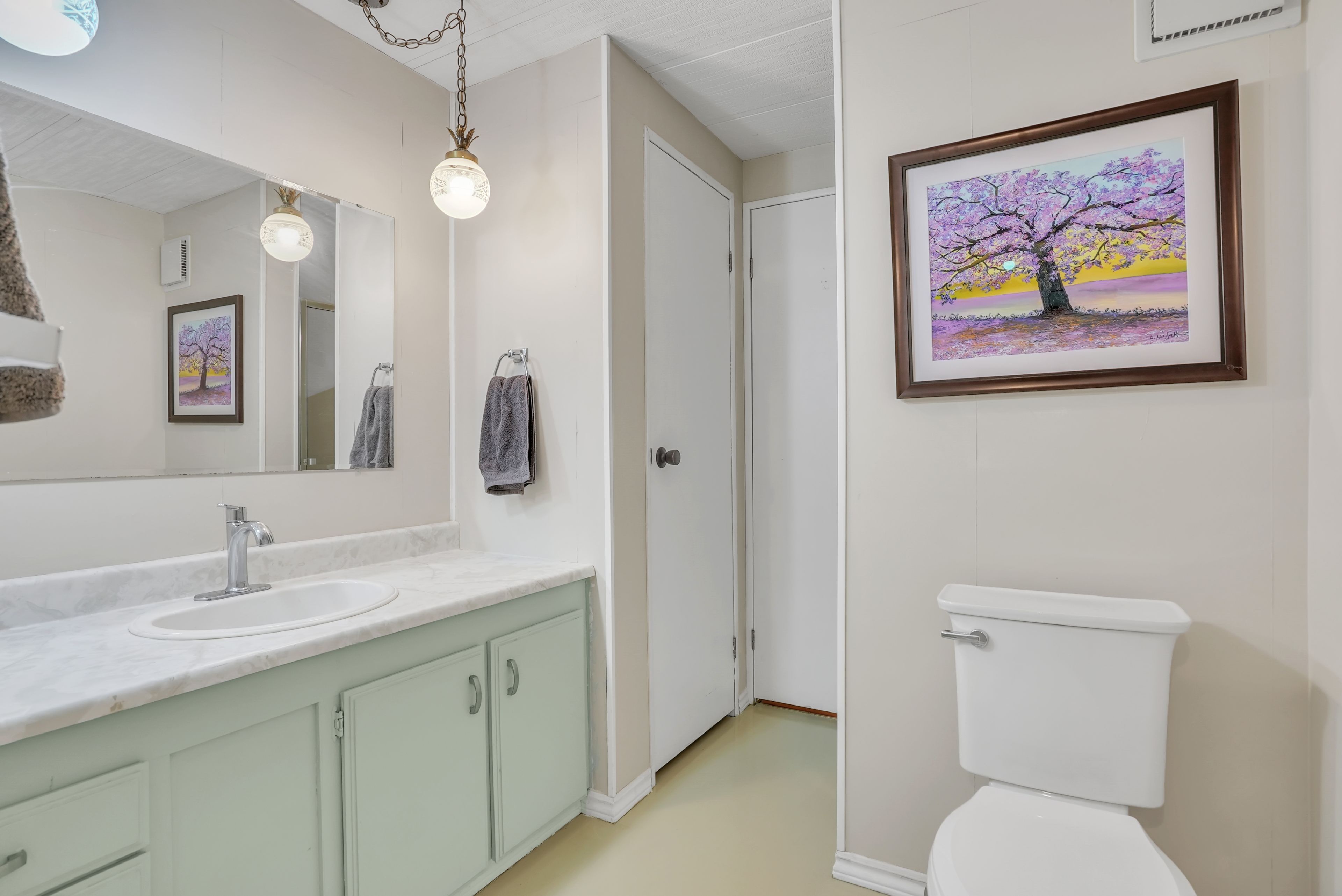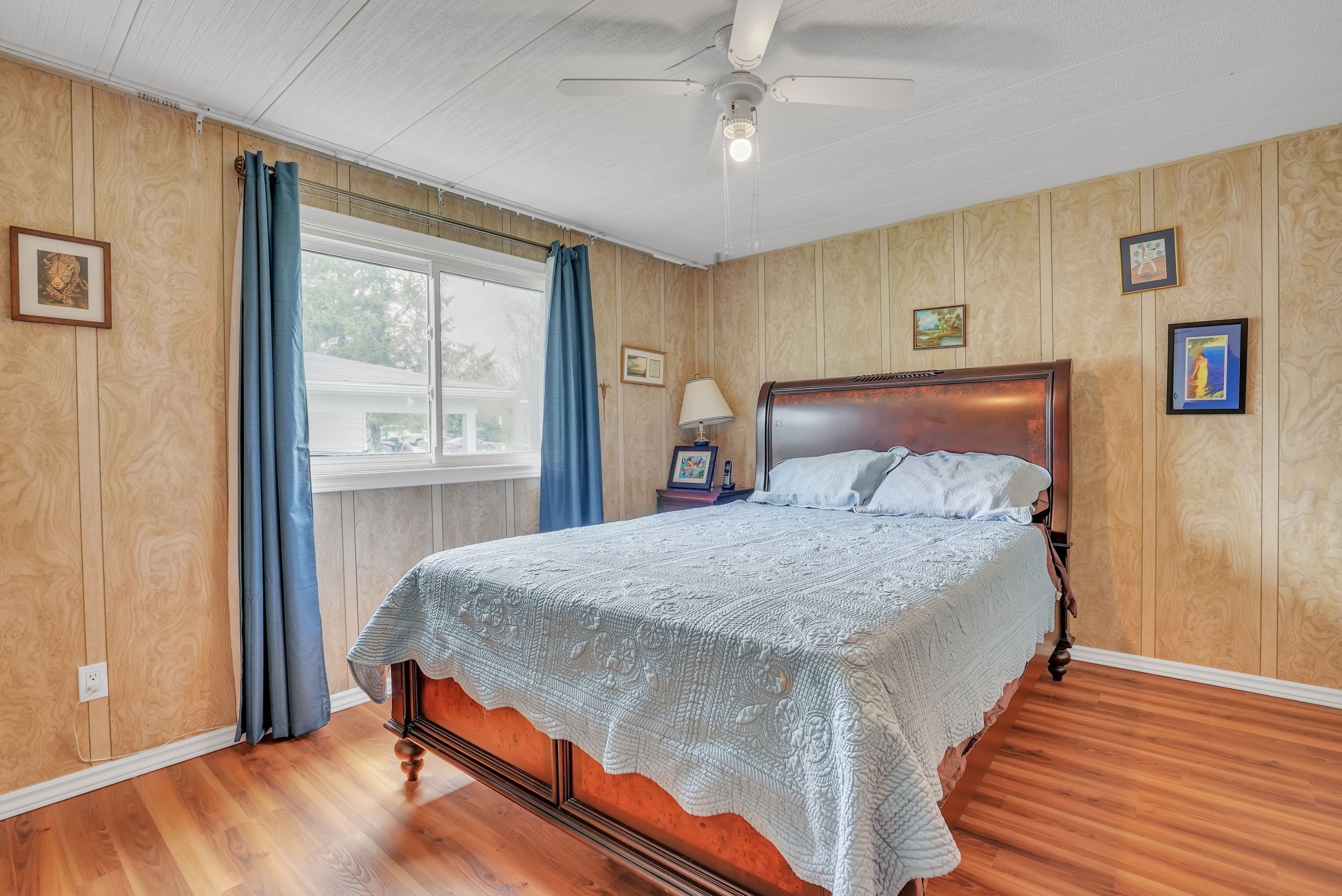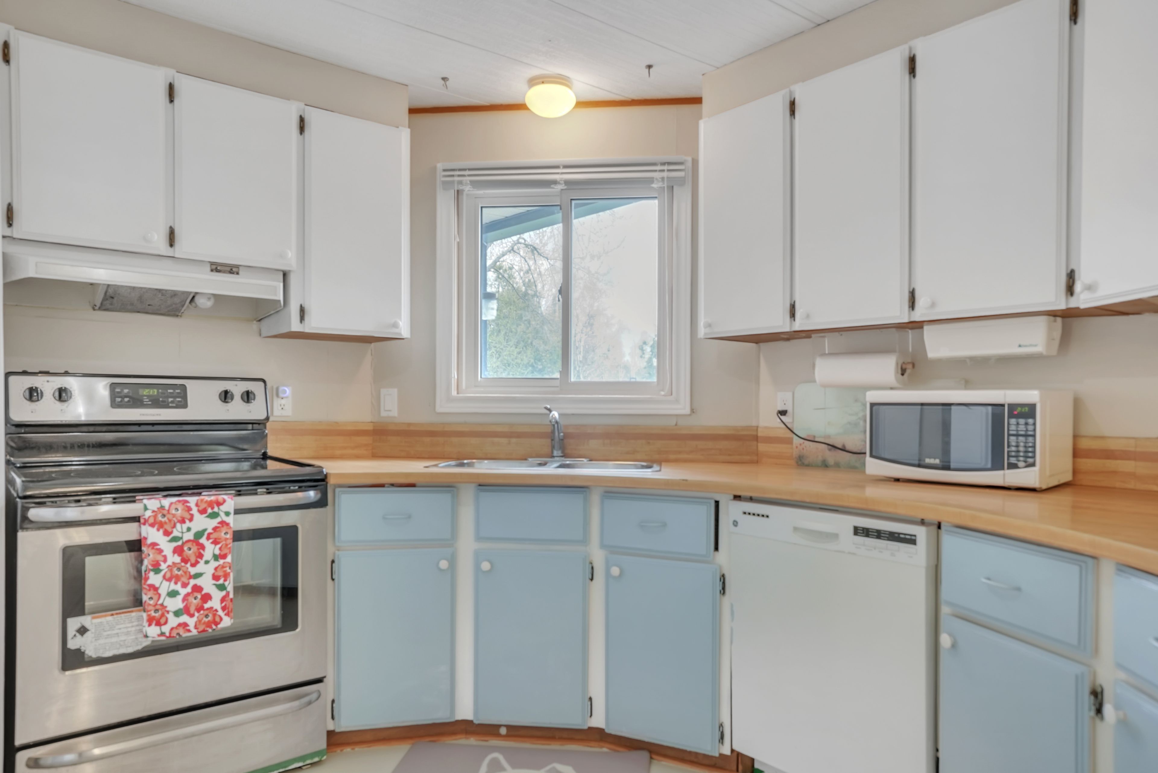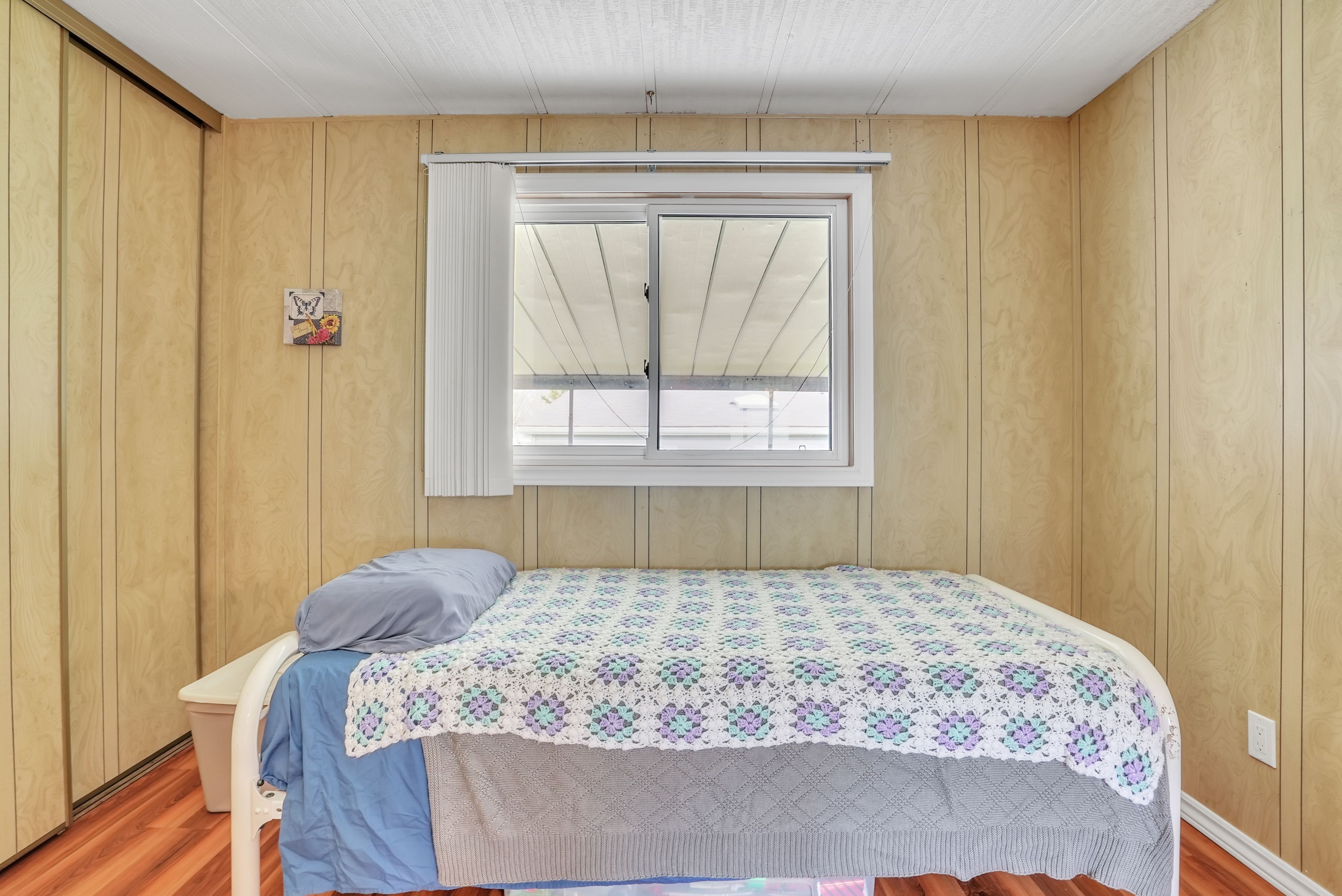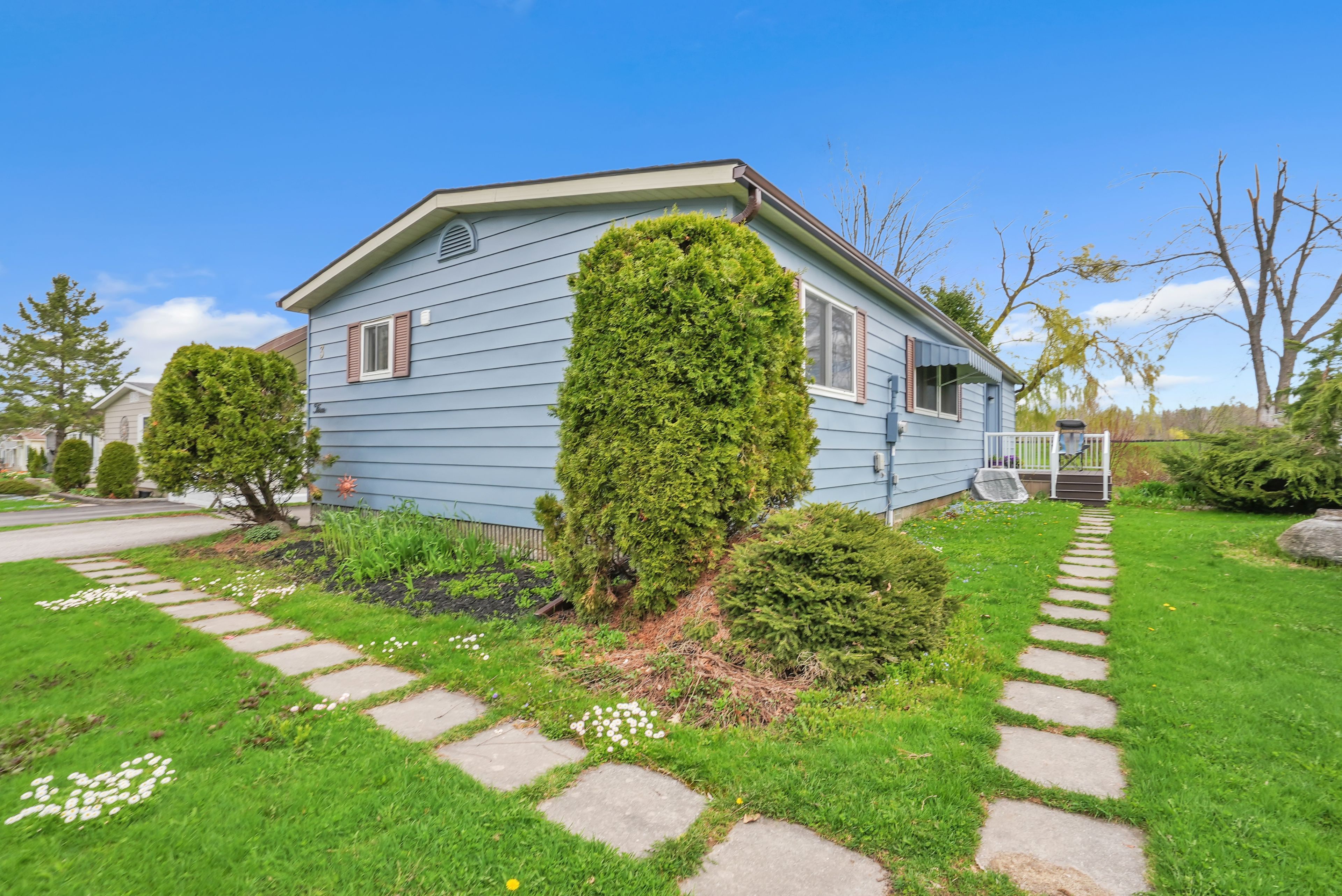 Enjoy peaceful, low-maintenance living in this spacious 1,185 sq/ft 2-bedroom, 2-bathroom home in the desirable Big Cedar Estates 50+ community just around the corner from Bass Lake. Set on a premium lot with no rear neighbours, the home backs onto tranquil ponds and mature trees, offering exceptional privacy and a natural setting. Inside, the layout offers great potential with an open-concept kitchen and dining area, wraparound counters, and a convenient breakfast bar or desk space. The primary bedroom includes a 4-piece ensuite with a soaker tub and separate shower, while the second bedroom and full 3-piece bath add flexibility for guests or hobbies.The living room opens to a newer back deck (2022) where you can unwind and take in the peaceful views. Garden beds surround the home, providing a wonderful canvas for gardening enthusiasts. A large walk-in storage closet and outdoor shed offer practical storage solutions. Some updates have been completed including exterior paint (2023), furnace, AC, and hot water tank (2019), the home offers an excellent opportunity for buyers to personalize and make improvements to suit their style and needs. The monthly maintenance fee ($345 as of June 1) includes water, sewage, garbage and recycling pickup, yard maintenance, snow removal, Rogers Ignite TV and internet, plus access to excellent amenities: a clubhouse with social events, community gardens, walking trails, a beach, boat dock, canoe/kayak storage, RV compound, winterization for Snowbirds, and more. An excellent opportunity for someone looking to enjoy a quiet, community-oriented lifestyle while customizing a home with great potential to match their needs and taste.