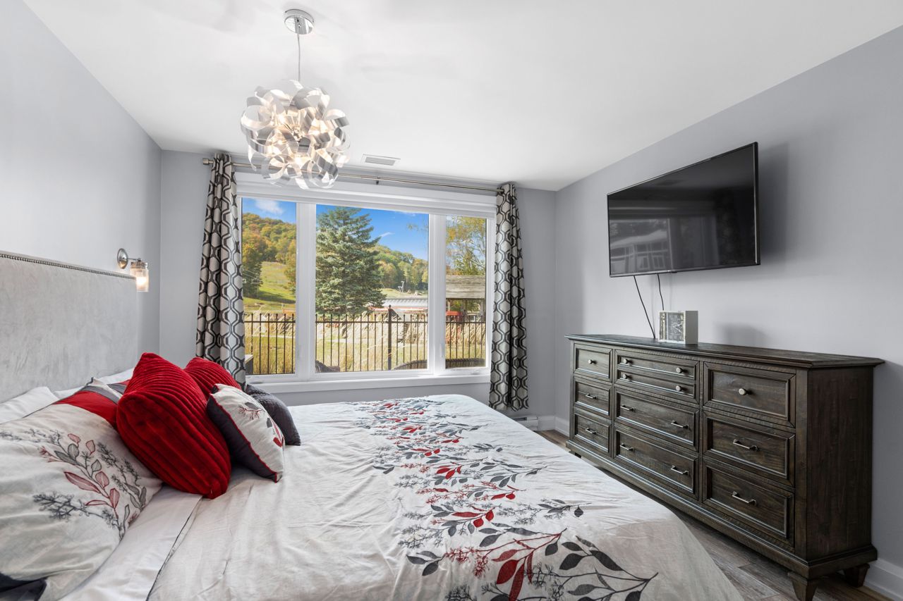 DON’T MISS THIS INCREDIBLE OPPORTUNITY WITH SKI SEASON FAST APPROACHING! Nestled within the beautiful 4-season recreational playground of Horseshoe Resort is this idyllic ground floor- slope facing- ski in / ski out unit at Slopeside Condos. Vacation or invest in this 1,188 sq ft fully furnished 2 bed 2 bath condo with high-end finishes thru-out. Open-concept living space features a well-appointed kitchen with granite counters & stainless appliances. Dining area is sizeable and living room has fireplace and walk-out to a private patio. The expansive primary bedroom features a walk-in closet and 4 pc ensuite. The second bedroom has access to a second modern 4 pc bath. Convenient In-suite laundry and owned locker for storage. Wheelchair accessible. Enjoy owner access to amenities including; indoor & outdoor pools, fitness centre, sauna, & clubhouse. Two great restaurants on site with owner discounts available. One hour north of Toronto. Unit can be converted to rental program.Resort activities to enjoy - Alpine & Nordic Skiing, Snowshoeing, Tubing, Spa, Biking, Golfing, Man-made lake, Tree Top Trekking, Yamaha Adventures, Hiking. New Vetta Spa closeby. Barrie & Orillia only 15-20 minutes away.