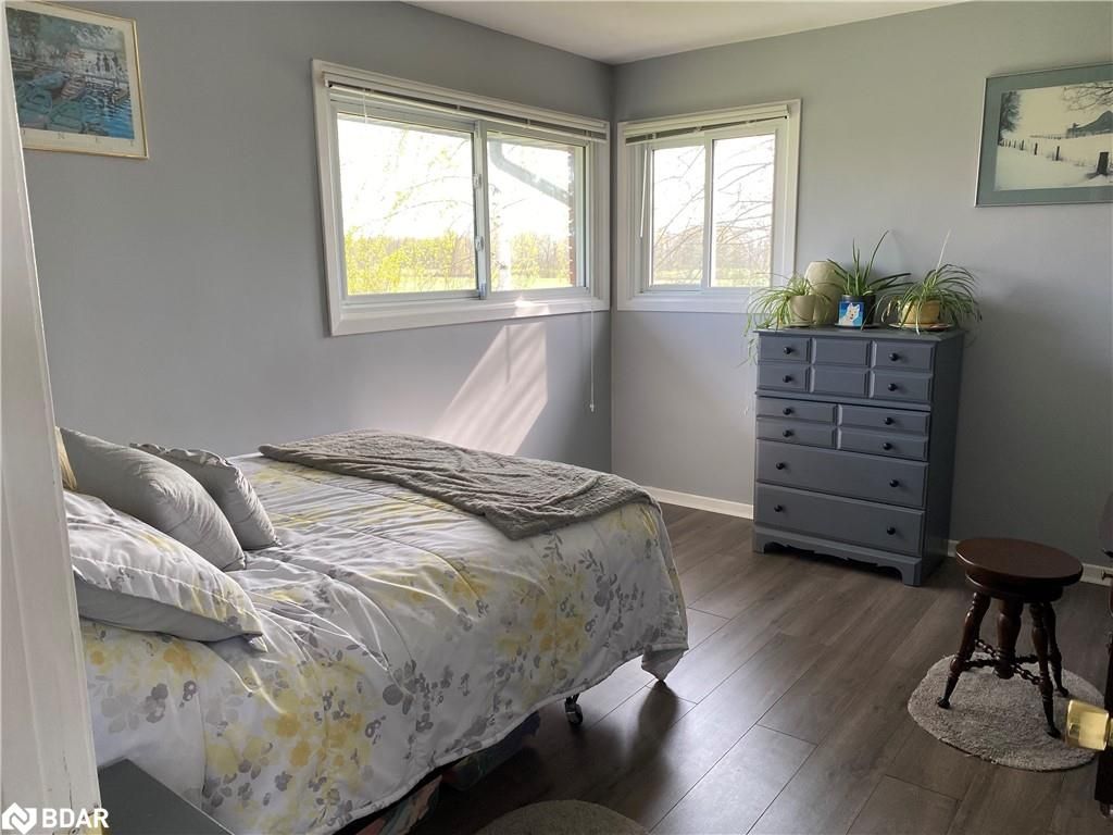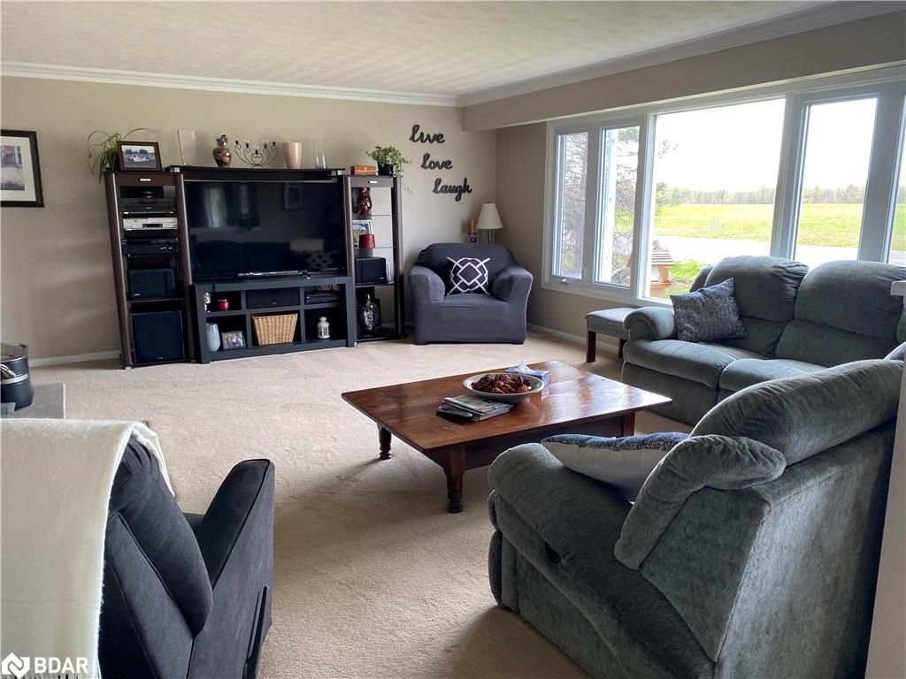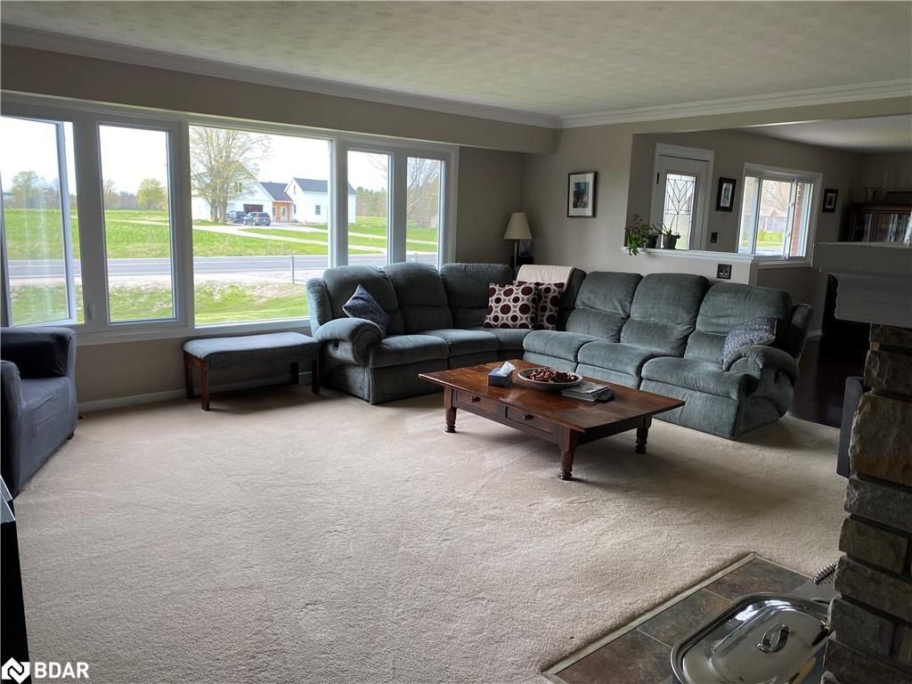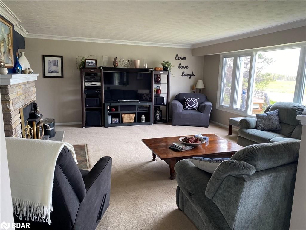 Welcome to this charming three-bedroom, 1.5 bathroom bungalow located in a peaceful country setting. Step inside this 1400 sq ft home and be greeted by the spacious and airy living areas. Curl up by the wood-burning fireplace and enjoy the beautiful sunset views out of the front picture window. The compact kitchen has everything you need, including a fridge, stove, and dishwasher. The main floor laundry has entry from the single car attached garage. The spacious walk-out back deck is perfect for enjoying your morning coffee or a cocktail in the evening after a long day. This property is perfect for entertaining guests or spending quality time with family, as it is situated on half acre surrounded by open fields and fresh air. Fully turn-key, this property has been very well maintained with a brand-new roof (2023), new windows (2022) and tons of storage around the property (10x10 storage shed). Put your own finishing touches on the unfinished basement. Just a short drive to the town of Midland, the city of Barrie, or the city of Orillia offering all your amenities. Centrally located a few minutes away from Hwy 400, there is a lot to offer, close to recreational amenities; golf, skiing, and boating. Book your showing today!