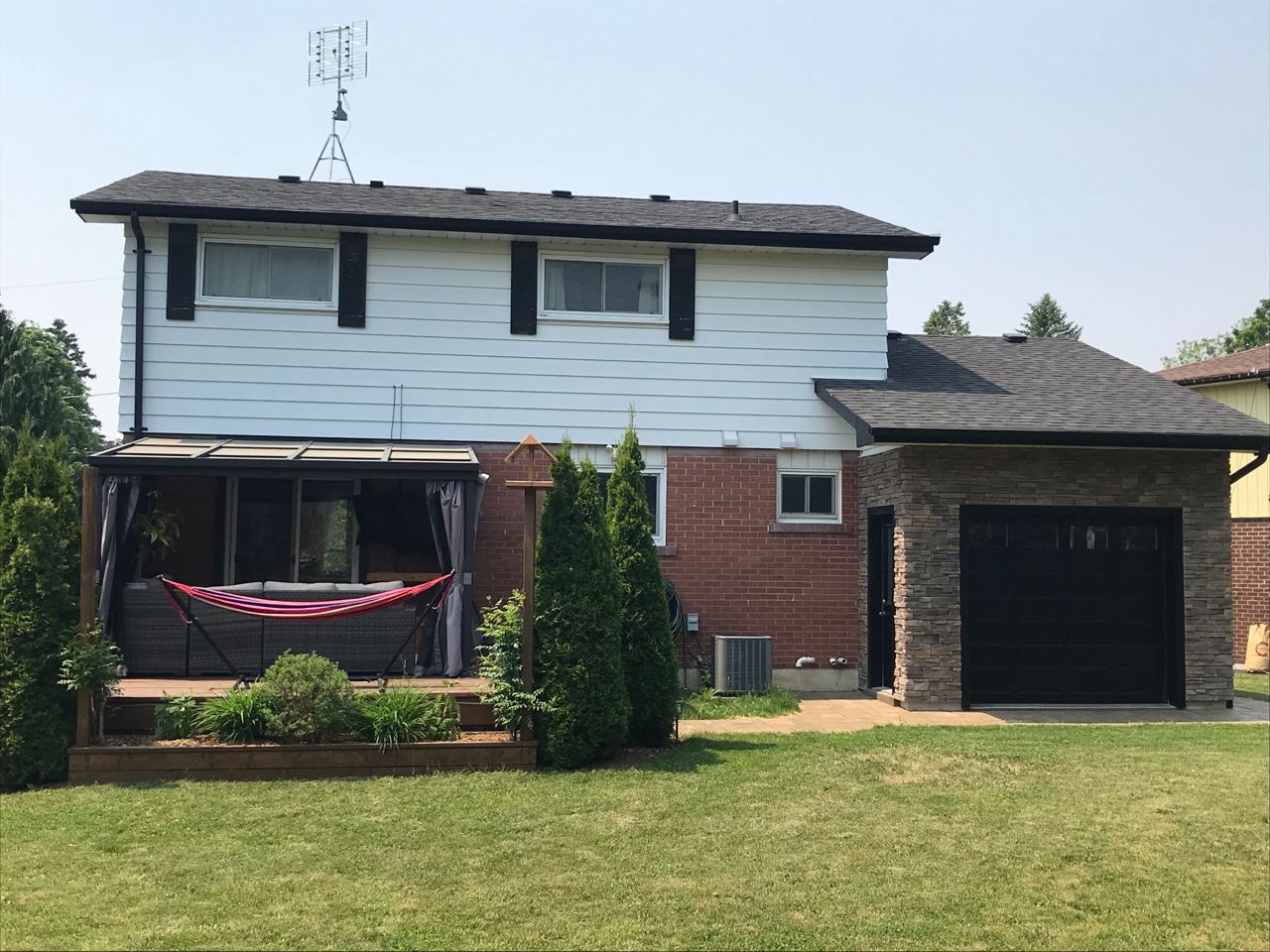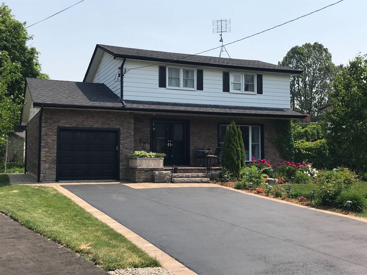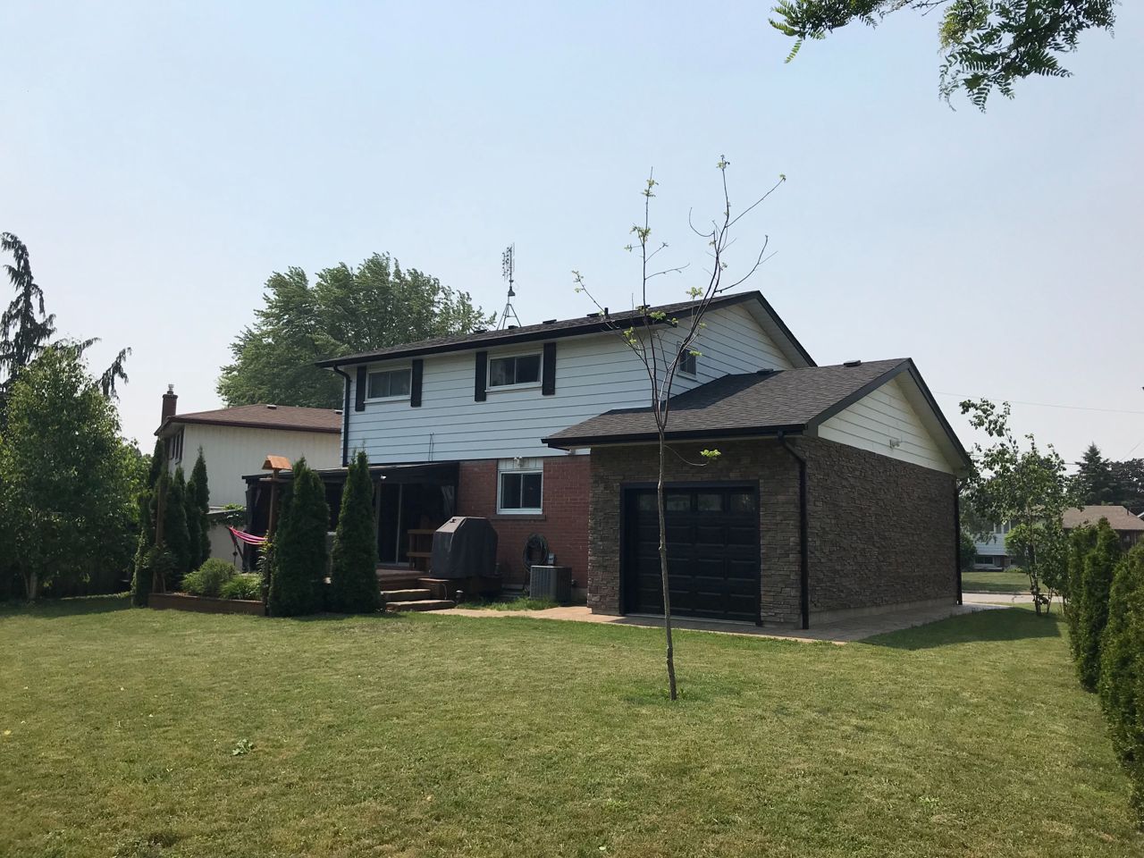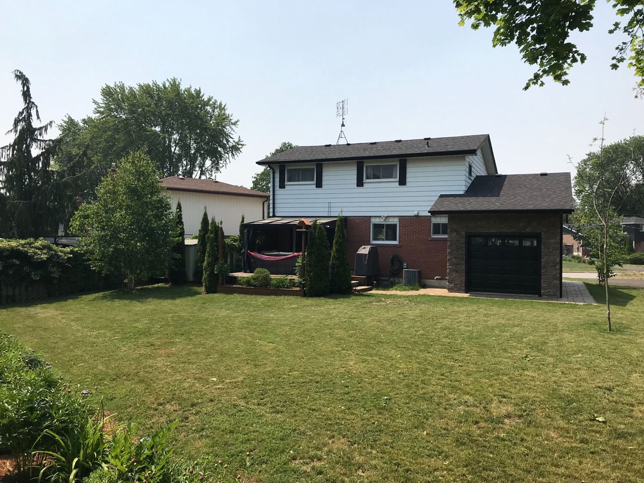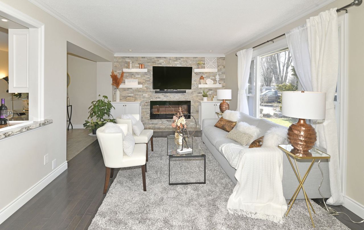 Fireplace, Hardwood, & Lrg. Window. Kitchen: Custom Cabinets, Backsplash, Crown, Pot Lights & Granite Counters. Dining: Sliding door, Walk-Out To Deck, Gas, Line For Bbq, Huge B.Y./Beautiful Gardens. Large Drive Through Heated Garage:W/Gdo and rear garage door to access Backyard, 200 Amp panel, Space 4 Future Elect Car, Rough-in For Future Hot Tub.Garage & Deck Over Engineered 4 Future Additions.Spacious Basement featuring a Fam Rm W/Fireplace, Kitchenette, Office, Wet Bar Area, T.V. rough-in W/Sound System.