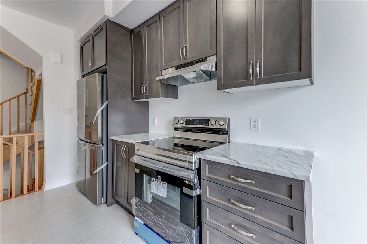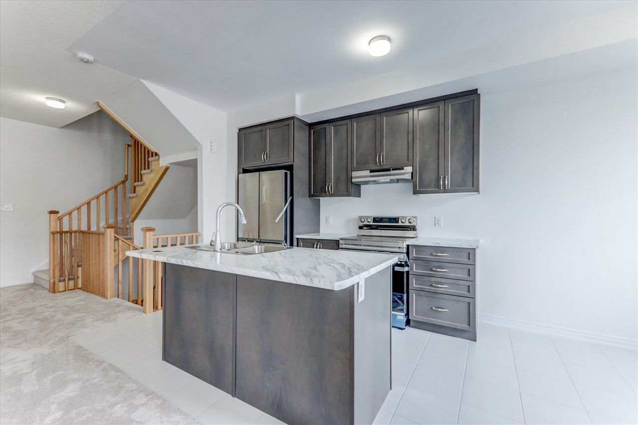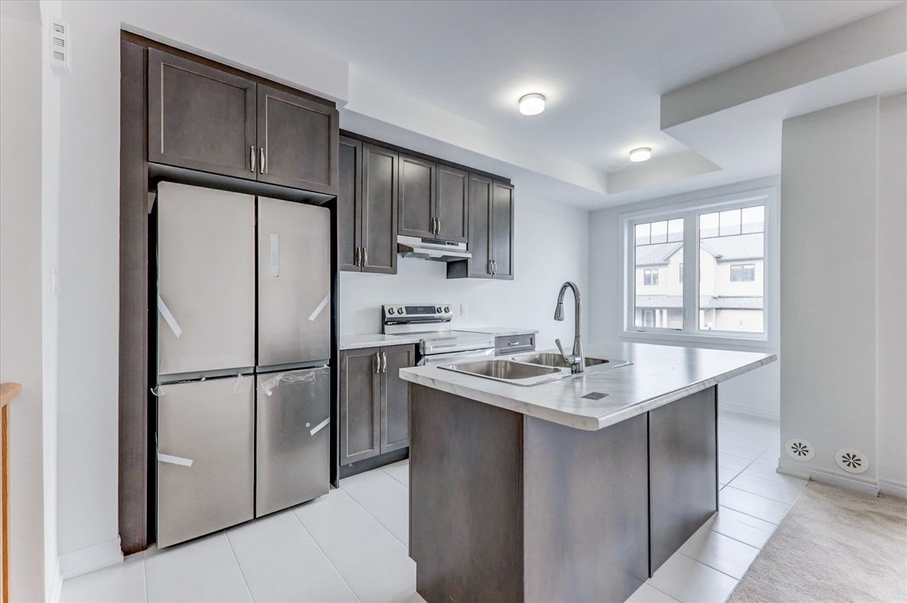 Wonderful, Gorgeous, Brand-New, Never-Been-Lived-In, Freehold Townhouse In Oshawa's Desirable Neighborhood With A Brick Front And NO Maintenance Fees. The Interior Of This 3 Bedroom With 2 Full Bathrooms And 1 Powder Room House Is Completely Modern. Enjoy The Roomy Main Floor Living And Dining Area With 9-Foot Ceilings, A Wide Window, And A Bright, Modern Kitchen With A Centre Island, A Breakfast Bar, And A Walkout To A Balcony. Three Pleasant Bedrooms, Including The Master Bedroom With A Balcony, Are Located On The Upper Level. No-Walkway Built-In Single-Car Garage With Additional Two-Car Parking And The Go Train, Costco, Excellent Educational Institutions, Oshawa University, Shopping Centers, Parks, And Highway 407 And 401are All Nearby.