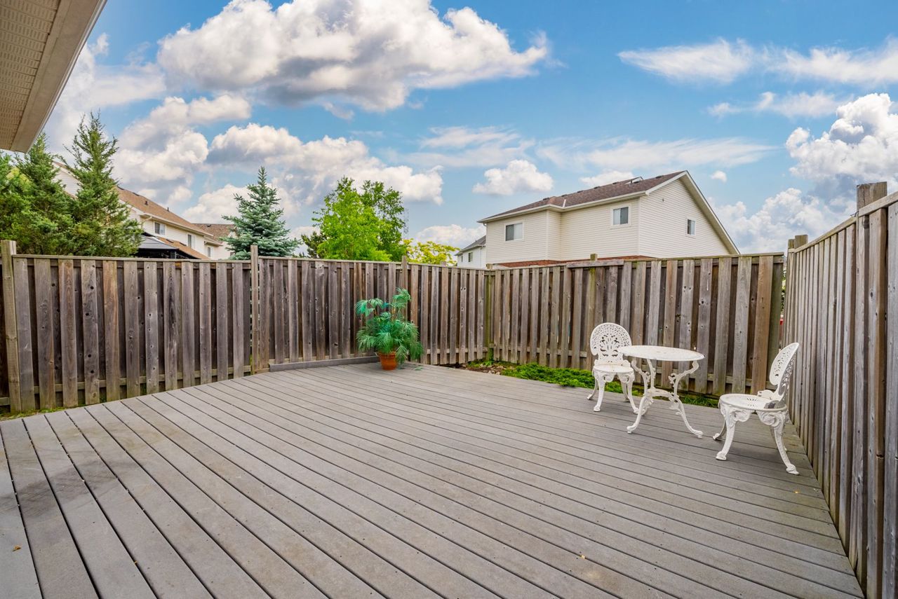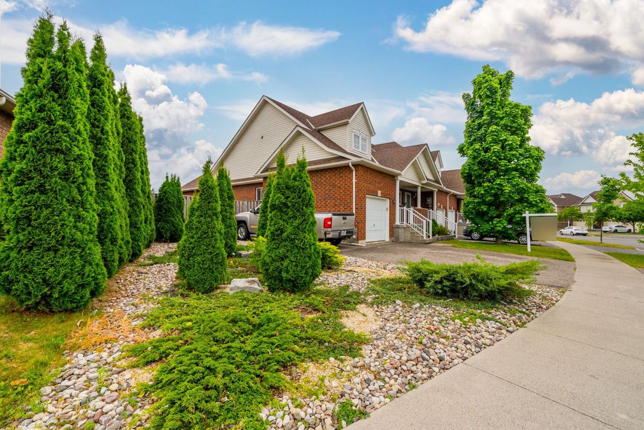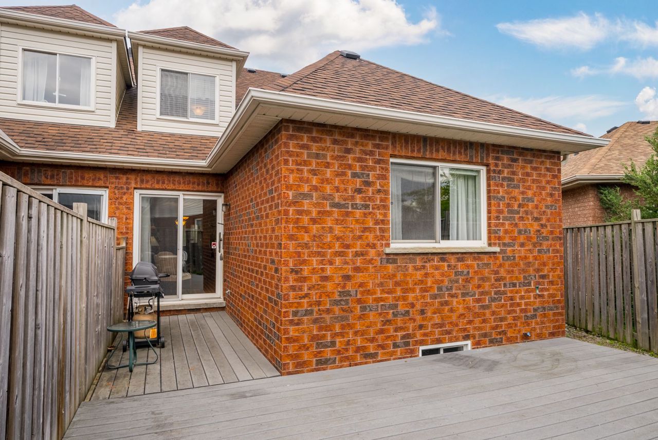 This impressive 3-bedroom, end-unit bungaloft boasts a fabulous layout with a walk-out to a huge private deck and beautifully landscaped area. Situated on a pie-shaped lot with a 59-foot frontage, it offers ample outdoor parking with 3 spaces and a garage, perfect for car enthusiasts. The primary bedroom on the main floor includes a walk-in closet and semi-ensuite bath, while the two upstairs bedrooms provide plenty of additional living space. The full, unspoiled basement is perfect for storage or can be finished to suit your needs. The location is unbeatable, directly across from Conlin Meadows Park and close to all amenities, shopping, and easy access to the 407.