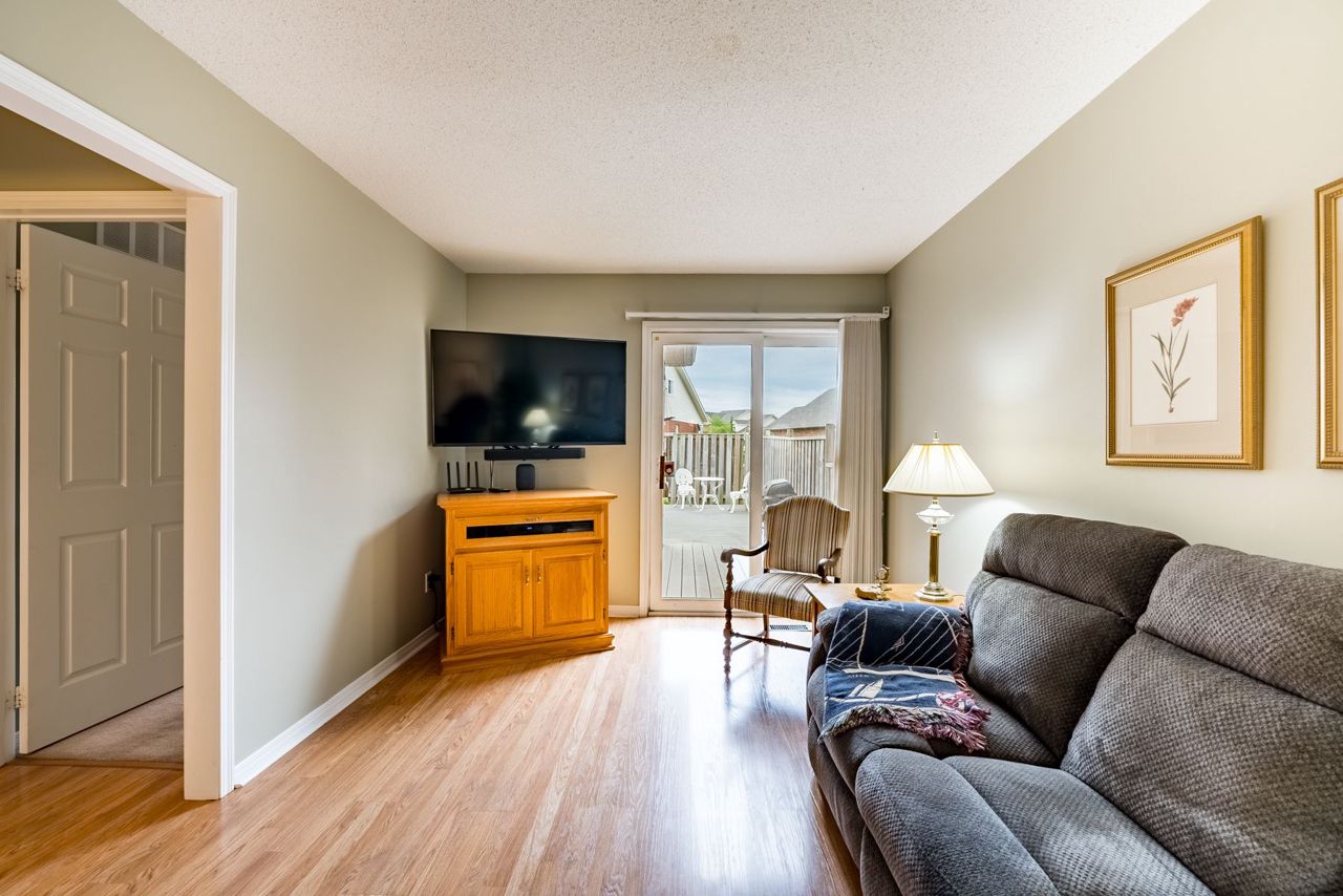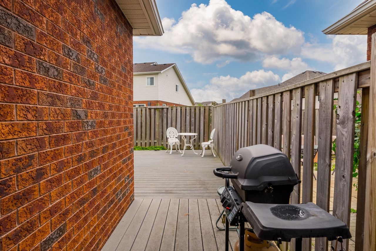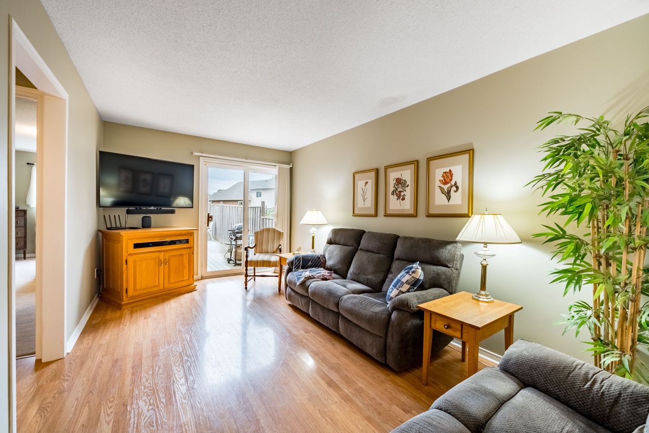 This impressive 3-bedroom, end-unit bungaloft boasts a fabulous layout with a walk-out to a huge private deck and beautifully landscaped area. Situated on a pie-shaped lot with a 59-foot frontage, it offers ample outdoor parking with 3 spaces and a garage, perfect for car enthusiasts. The primary bedroom on the main floor includes a walk-in closet and semi-ensuite bath, while the two upstairs bedrooms provide plenty of additional living space. The full, unspoiled basement is perfect for storage or can be finished to suit your needs. The location is unbeatable, directly across from Conlin Meadows Park and close to all amenities, shopping, and easy access to the 407.