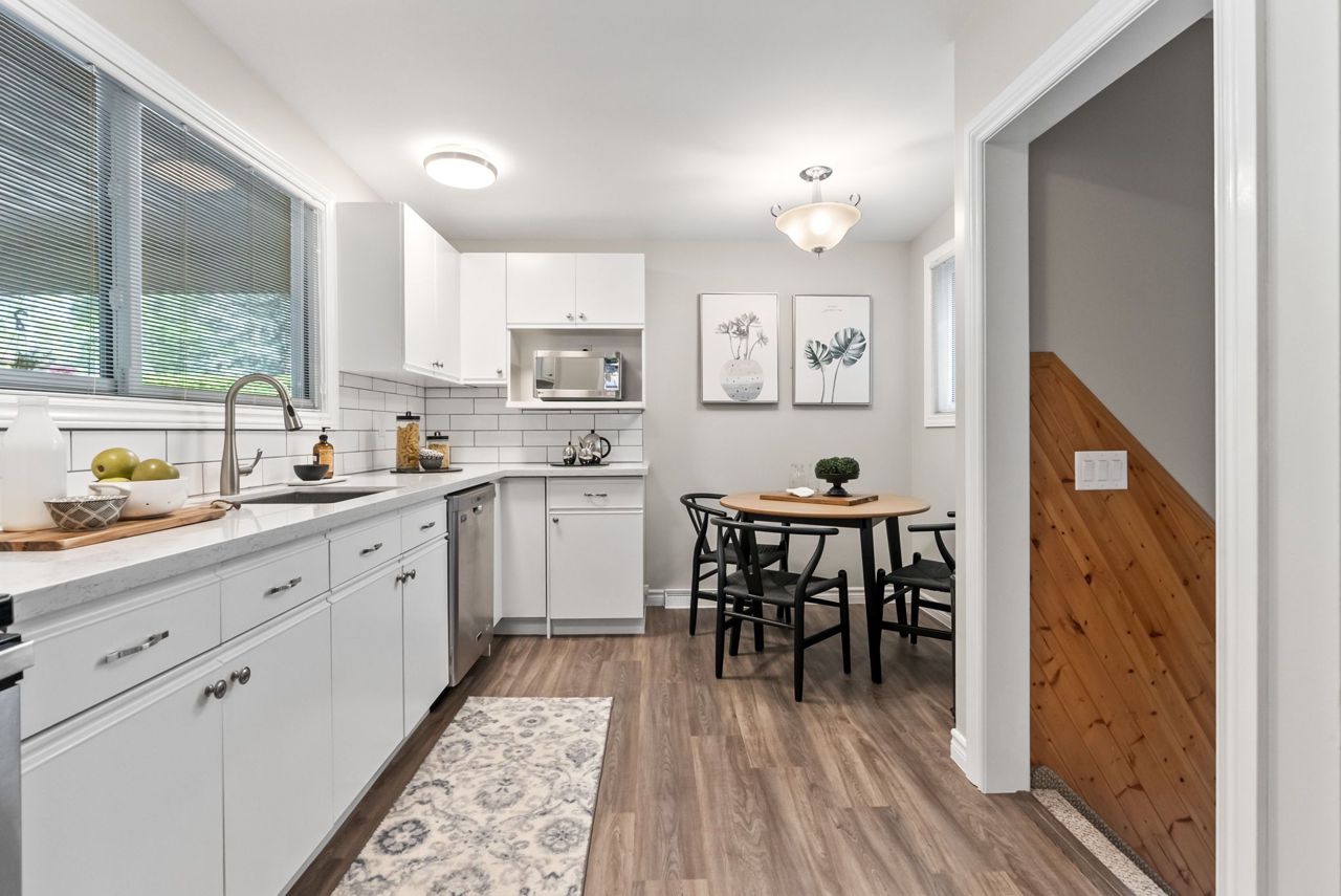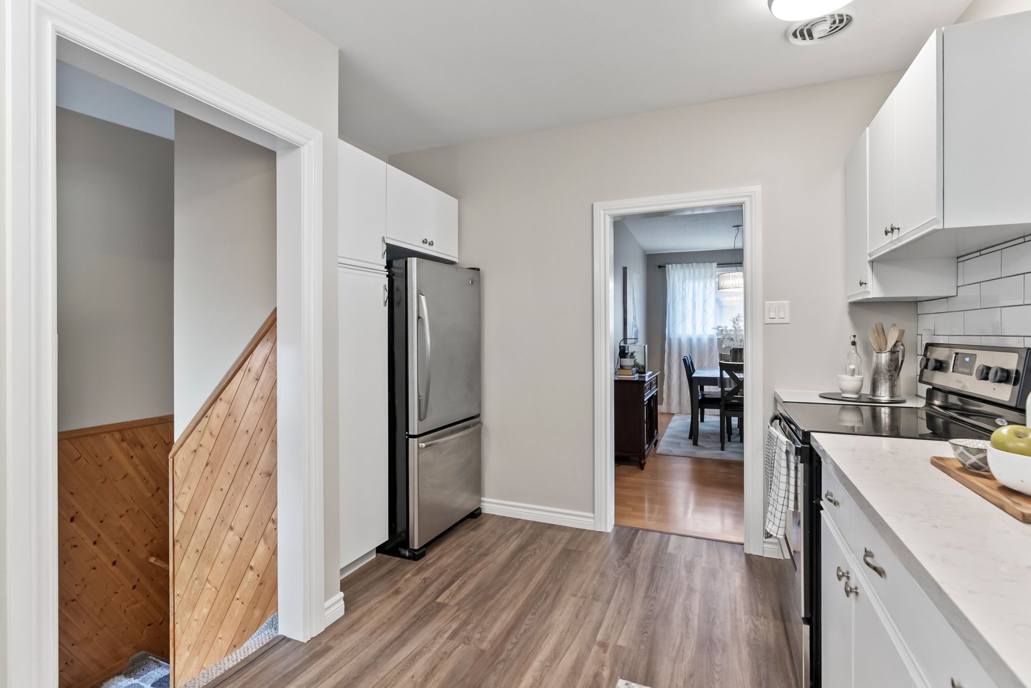 Welcome to the perfect place to call home, nestled in a charming neighborhood just across the street from Keewatin Park! As you step onto the large freshly stained front porch, you'll immediately feel the inviting atmosphere of this well-maintained home. With 3+1 bedrooms, there's plenty of room for everyone in the family to enjoy their own space. The main level is a haven of natural light, featuring a bright, open concept dining and living room complete with a cozy fireplace. The renovated eat-in kitchen provides the ideal setting featuring granite countertops, stainless steel appliances, new flooring and a custom backsplash. Three bright bedrooms feature double closets and tons of natural light. A separate entrance leads you to the finished lower level, where you'll discover an additional bedroom and bathroom, a generously sized rec room, and the added convenience of an oversized storage/laundry area. This versatile space opens up a world of possibilities.This large lot comes with a detached oversized 16X24 ft garage. Act now and seize this chance to own a spacious and well-maintained bungalow in a prime location. Updated electrical outlets including garage and lighting in 2023.