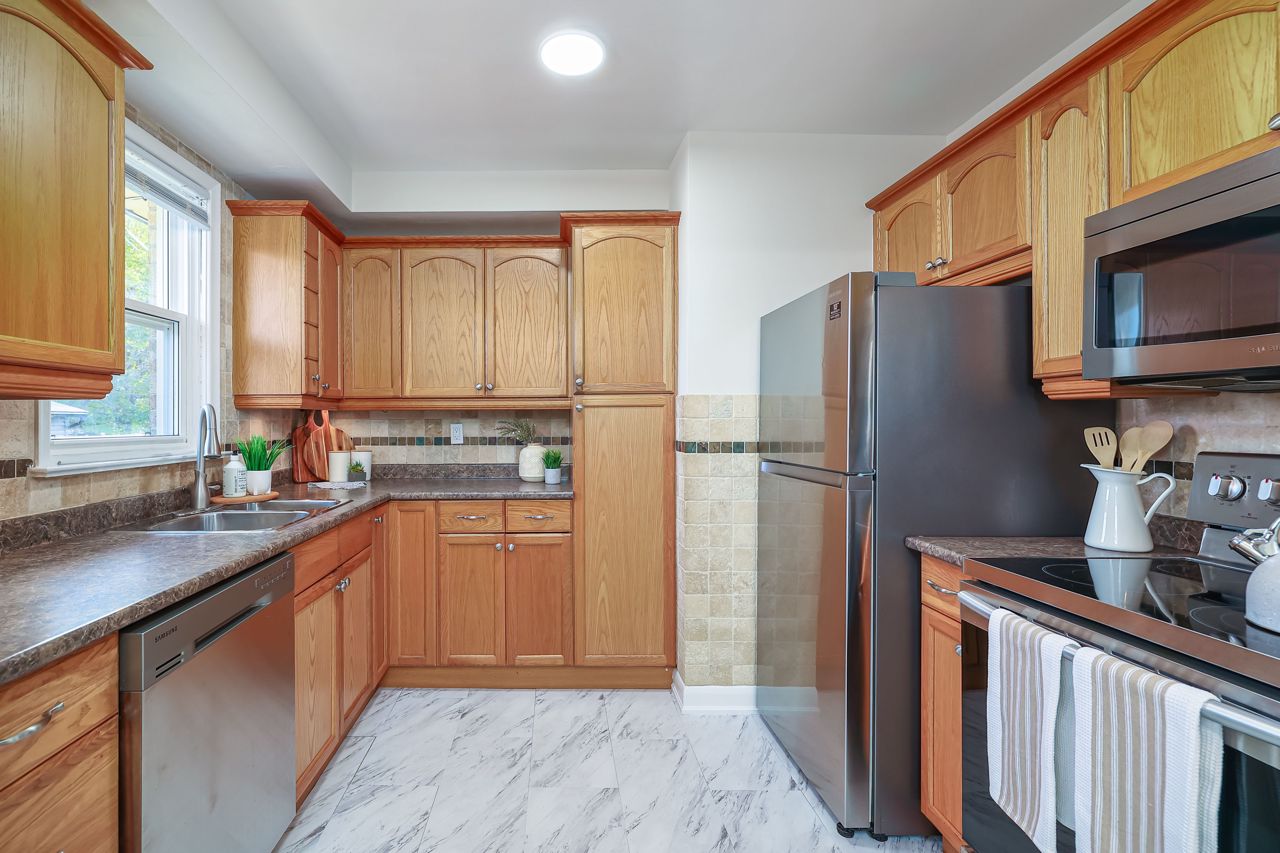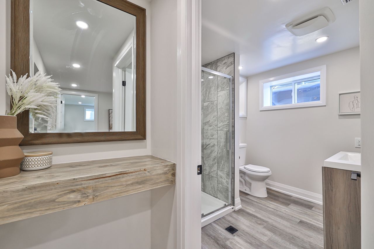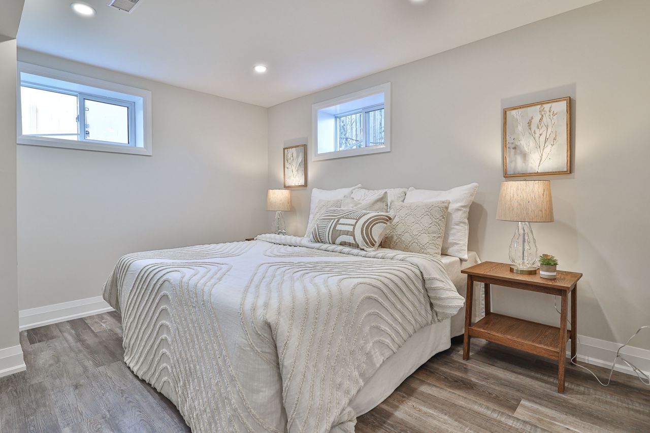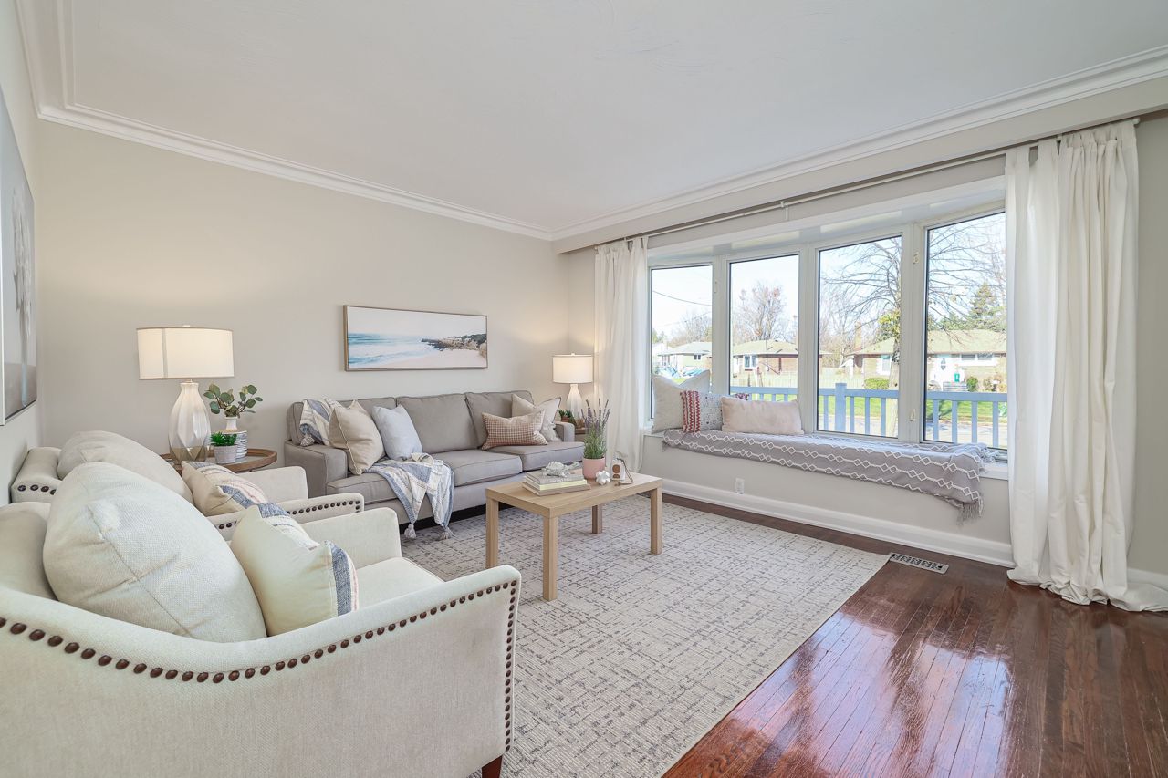 Picturesque location, just a short walk to the Lake in family friendly South Oshawa! Nestled on a premium lot, this beautifully updated home welcomes you up the long driveway & onto the large porch where you can step inside & feel right at home! A huge bay window soaks the living room in sunlight & hrdwd floors feel warm under your feet. The spacious kitchen, combined w/dining area, boasts new luxury flooring, stainless appliances & stylish new light fixtures! 3 large bedrooms, each complete w/spacious closets & hrdwd under the broadloom. 2 of the bedrooms overlook the private backyard, a lush area for family gatherings & play. A side entry leads to the lower level retreat, designed to be bright, comfortable & functional w/modern kitchen, open concept living/dining space & 2 large bedrooms, each w/double closets & South facing windows to draw the sunlight in. Sleek 3Pc Bthrm w/designer finishes & glass shower enclosure. Near schools, comm. cntr, transit, 5mins to the highwayTons of storage space -7 closets + large cold rm & utility rm! All new: doors & handles, fresh paint, trim & shoe mold, basement finishes. Brdlm in bedrooms has been professionally steam cleaned. Move in ready & quick close possible!