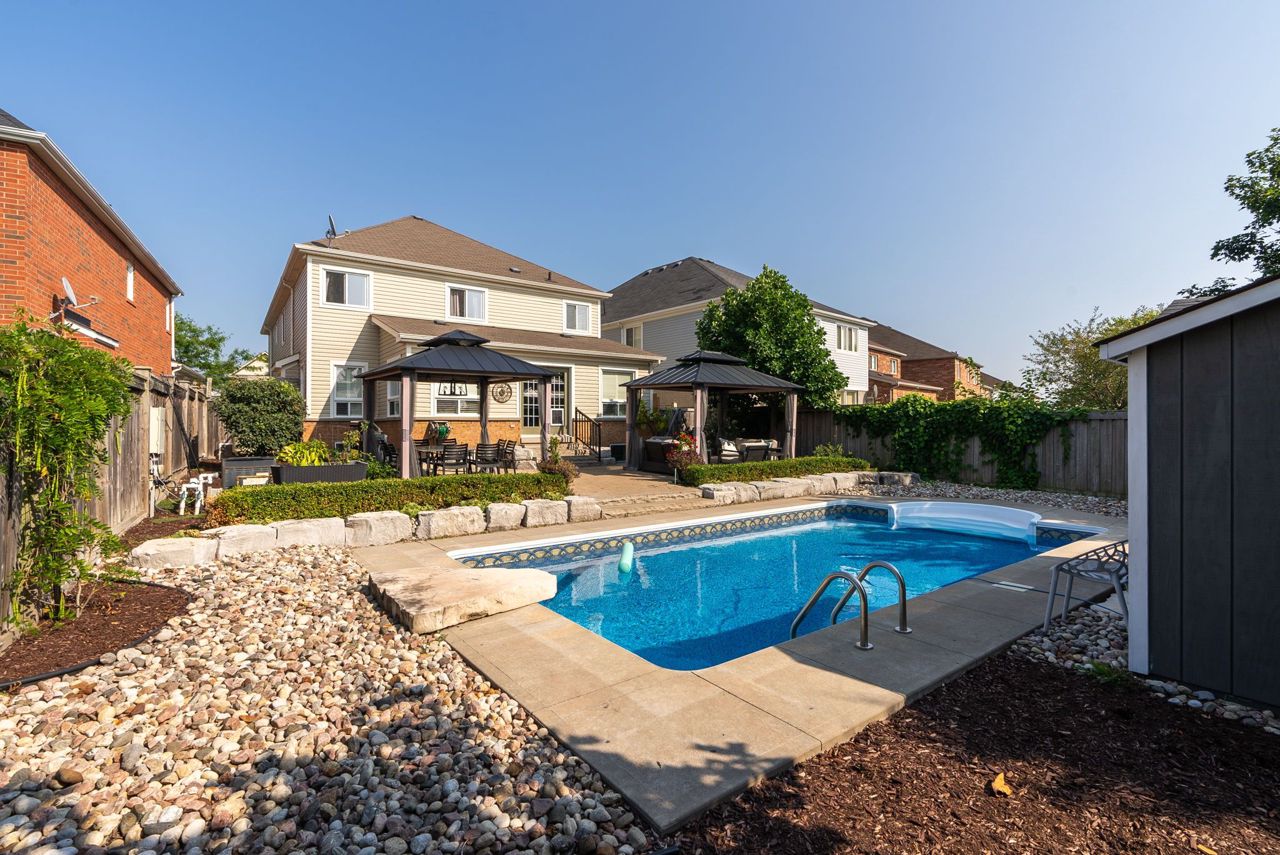 Salt Water Pool & Separate Entrance to basement with 2nd Kitchen, bedroom & Bathroom. 2 Storey, 3225 sq. ft. Beauty with 4 bedrooms & every bedroom has access to a bathroom. Inground salt water pool (bonus 10 ft. deep) & professional landscaping (2012). Pool has safety cover. New pool pump 2023 . Separate side entrance to the finished basement with a very functional white kitchen with lots of storage s/s appliances, living room, additional bedroom with proper egress and 4 pc. bathroom plus a washer & dryer. Updated main kitchen in 2019 with white cabinetry, gas stove, s/s fridge, dishwasher, marble backsplash, large island with quartz countertops. Broadloom upstairs 2023. 2nd Floor Media/Entertainment Area + 4 Bedrooms