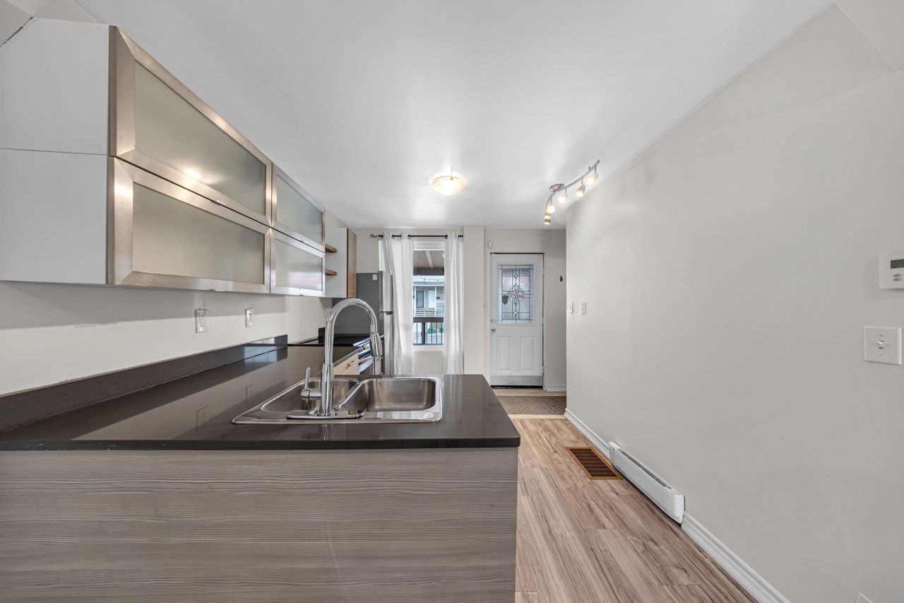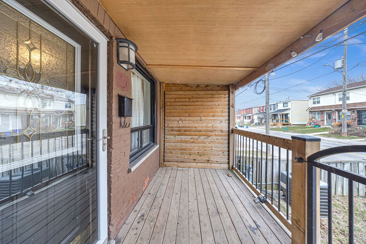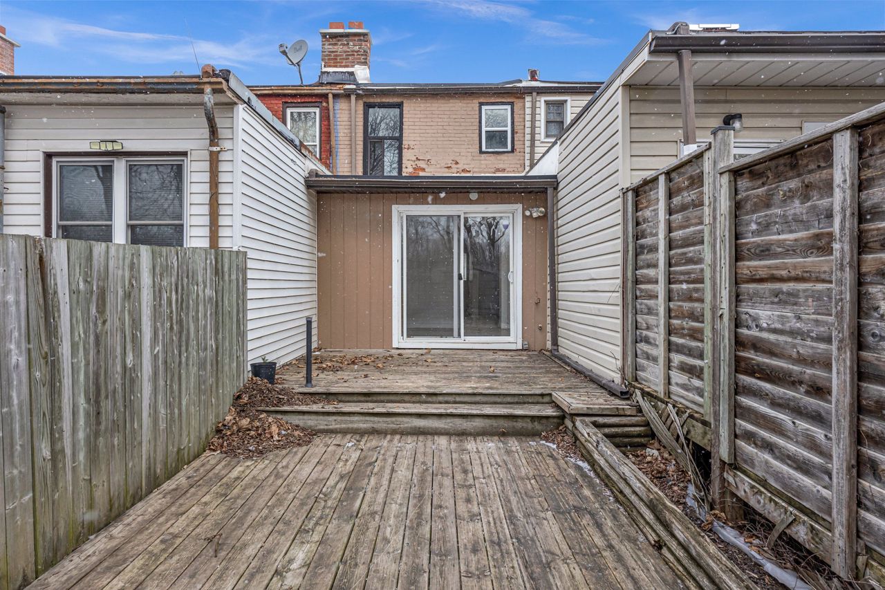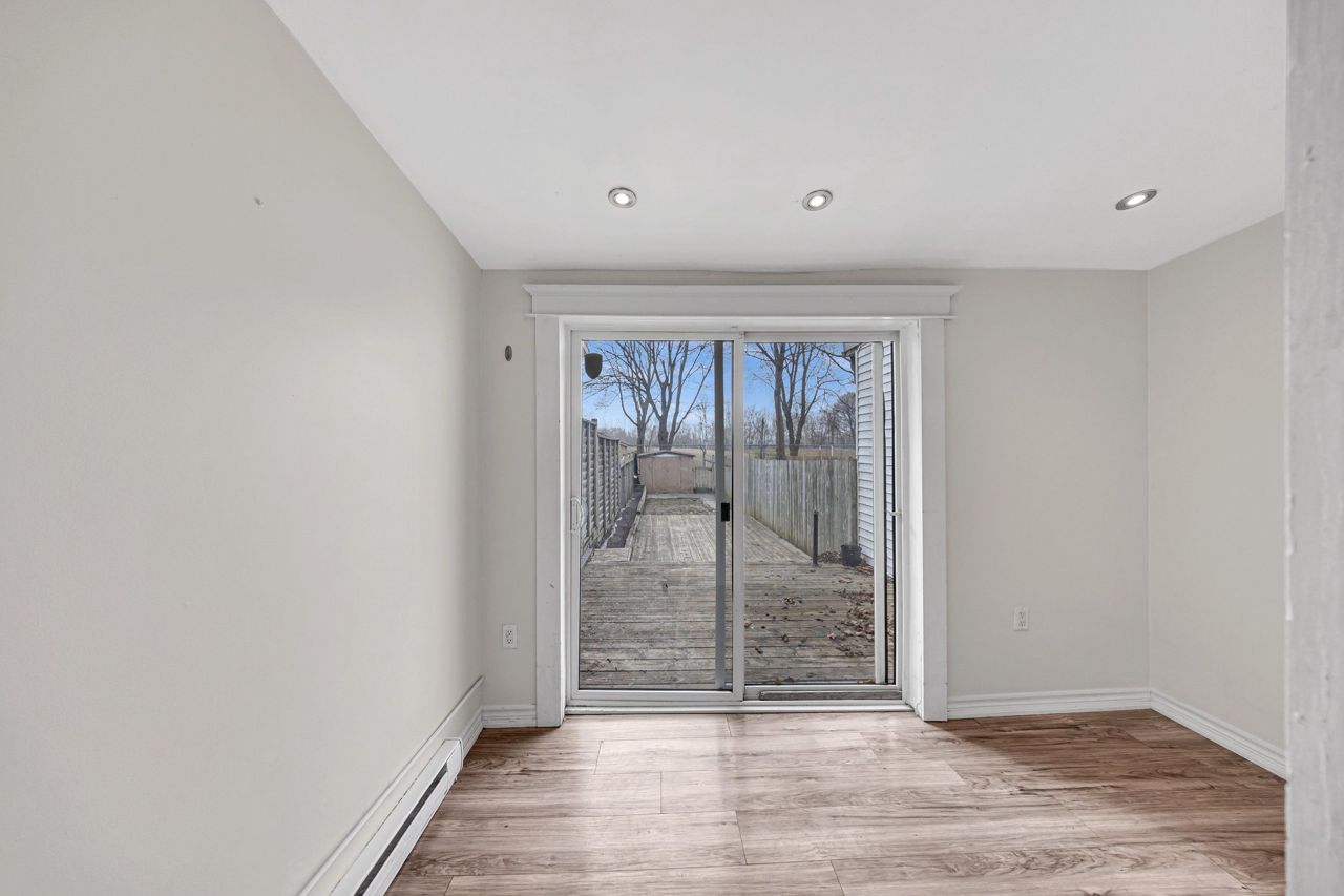 Discover this beautiful townhome, ideally located just steps from parks, schools, transit, and only minutes from Hwy 401. The stylish, modern kitchen features stunning quartz counter tops and a breakfast bar, perfect for entertaining. The main level features laminate flooring and fresh paint, creating a bright, welcoming space. The open-concept layout is complemented by a rear office or den, with a walk-out to aback deck and a fully fenced, private yard that backs onto a serene park. The charming front porch adds curb appeal, while the main bathroom offers a fresh, contemporary feel. Second bathroom located in the basement as well as washer/dryer. This home offers a perfect blend of comfort, convenience, and timeless appeal.
