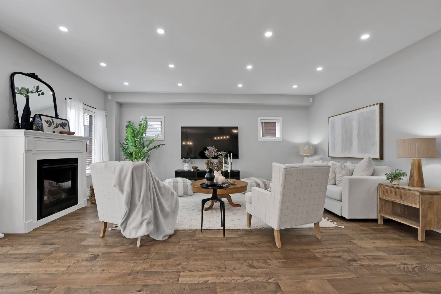 Gas Fireplace Pot Lights Hardwood Floor