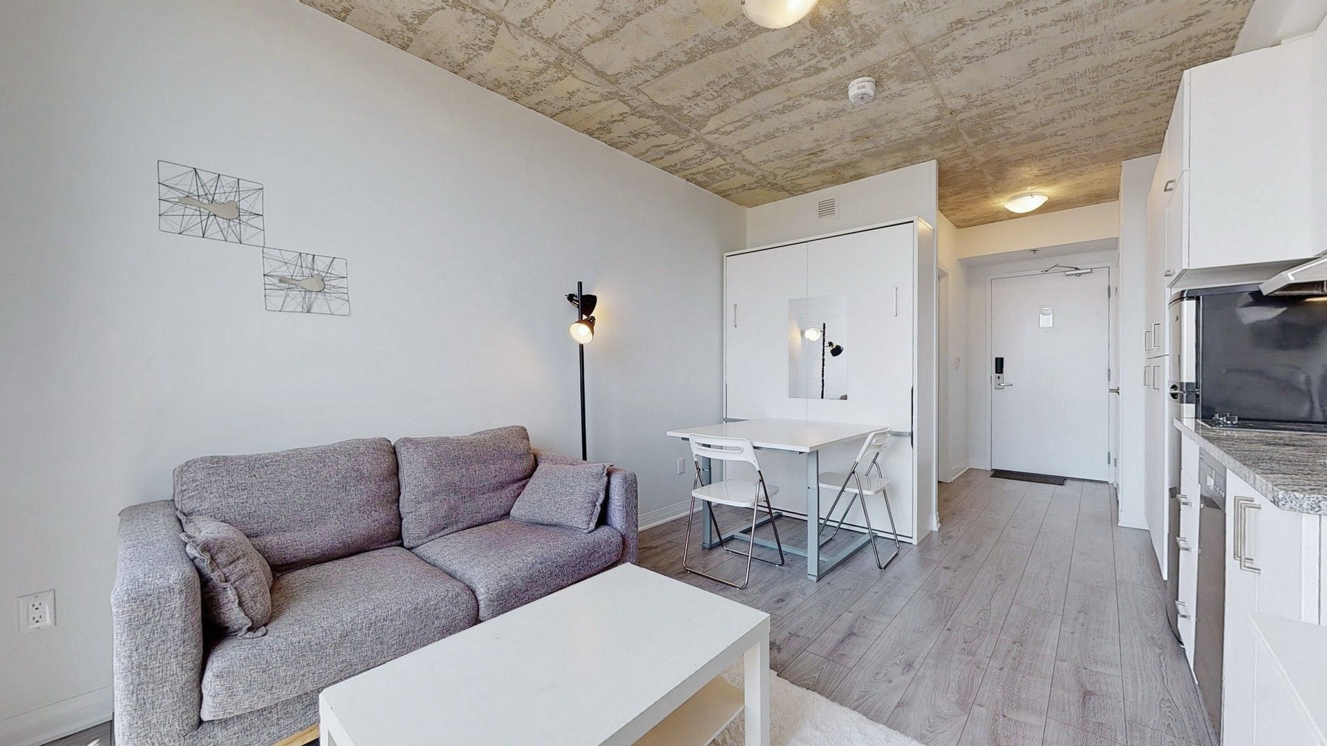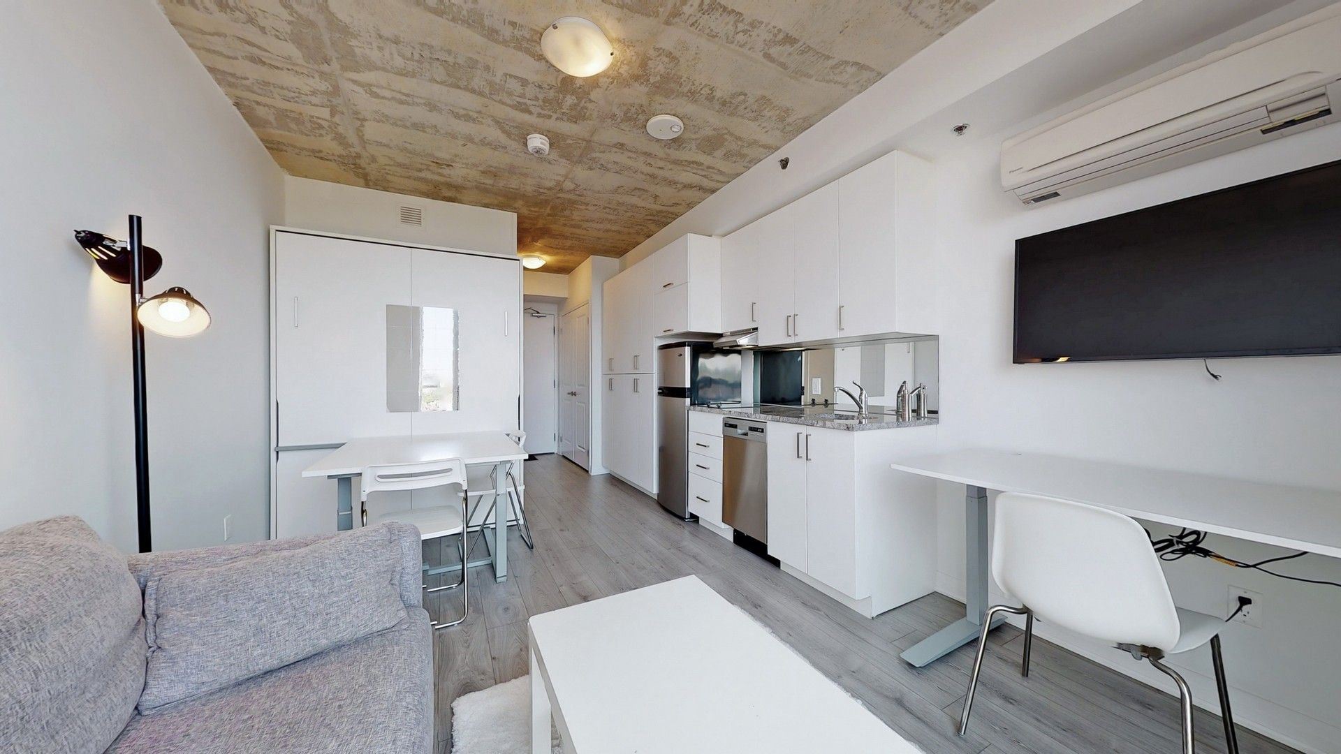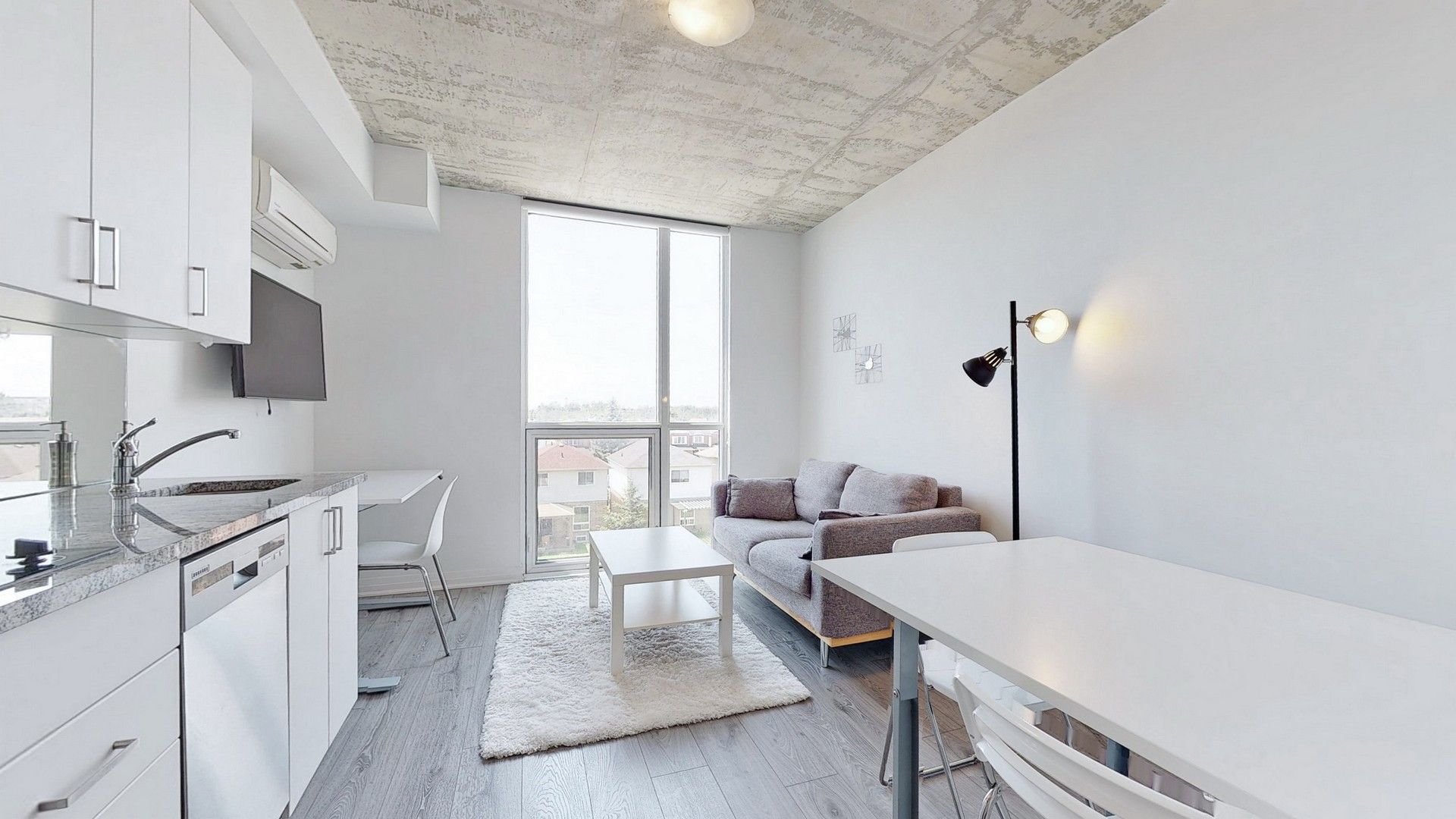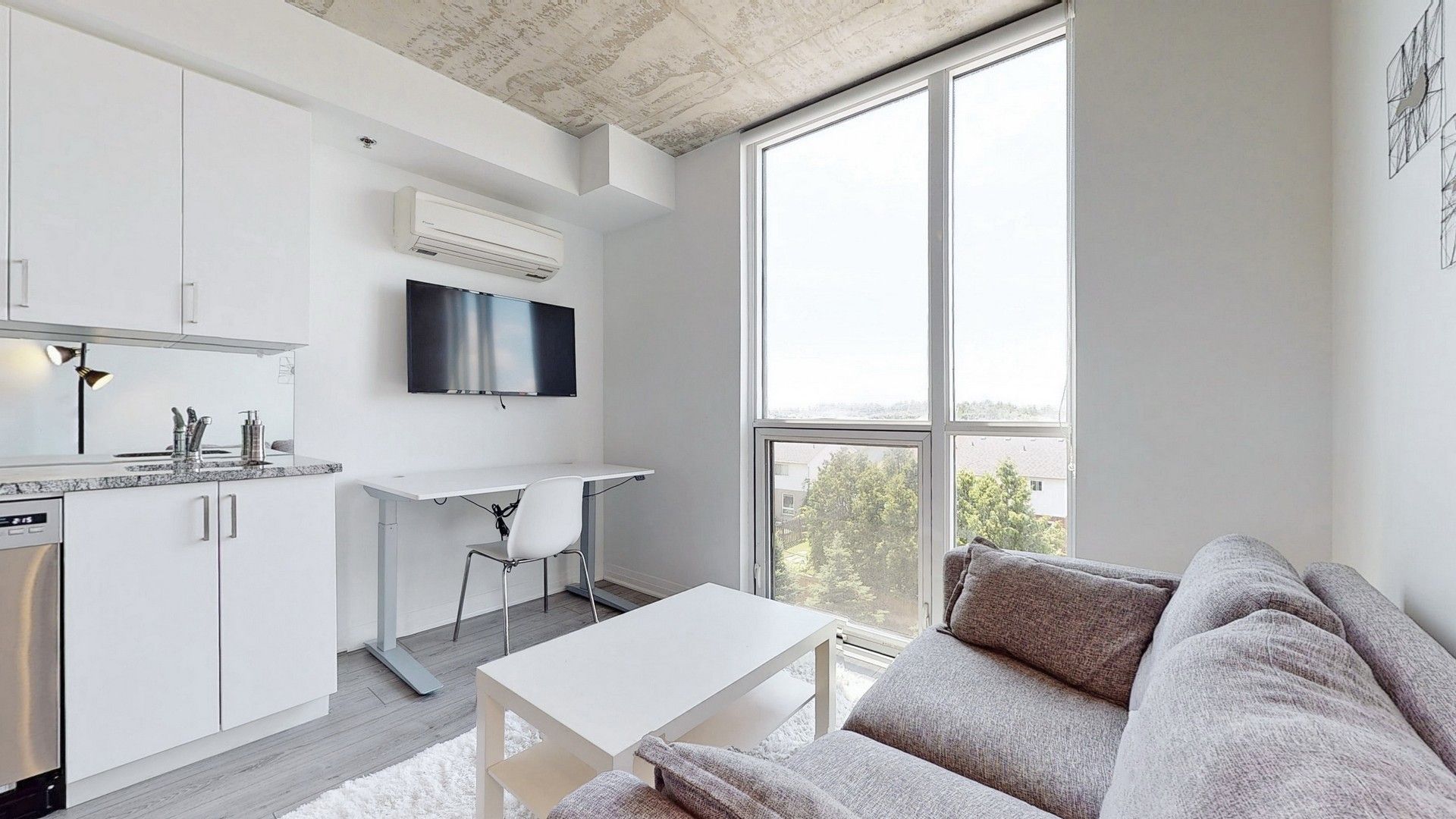 Welcome To The New Furnished University Studios Next To Durham College/Ontario Tech Univ., Transit, Food And Shopping Amenities. This Cozy And Stylish Studio HAs An Efficient Layout With Smartly Designed Kitchen, Dining, Work Table With Usb, Fold Down Bed, 3 Pc Bath. Common Area Lounge For Social Gathering, Gym, Party Room, And Outdoor Bbq With Concierge. Step Outside For Coffee, Food, And Snacks.All Existing Elfs And Blinds, S/Steel Fridge, B/I Microwave And D/W, 2 Burner Stove With Range Hood, Washer And Dryer, Built In folding Bed, Built In Desk Workstation, Desk Chair, Sofa, Coffee Table, Tv With Wall Mount.