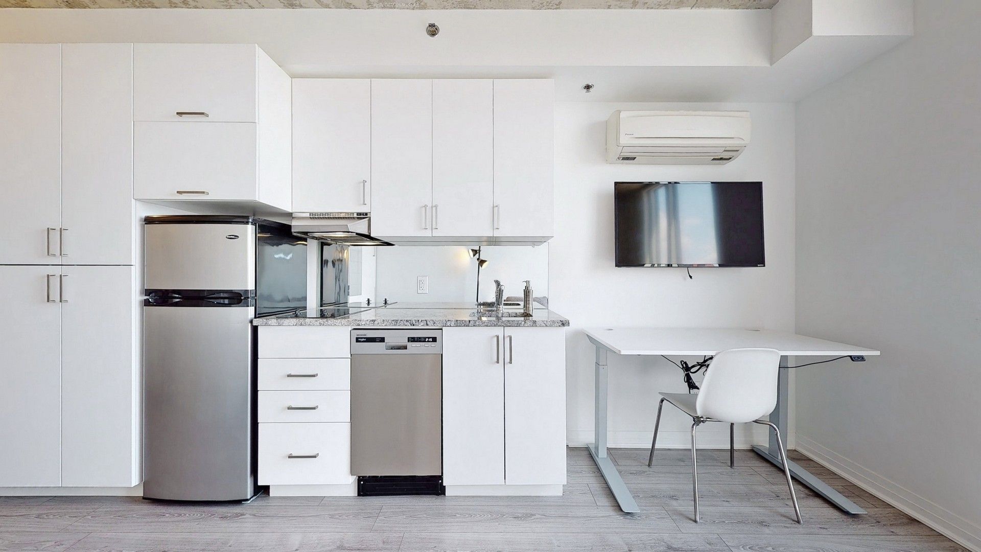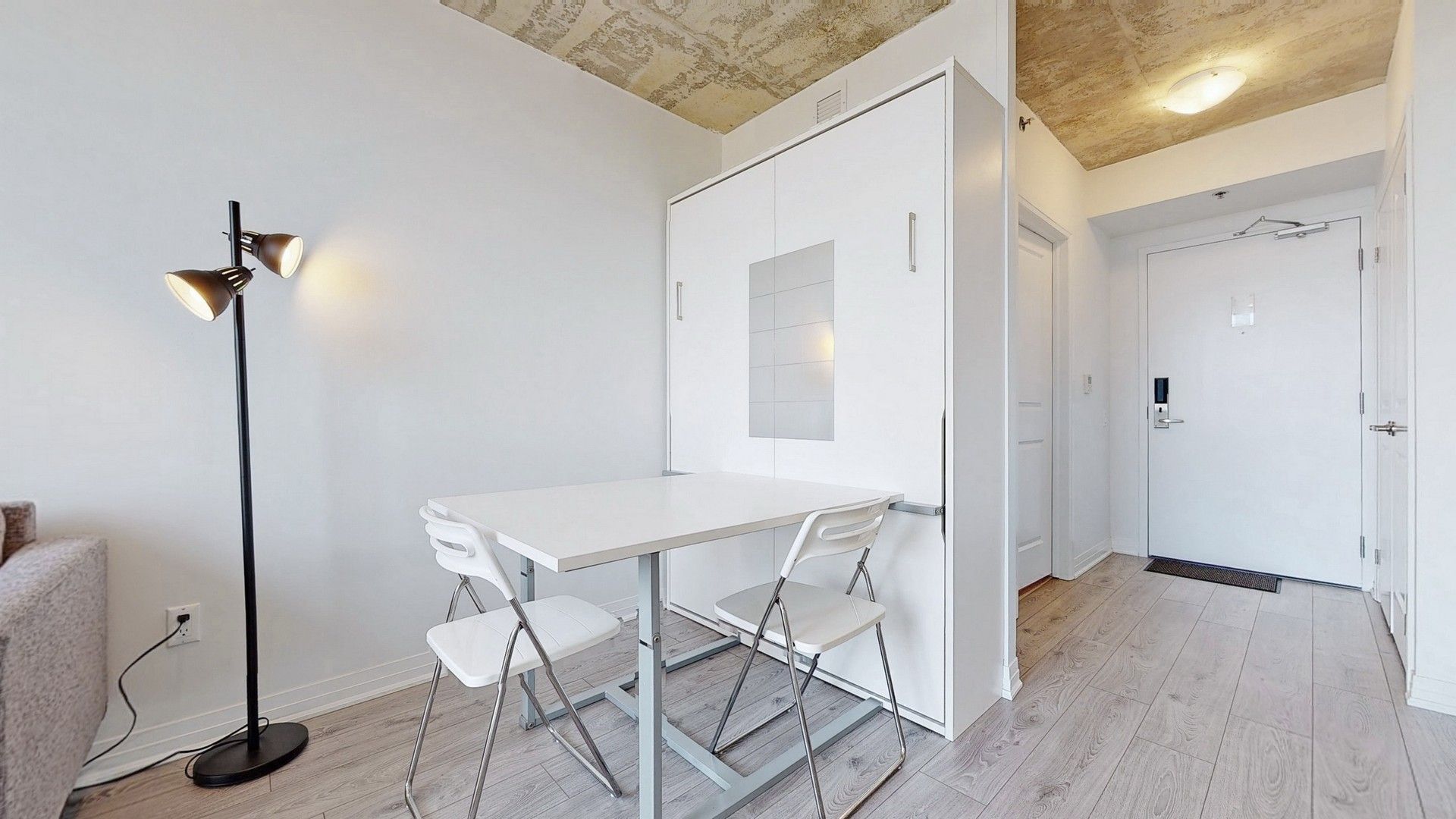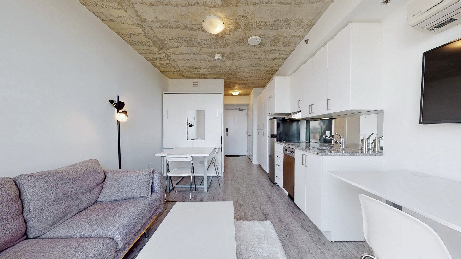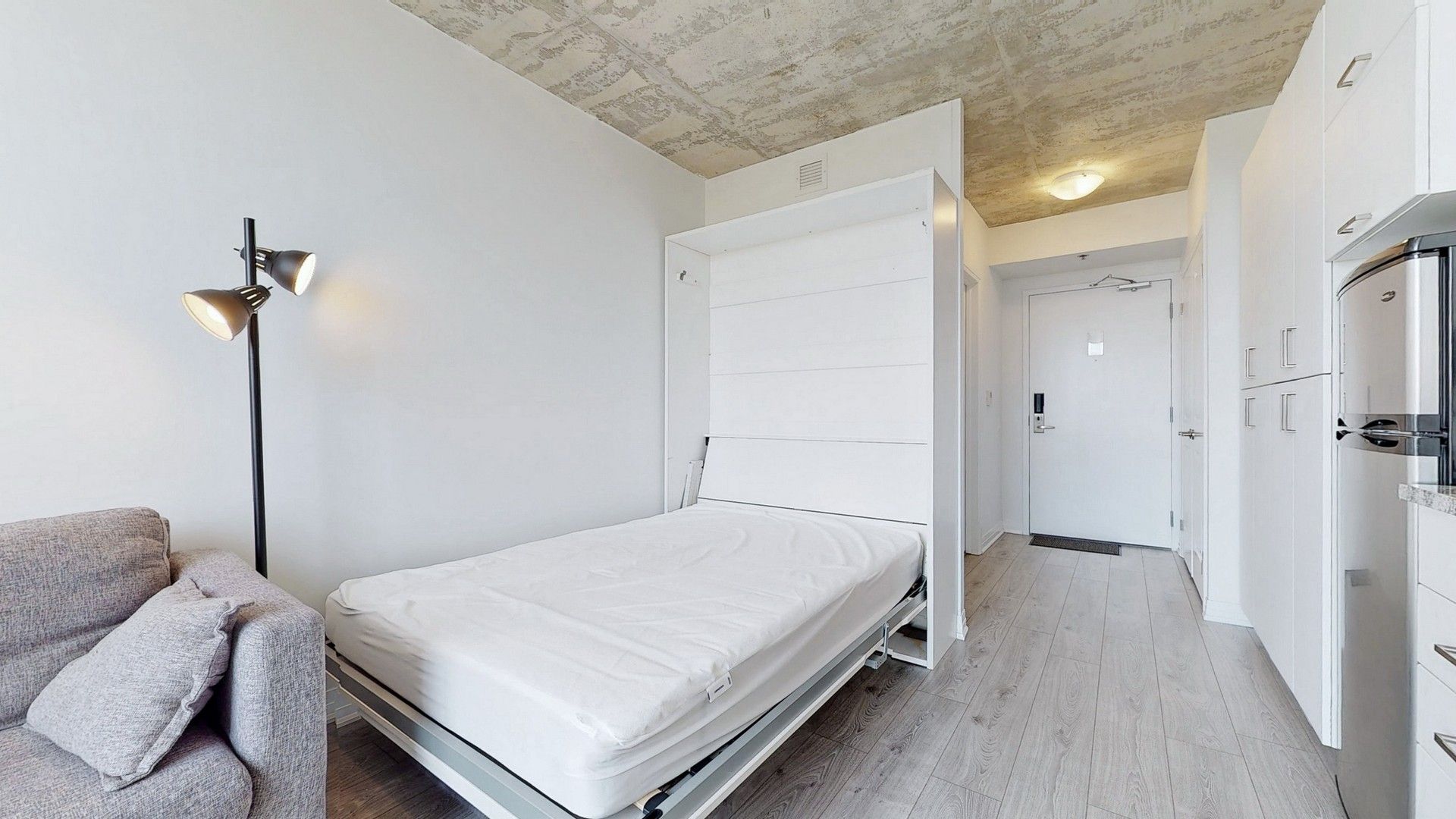 Welcome To The New Furnished University Studios Next To Durham College/Ontario Tech Univ., Transit, Food And Shopping Amenities. This Cozy And Stylish Studio HAs An Efficient Layout With Smartly Designed Kitchen, Dining, Work Table With Usb, Fold Down Bed, 3 Pc Bath. Common Area Lounge For Social Gathering, Gym, Party Room, And Outdoor Bbq With Concierge. Step Outside For Coffee, Food, And Snacks.All Existing Elfs And Blinds, S/Steel Fridge, B/I Microwave And D/W, 2 Burner Stove With Range Hood, Washer And Dryer, Built In folding Bed, Built In Desk Workstation, Desk Chair, Sofa, Coffee Table, Tv With Wall Mount.