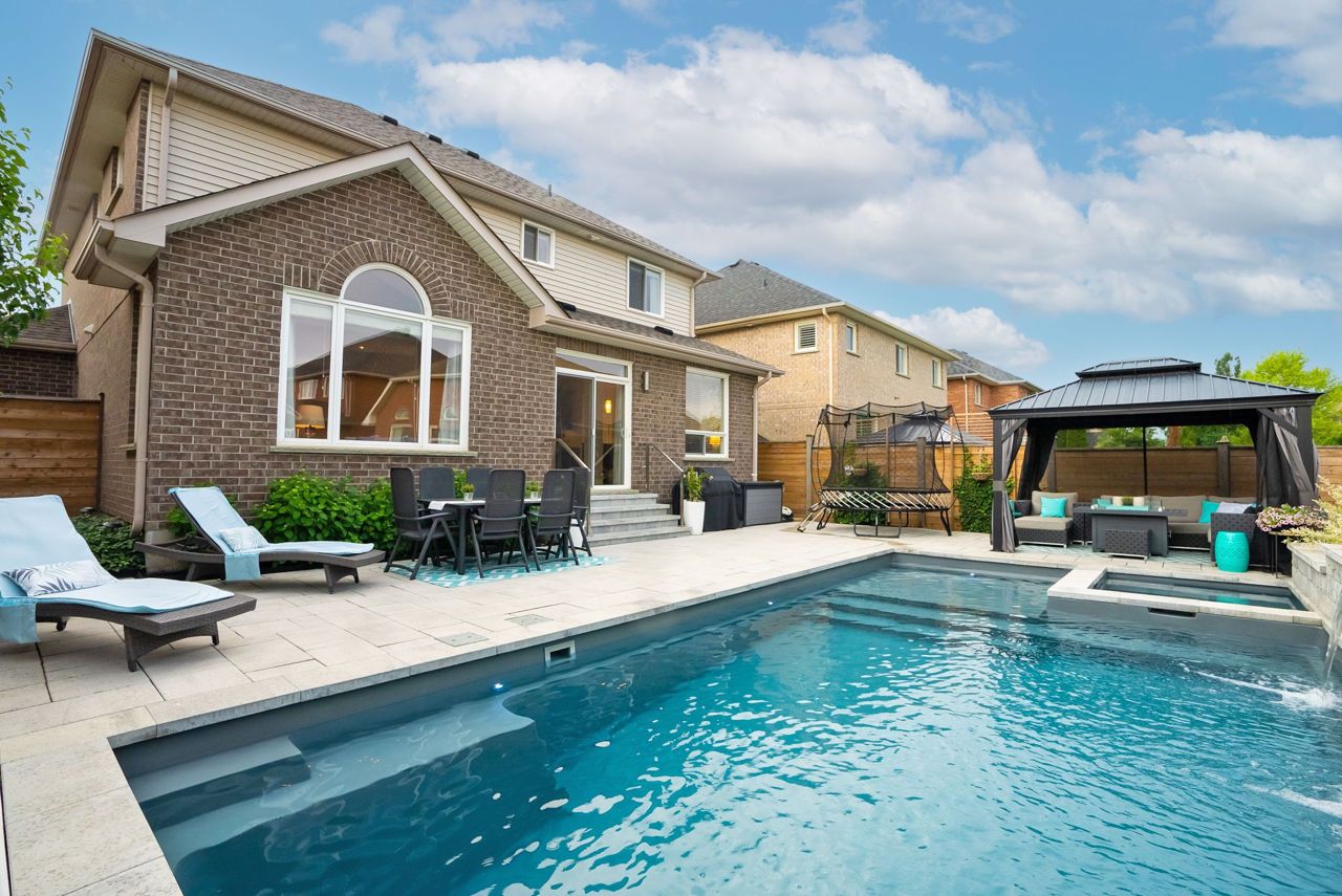 This Home Is A Stunning Blend Of Designer Finishes And Comfort, Featuring An Inviting Open-Concept Main Floor Design, High Vaulted Ceilings, Hardwood Floors, Updated Lighting, Inviting Sitting/Dining Area, Large Kitchen with Quartz Counter, Breakfast Bar & Eat-In Kitchen. Open To The Family Room and Patio Doors To The Breathtaking Backyard Oasis. Immerse Yourself In This Dreamy Spa-Liked Experience Inground Low Salt Fiberglass Pool With Built-In Waterfalls, Hot Tub and Lights! Thousands of Dollars Spent On This Landscaped One Of A Kind Backyard. This Jeffery-Built Home Features 4 Beds, 3 Baths, Large Primary Suite With A Custom Designed His/Her Closet & 4pc Ensuite. Another Big Bonus Is The Finished Basement With Custom Bar, Lighting, 7.1 Surround Sound System & Projector For The Most Excited Movie Fanatic Or Epic Entertaining Vibe!This Home Has The Coolest Vibe! You Got To See It! You Won't Be Disappointed!!