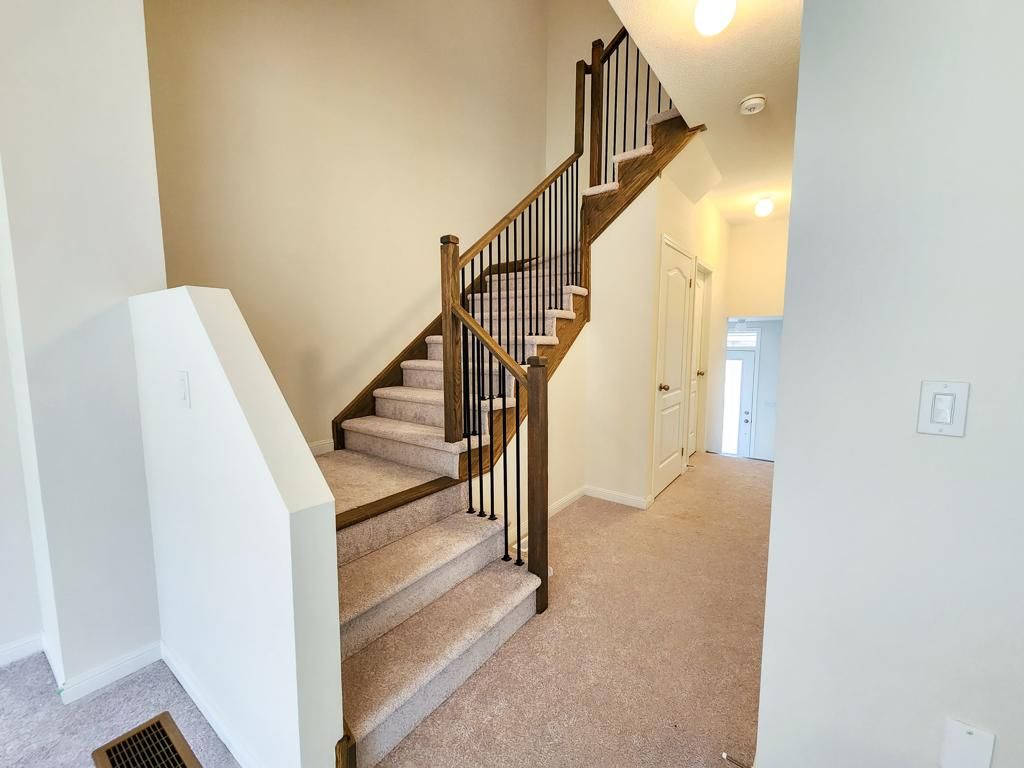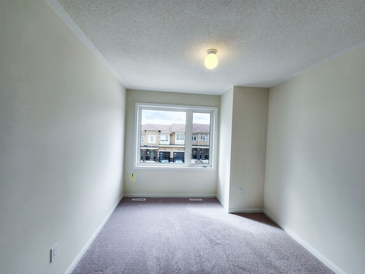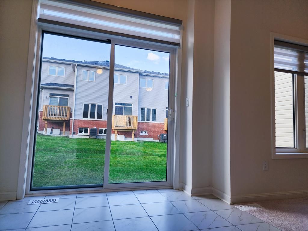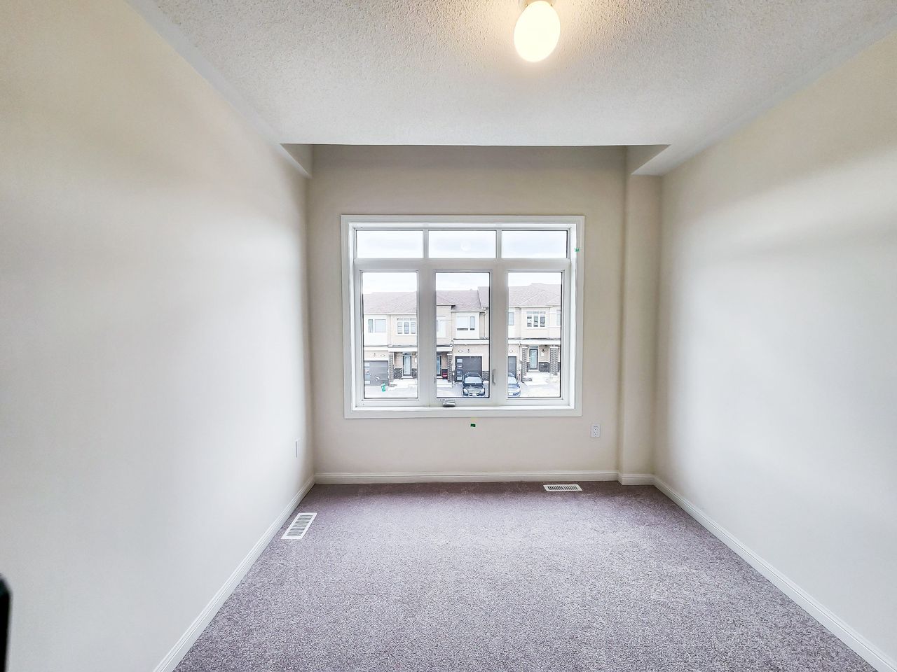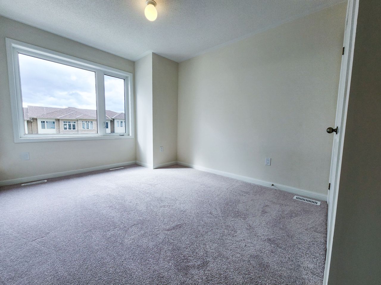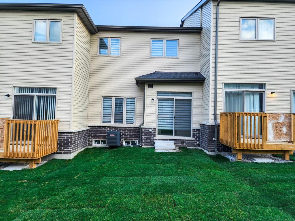 Welcome to your dream home! Nestled in the heart of the family-friendly Windfields neighborhood, this brand-new freehold townhouse is all about modern living. Never before lived in, this residence offers your perfect living space. The open-concept floor plan seamlessly connects the modern kitchen and dining areas, providing an ideal space for entertaining friends and family. The kitchen boasts sleek finishes and top-of-the-line appliances, making meal preparation a delight. The 9 ft ceilings on the first floor create an spacious ambiance, while the elegant 8 ft archways further enhance the look of the space. Oak finish of the modern-style pickets and railings adds a touch of sophistication to the interior. the brushed nickel finish door knobs and hinges to the convenient shut-off valves, colored vinyl casement windows not only add a pop of color to the exterior but also provide energy-efficient functionality. The 8 x 8 garage door, extended cabinets offers great storage space.S/S Fridge, S/S Stove, S/S Dishwasher, Washer, Dryer.