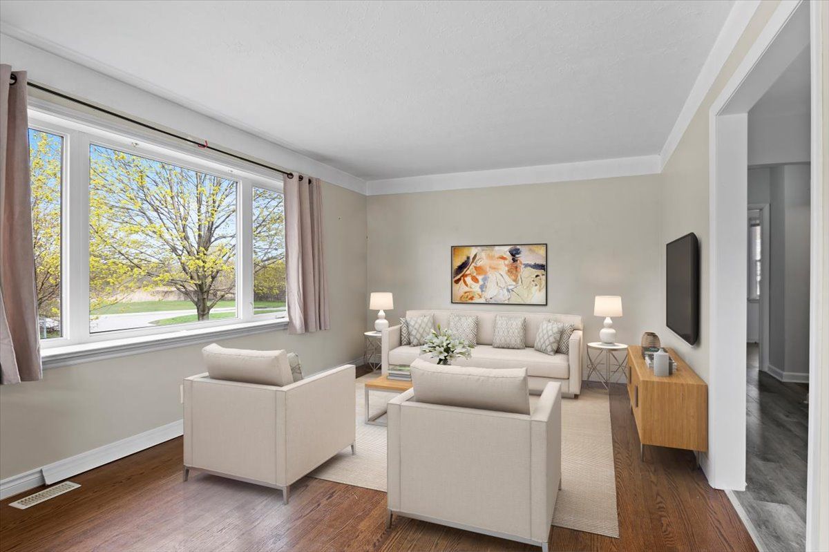 Brick raised bungalow with 2+1 bedrooms, 2 baths. Located in a convenient location close to schools, shopping, great for commuters minutes to the 401. The property feature an over sized garage with extra tall garage doors to fit larger vehicles. The side entrance leads directly to the basement where you will find an large family room, 1 bedroom, 3 pc bath and a roughed in bar area which could be easily turned into a full kitchen for an in law suite. Newer windows throughout.Home is virtual staged