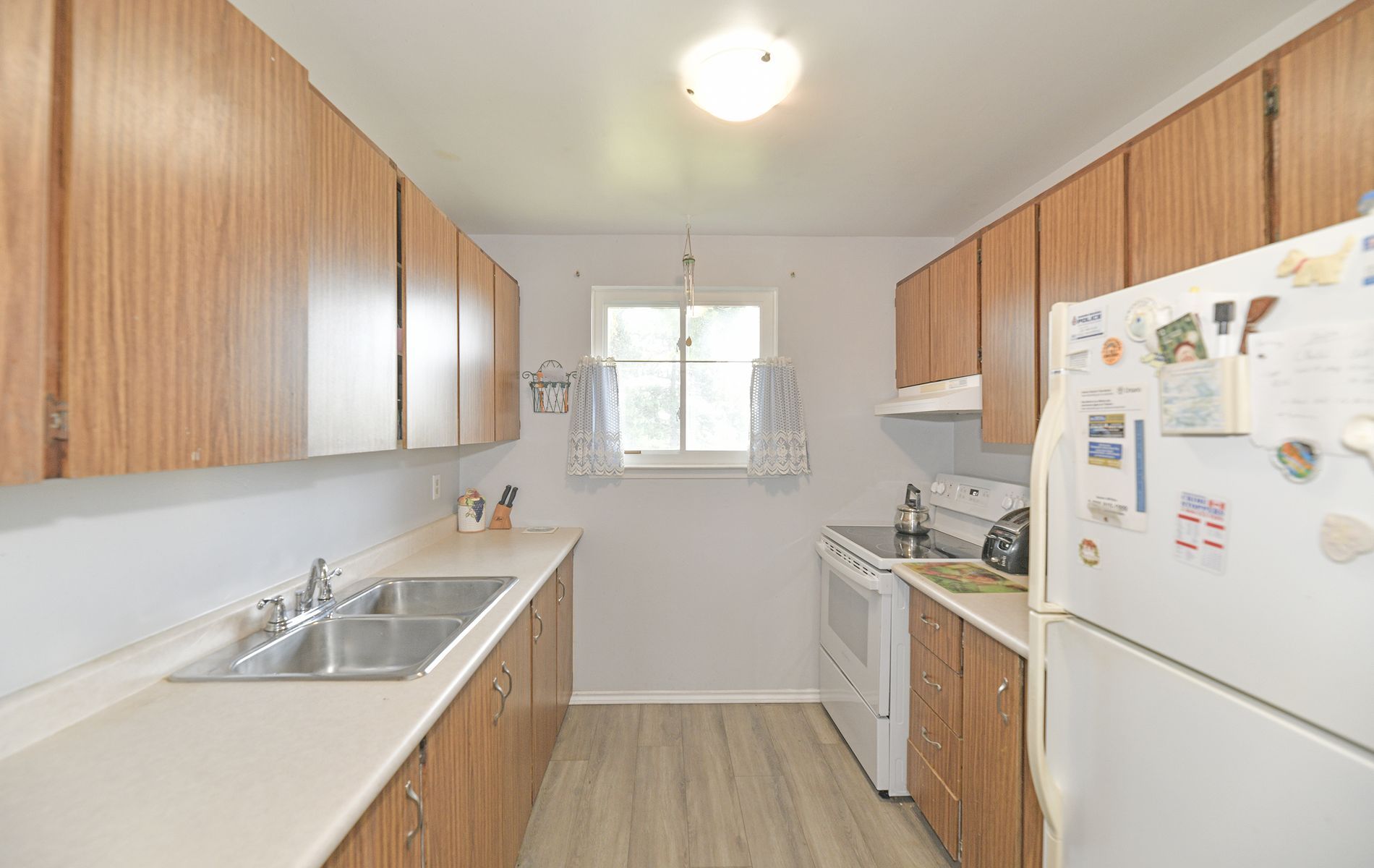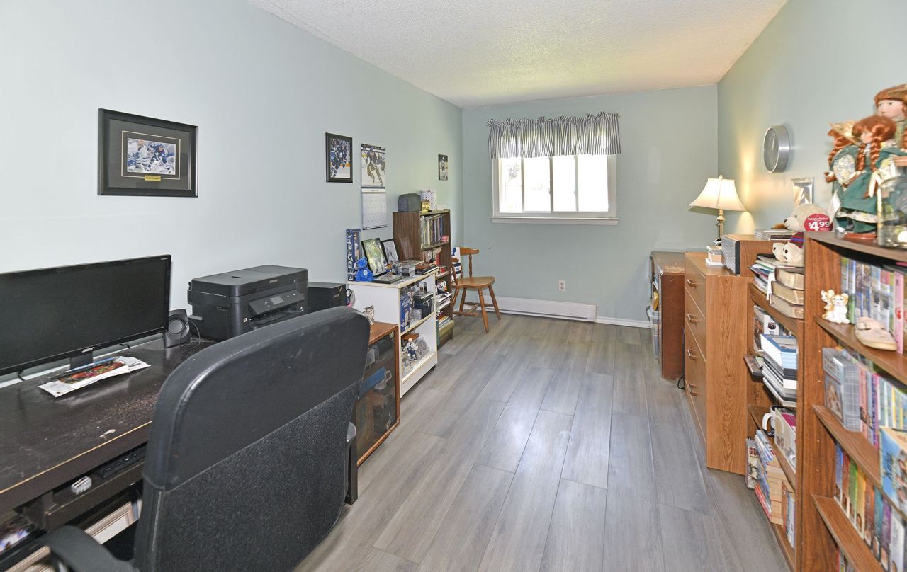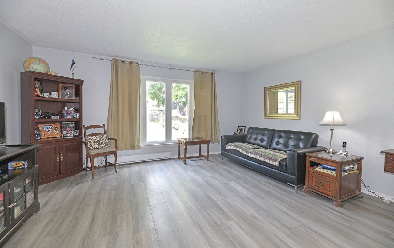 Offers Anytime! Great starter home located close to lake, 401, schools, parks, public transit and shopping. Main floor features a large eat-in kitchen with ample cupboards and counter space. Separate dining area. Living room with huge window provides lots of natural light. Side entrance to yard. Upstairs has 3 spacious bedrooms, all with large closets and a good sized 4 piece washroom. Laminate flooring on main floor and second floor. Full unfinished basement ready for your finishing touches. Extra deep rear yard with storage shed.Laminate flooring on main and second floor installed in 2019. Electric baseboard heaters installed in 2019. Roof re-shingled and vents installed in 2022. Windows and exterior doors installed in 2019. Driveway redone in 2020.