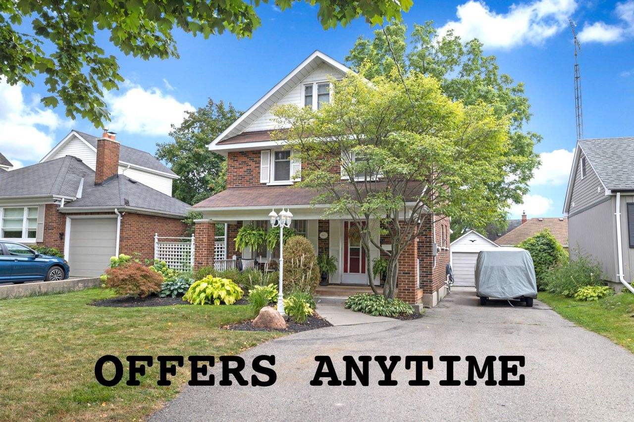 OFFERS ANYTIME! Perfect Family Home! Charming Century Property With Incredible Curb Appeal. Enjoy The Tree Lined, Mature Neighbourhood On Your Oversized Lot With Private Backyard, Immaculate Gardens And Covered Front And Back Porch. Featuring 9 Foot Ceilings, Renovated Kitchen With Quartz Countertops, Updated Backsplash And Stainless Steel Appliances, Eat-In Kitchen, Open Concept Living And Dining Room. Cozy Up To The Gas Fireplace, Large Picture Windows & Brand New White Oak Engineered Hardwood Floors Throughout Main Floor. Upstairs Features 3 Great Sized Bedrooms With Original Hardwood Floors, Extra Office Nook, Updated 4 Piece Bath & Original Wood Trim Throughout The Entire Home. Stunning Updated Designer Light Fixtures. Large Upper Level Loft Could Be Used As Living Space Or Storage. Full Height Finished Basement With Spacious Recreation Room, 2 Piece Bath & Lots Of Storage! Private Backyard For Hosting! Detached Garage/Workshop & 7 Car Parking, Brand New Large Shed Behind Garage.This Home Boasts Character You Cannot Often Find! Furnace/Ac(13), Shingles(12),Cvac(20),Hwt(19)Rental. All Ducts Cleaned Summer 2023. Close To Grocery Stores, Walking Trails, Parks, Schools & The 401.