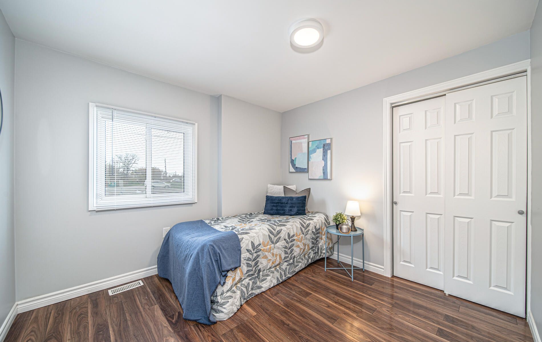 Great investment opportunity awaits on this huge 40' X 110' Ft corner lot detached bungalow excellently located steps to public transit, seconds to Hwy 401, conveniently near to all amenities and minutes to Lakeview Park. This 2 bedroom 1 bath home has been updated with new siding, new shingles, new AC and new electrical panel. Main floor features bright family room with large window, open concept eat-in kitchen with tile floors, eat0in area and access to basement with separate entrance., two generous sized bedrooms with closet and 4 piece main bath with laundry ensuite. The partially finished basement features a recreation room and an additional space for office or bedroom. Outside features detached single car garage, private driveway that parks up to 3 cars, patio, large fenced yard and patioNew Flooring New siding 2021 New shingles 2021 New AC 2021 New Electrical panel 2021