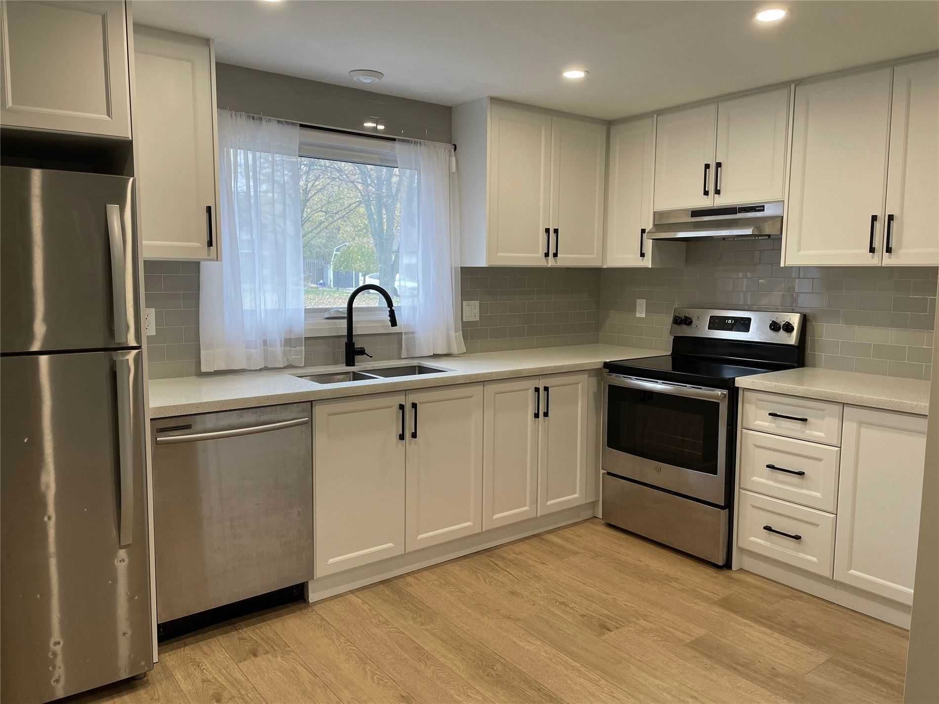 Situated in a family friendly Oshawa neighbourhood on a quiet court. Separate entrance to this 3 bedroom main floor bungalow available for lease. Kitchen has quartz counters, tiled backsplash, pot lights and stainless steel appliances, including dishwasher! The living room features a beautiful trendy accent wall. Updated 4 pc bath, private laundry plus large, shared, fenced yard.Parking for two. Tenant pays own hydro (units separately metered) and 60% of water and gas, including hot water tank rental.