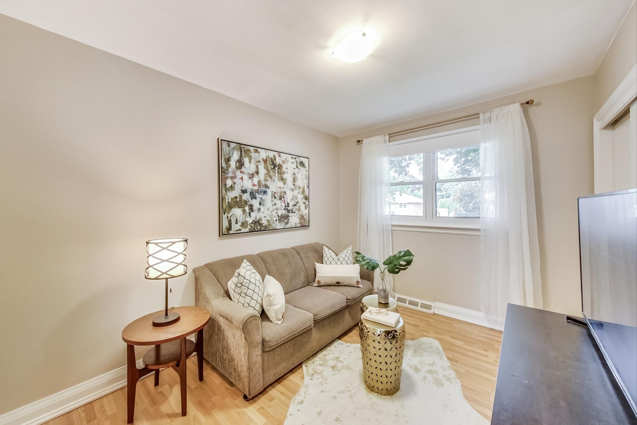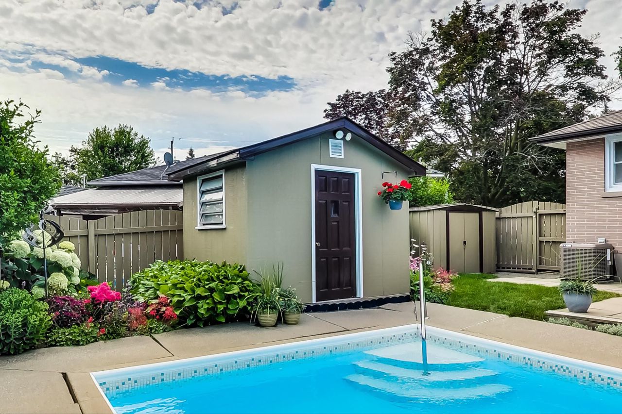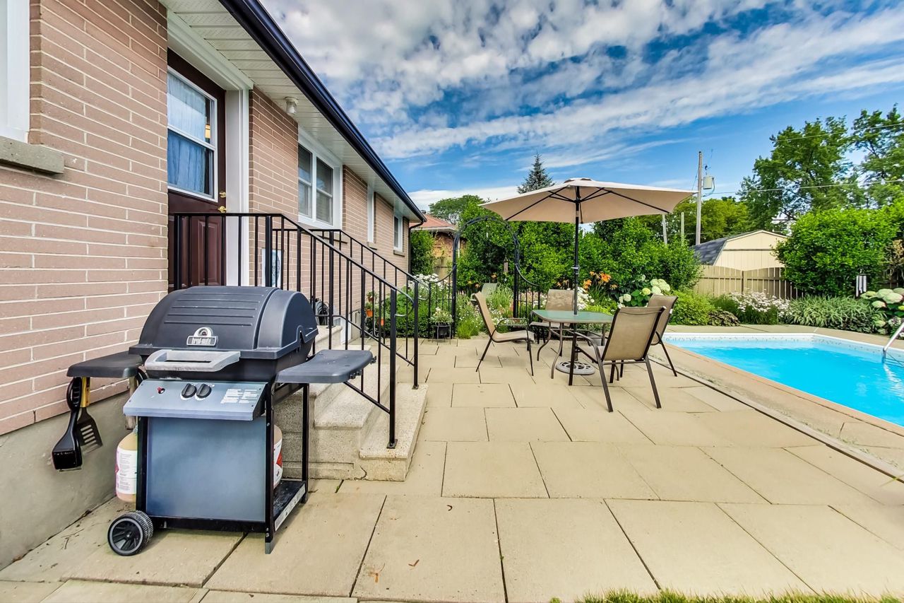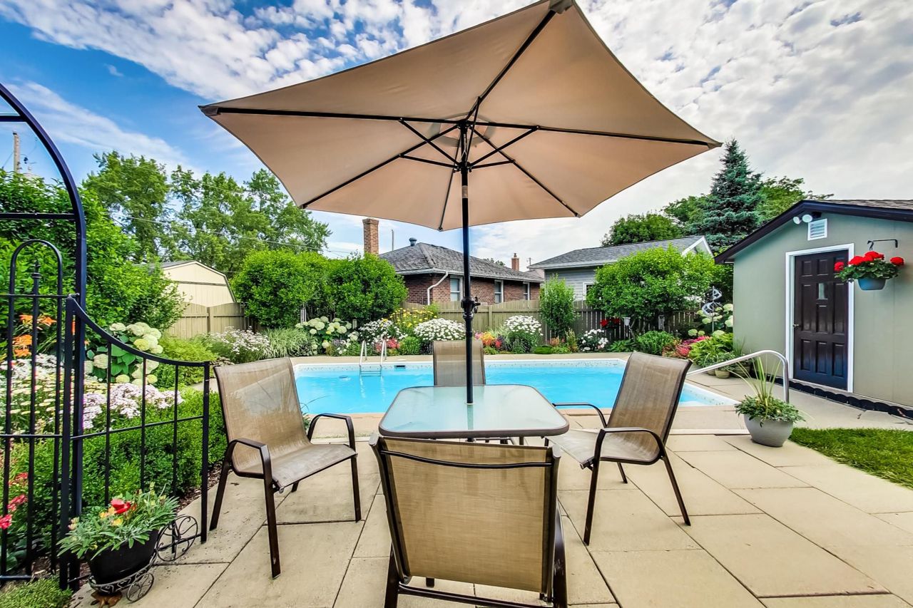 Bright & Spotless 3 bdrm bungalow tucked away in quiet mature neighbourhood. Meticulously cared for home with backyard oasis and inviting in-ground pool. Separate entrance to basement featuring Large L-shaped rec. room with retro bar, exercise area & workshop. Many recent updates including newer furnace 2022; central air (3 yrs old); Roof, soffit & eaves updated 2016 with lifetime transferable warranty (to one owner); new insulation 2016; vinyl windows & exterior doors replaced 2002, chimney rebuilt from roof up in 2015; HWT owned 2021, 2 garden sheds. Shows 10++Avg. monthly hydro approx. $290 (remember no gas bill)