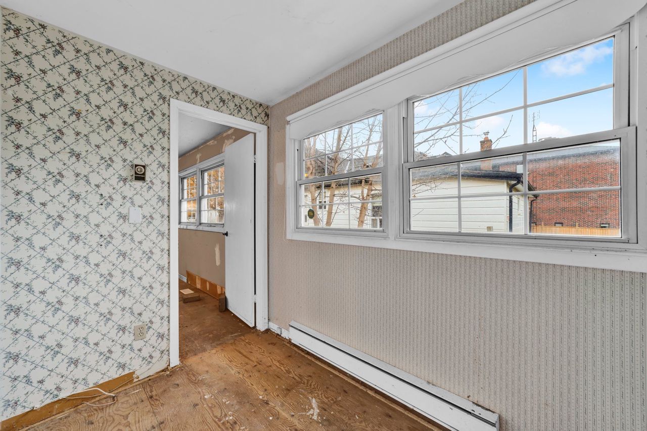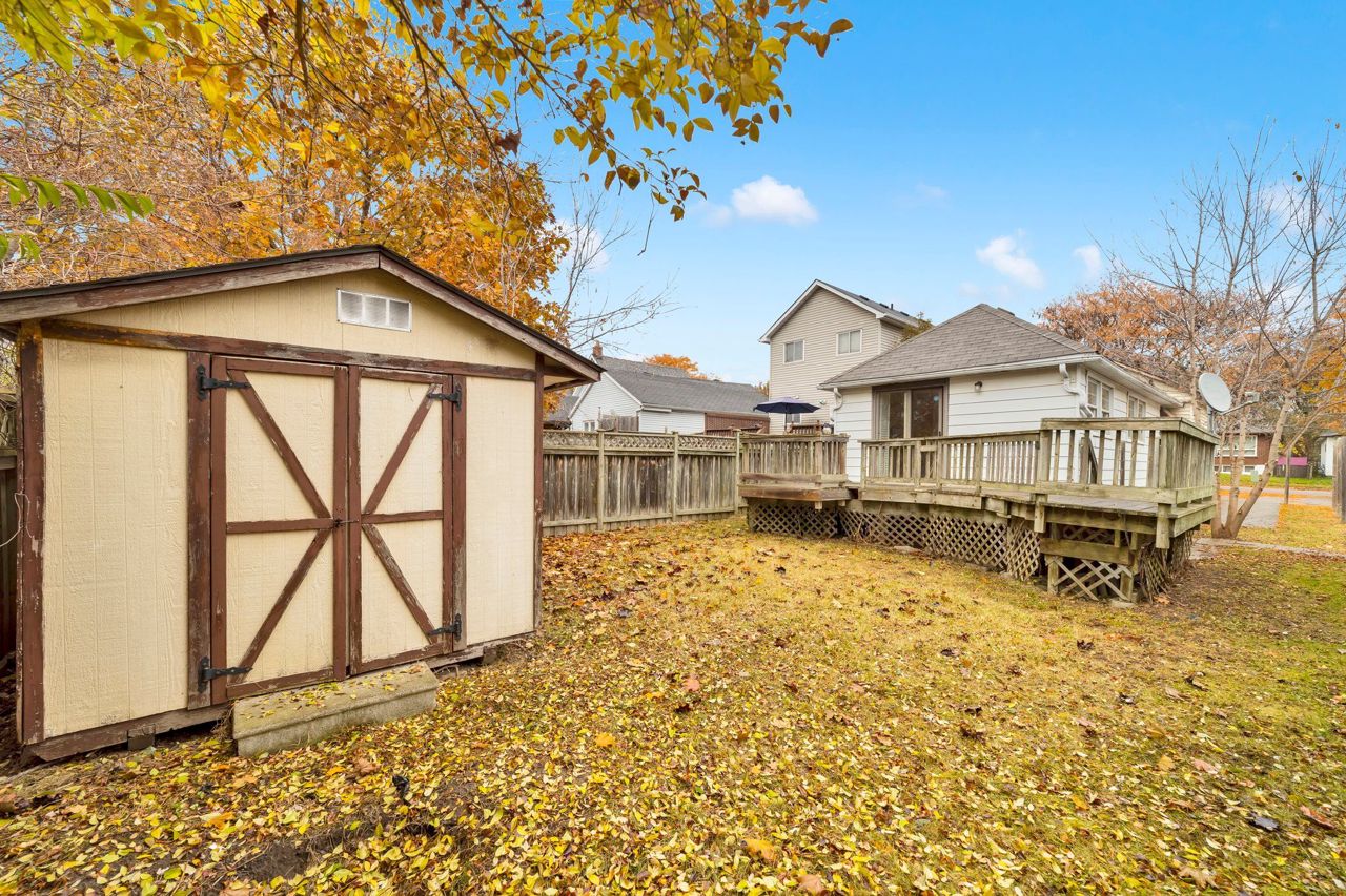 QUAINT single family detached featuring 1bed+ enclosed den, 1 bath bungalow approx. 1000sqft AG on a spacious 30X115ft private treed lot. Single storey living at its best. Perfect for first-time buyer families looking for a starter home, families looking to downsize for retirement, or investors looking to start their portfolio on a budget. Main level features open concept living room, family sized galley kitchen & formal dining area. Oversized primary bedroom – can be converted to two separate beds. Enclosed den w/ window can be used an office. Small family room W/O to rear balcony deck. Part finished full sep-ent bsmt w/ full 4-pc bath awaiting your vision. Can be converted to In-law/ guest/ rental suite.Buy a smaller detached home on a budget in a quiet community close to top rated schools, parks, shopping for the price of a condominium.