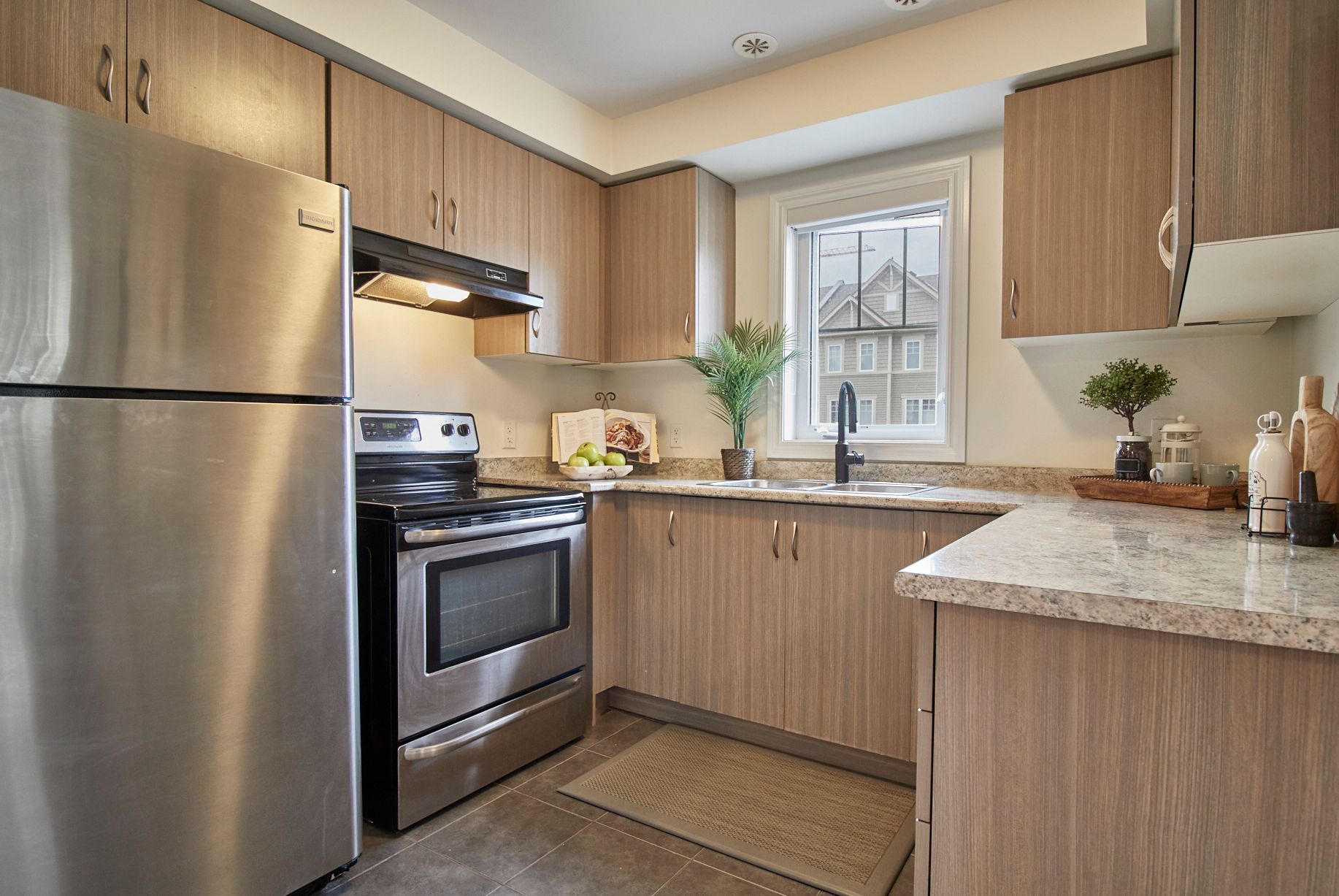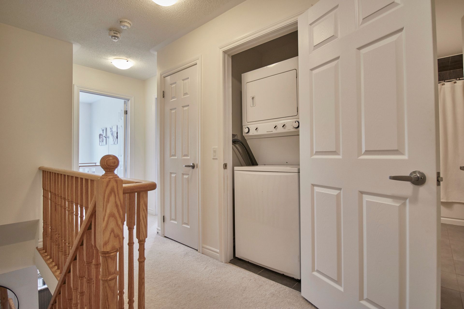 Sweet and affordable 2 br townhouse in the sought after Windfield Farms community of north Oshawa. Featuring a single car garage with access to house plus an additional 2 car parking in the driveway that's complimented by the updated patio/landscaping. The open concept living space is great for 1st time buyers, small families and/or students. Walk out to your own private deck and enjoy a barbeque with a few friends. Stainless appliances and ceramic floors in the kitchen help to tick all the boxes. Beautiful master bedroom large enough for a king size bed and features nearly wall to wall mirrored closets. The 2nd br, a handy 3rd floor laundry and a 4 pc bath finish off the upper floor.The convenient location that's just off the 407 gives you access to all sorts of amenities including Durham College/UOIT/Community Centre, restaurants/bars, LCBO, shopping and transit. AND you're just a short walk away from Costco;!