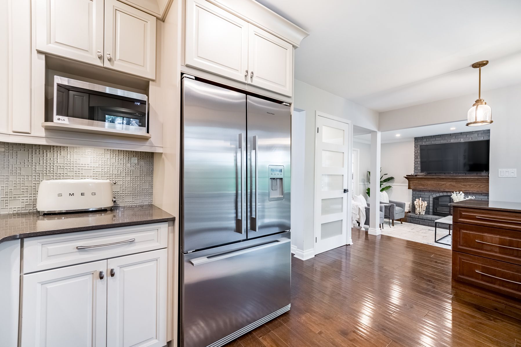 Hardwood Floor Sunken Room Fireplace