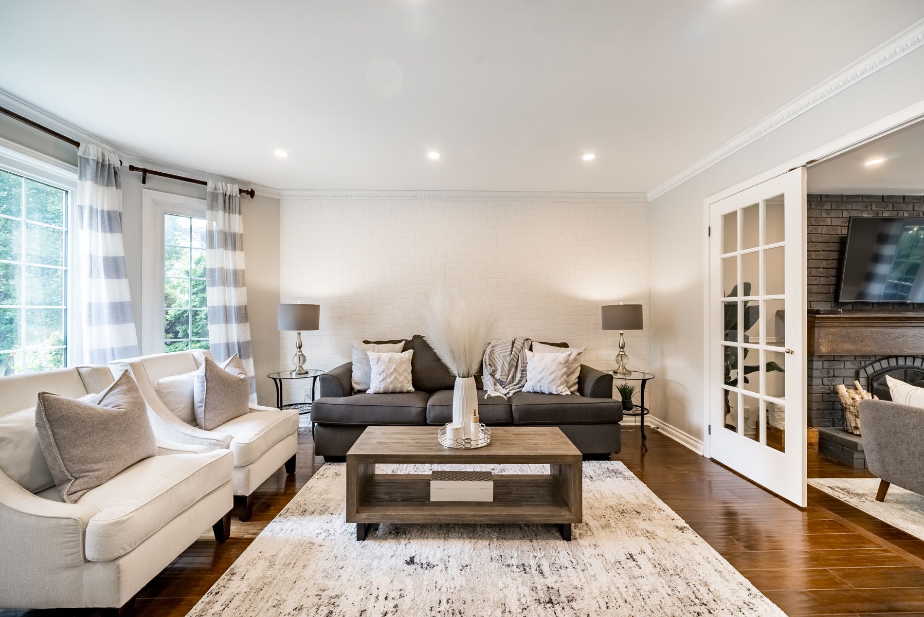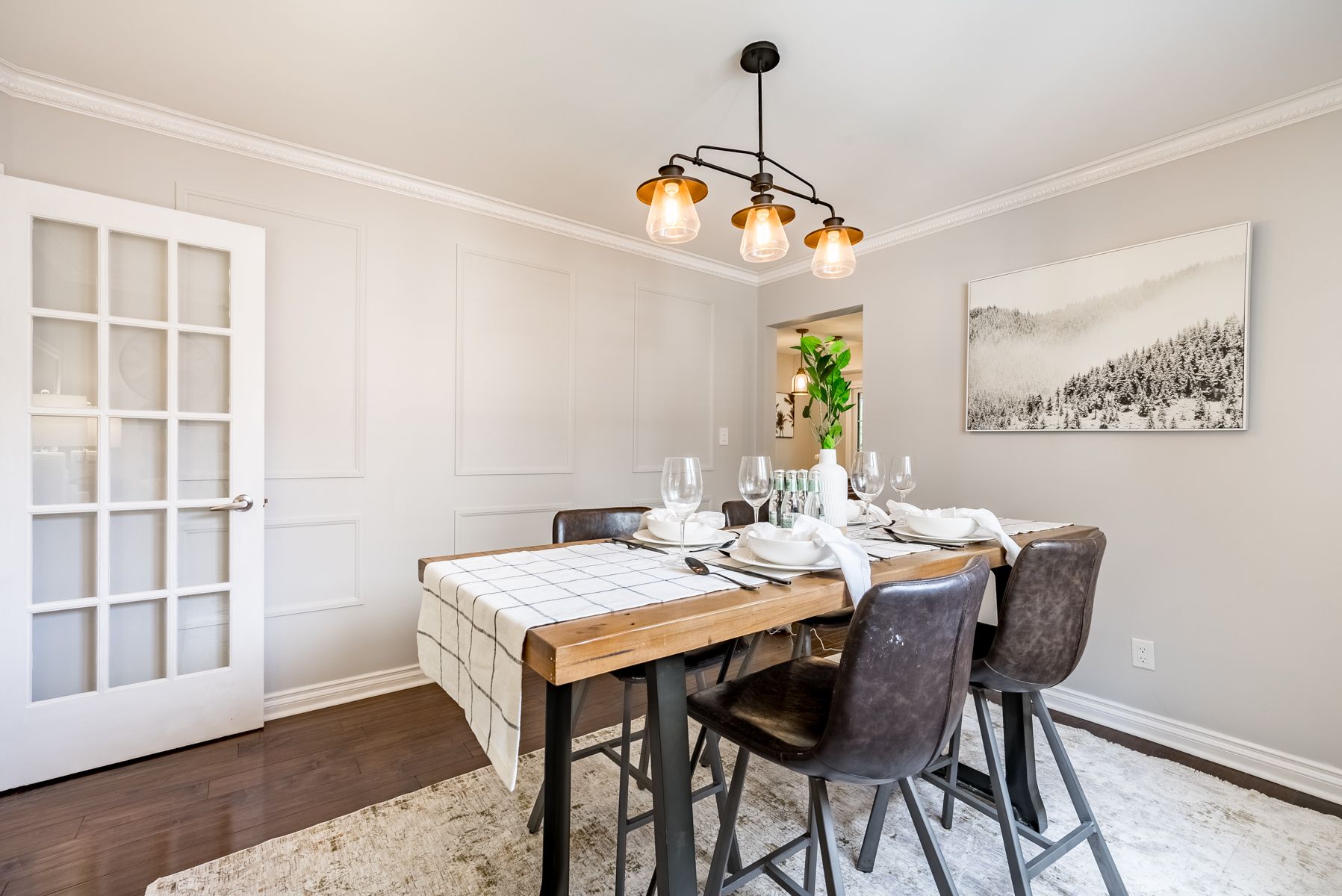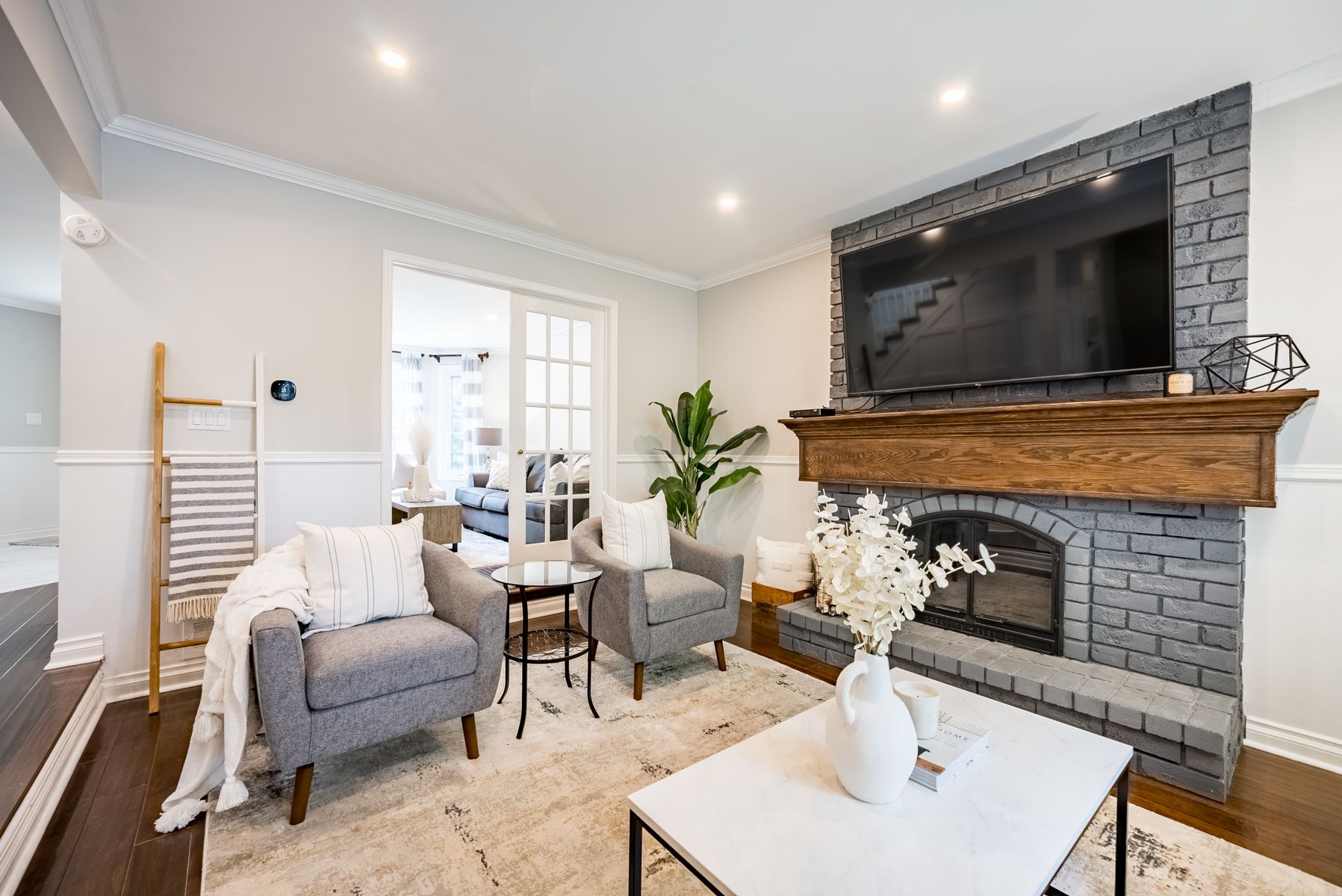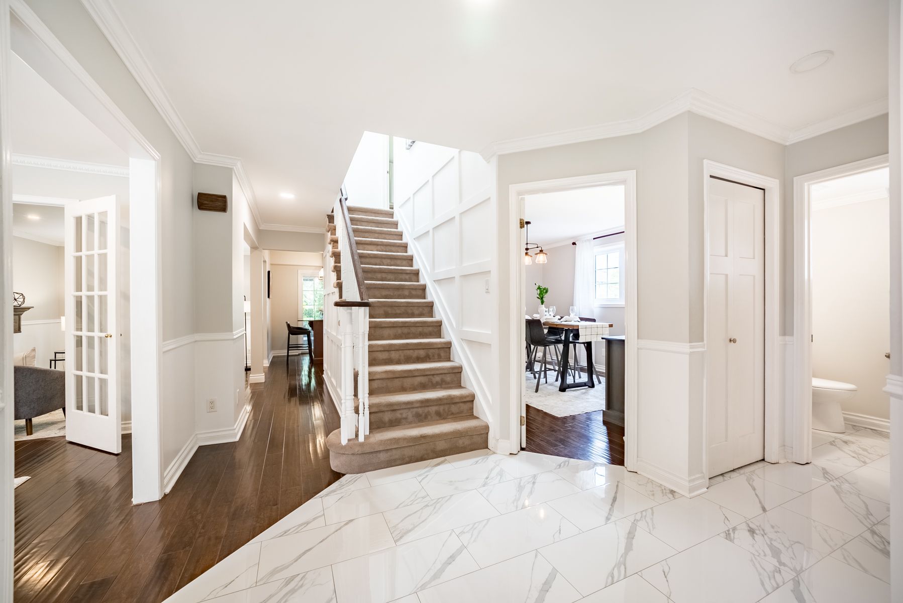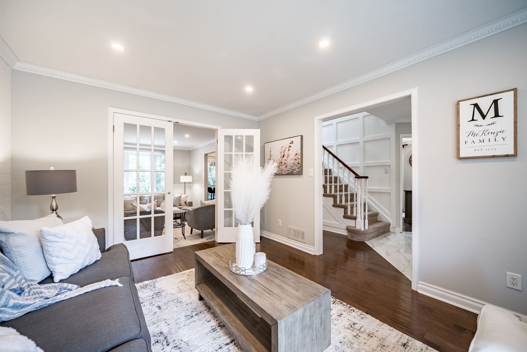 Hardwood Floor French Doors Crown Moulding