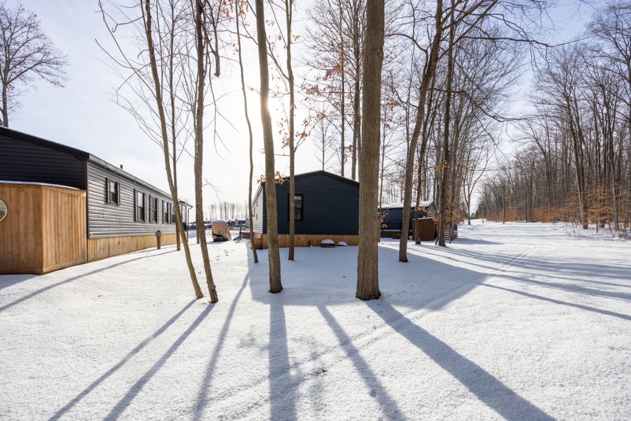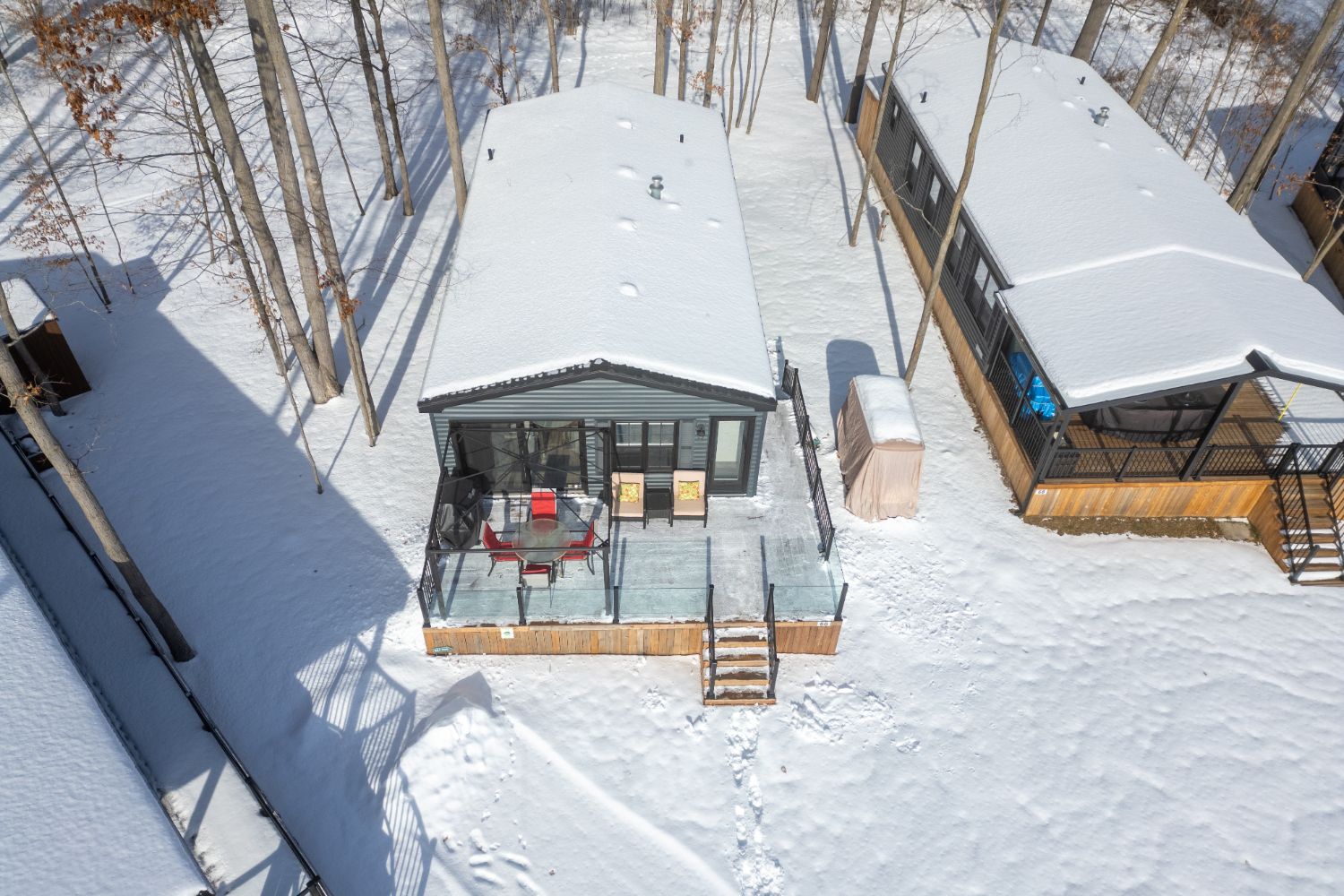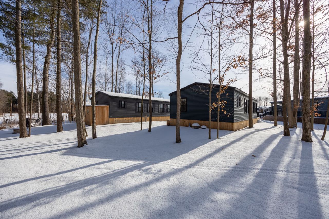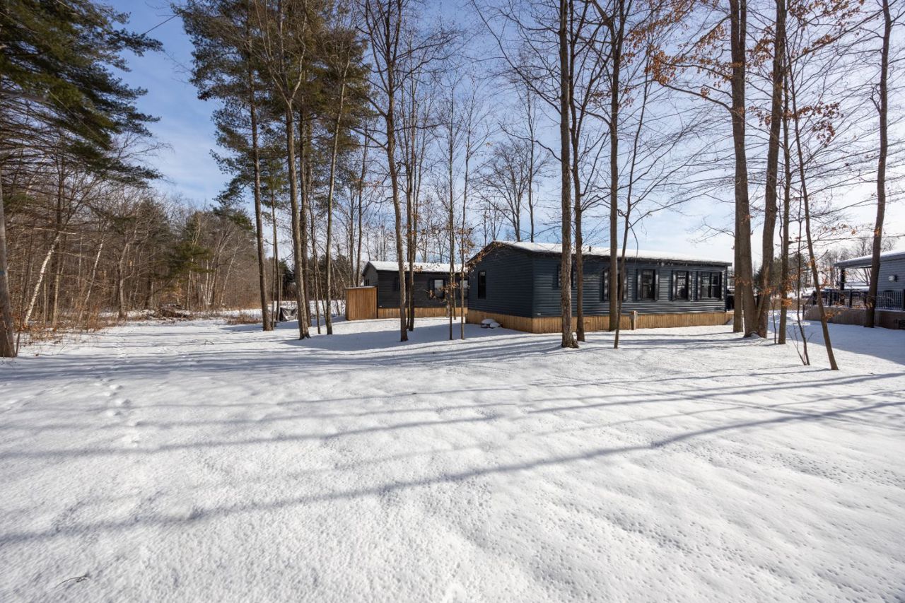 Welcome to 66 Cherry Hill Lane at Bellmere Winds Golf Resort on Rice Lake! Located on a prime dead-end lane, this Northlander Superior model offers 3 beds, 2 baths, and 800 sqft of open-concept living space. First occupied in 2021, this fully furnished, never-rented cottage features a primary bedroom with queen bed, ensuite bath and double closet, a second bedroom with closet, and a third bedroom with double bunk beds. The modern kitchen includes an island and full-size appliances, while the living/dining area boasts a fireplace, pull-out couch and walks-out to the patio. For comfort, this unit includes a propane furnace, AC, instant hot water tank, and outdoor heater. Enjoy privacy on a rare deep pie-shaped lot backing onto a wooded area, including new glass railings and an extended deck. Resort fees include six unlimited golf memberships and access to pools, a beach, amenities and resort activities. 2025 site fees are $10,875+HST. Owners winterized with the Carefree Platinum Package. **EXTRAS** Site fees include water, hydro, lawn, parking, amenities, and 6 golf memberships. Amenities: 18-hole golf overlooking Rice Lake, 2 pools, splashpad, beach, resort activities. Boat slips extra charge. Internet available. Pet friendly.
