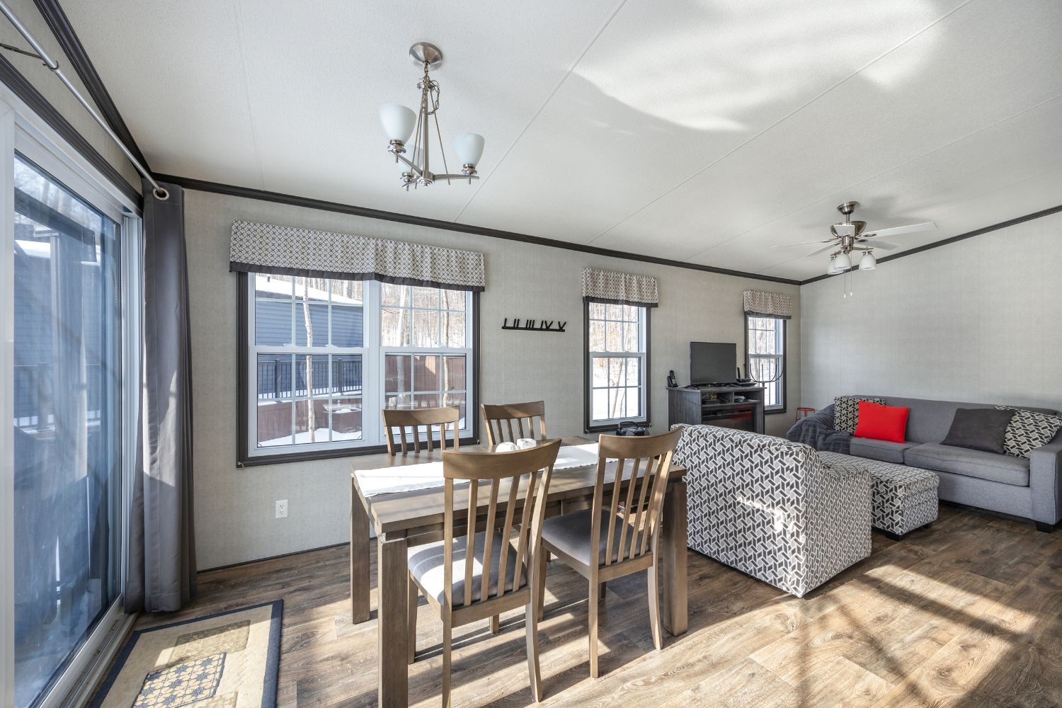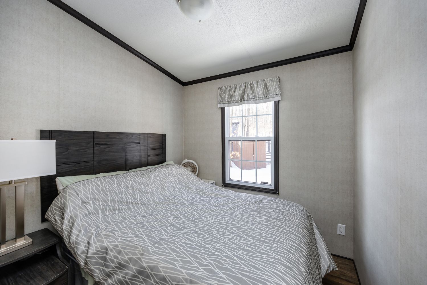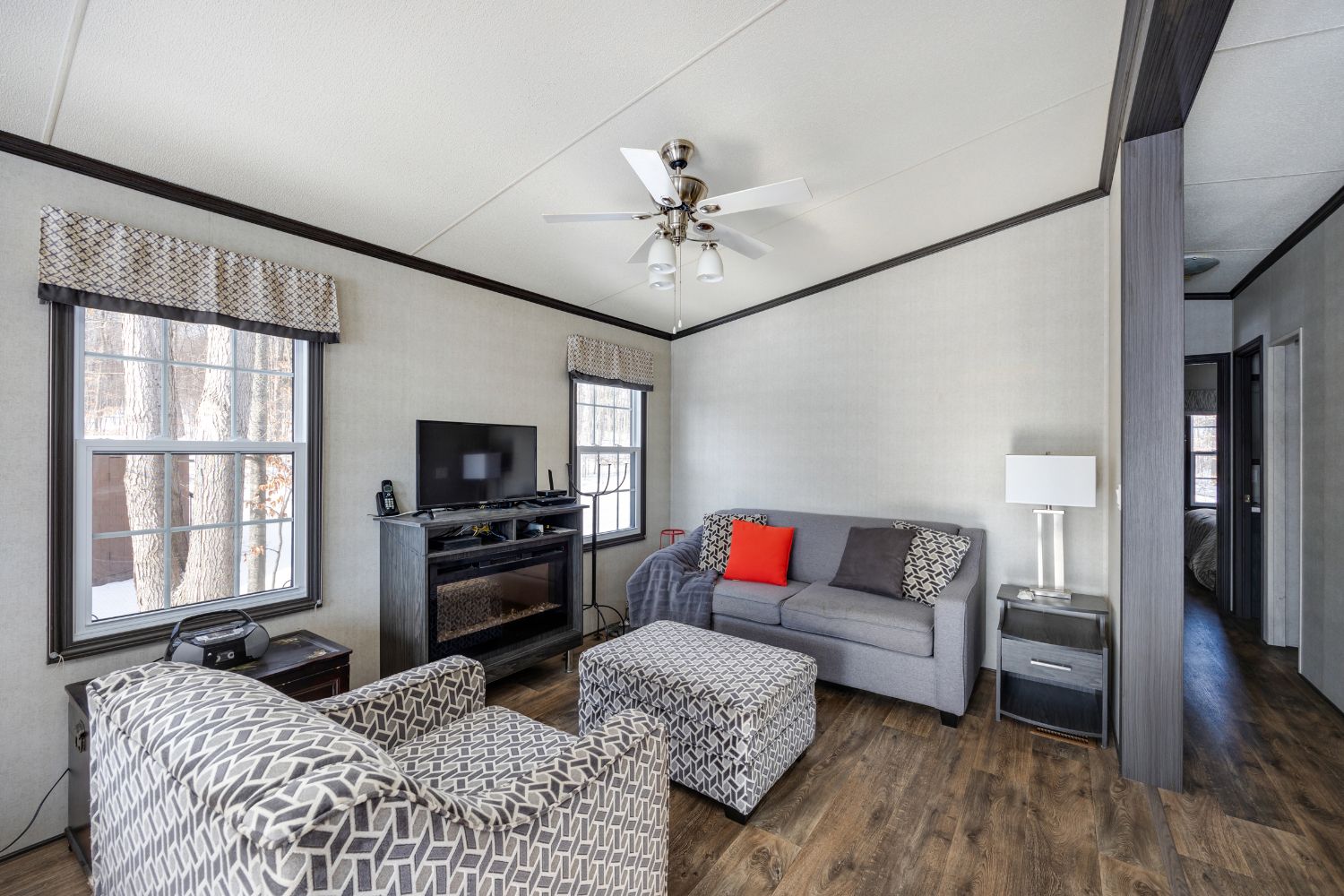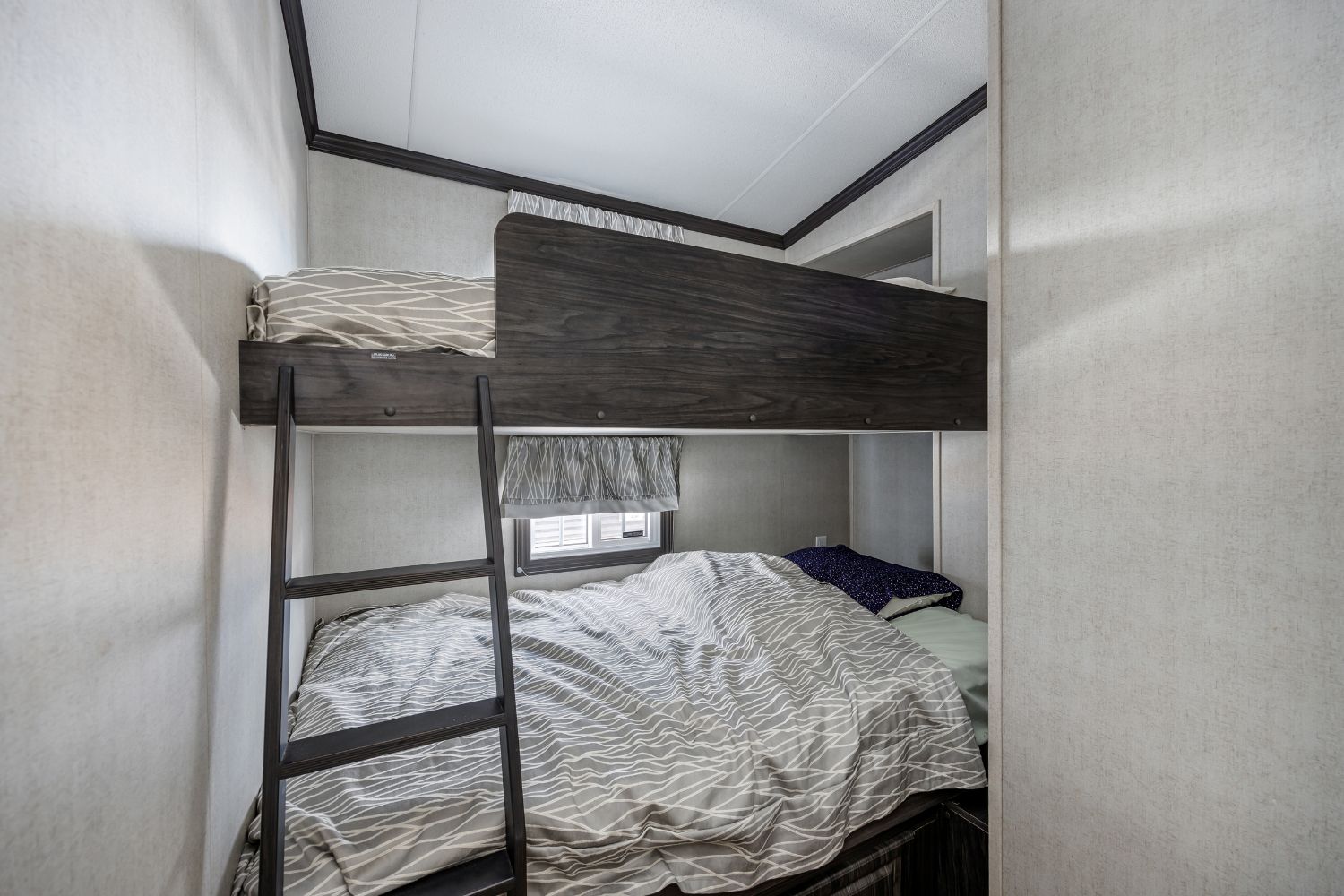 Welcome to 66 Cherry Hill Lane at Bellmere Winds Golf Resort on Rice Lake! Located on a prime dead-end lane, this Northlander Superior model offers 3 beds, 2 baths, and 800 sqft of open-concept living space. First occupied in 2021, this fully furnished, never-rented cottage features a primary bedroom with queen bed, ensuite bath and double closet, a second bedroom with closet, and a third bedroom with double bunk beds. The modern kitchen includes an island and full-size appliances, while the living/dining area boasts a fireplace, pull-out couch and walks-out to the patio. For comfort, this unit includes a propane furnace, AC, instant hot water tank, and outdoor heater. Enjoy privacy on a rare deep pie-shaped lot backing onto a wooded area, including new glass railings and an extended deck. Resort fees include six unlimited golf memberships and access to pools, a beach, amenities and resort activities. 2025 site fees are $10,875+HST. Owners winterized with the Carefree Platinum Package. **EXTRAS** Site fees include water, hydro, lawn, parking, amenities, and 6 golf memberships. Amenities: 18-hole golf overlooking Rice Lake, 2 pools, splashpad, beach, resort activities. Boat slips extra charge. Internet available. Pet friendly.
