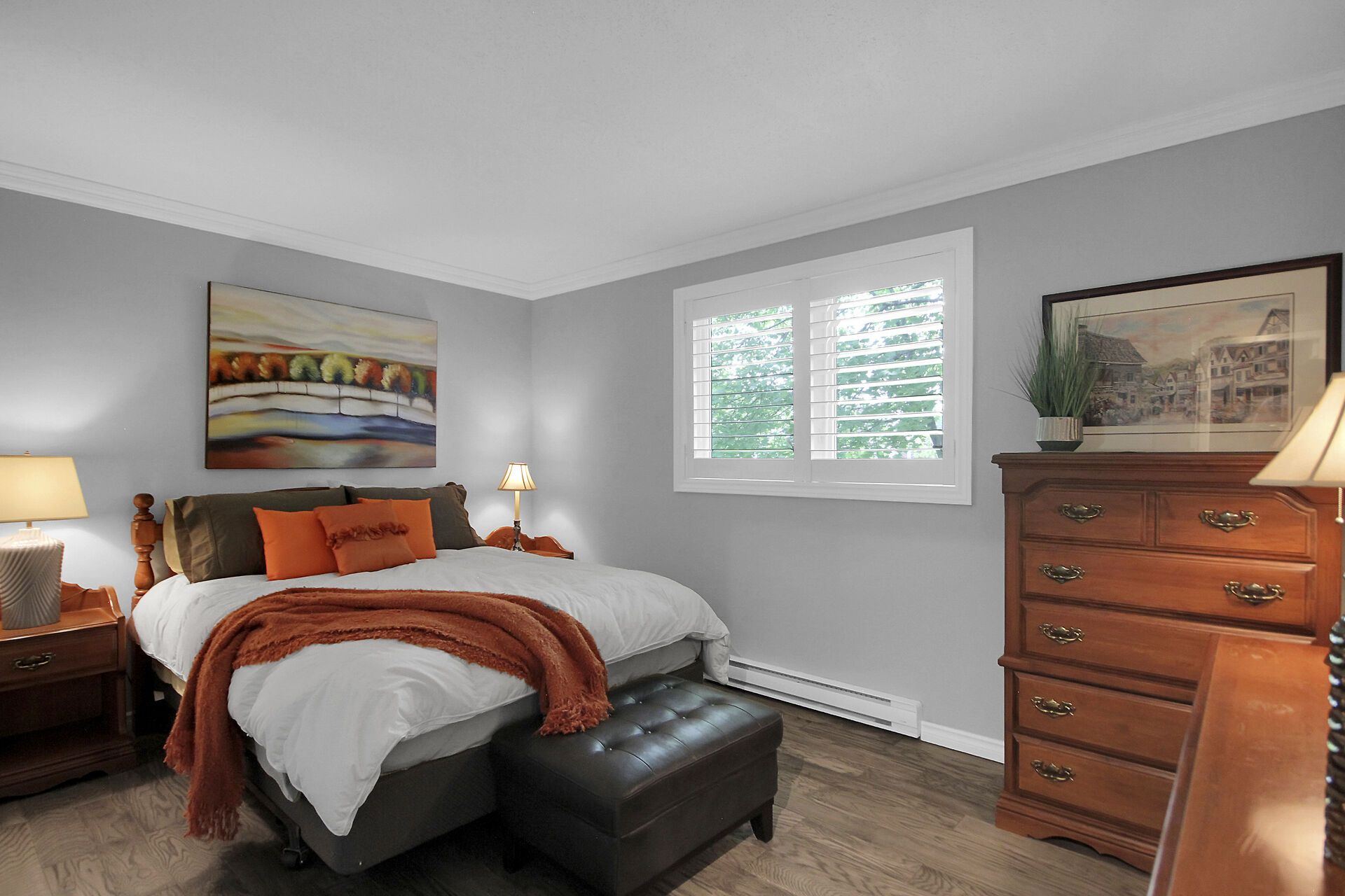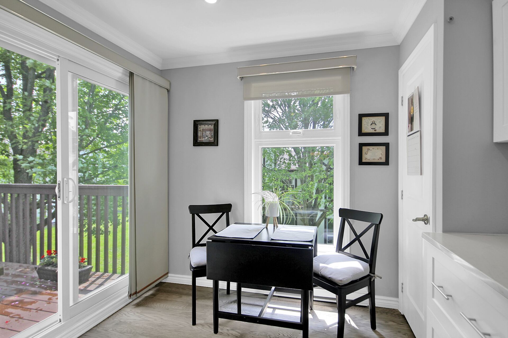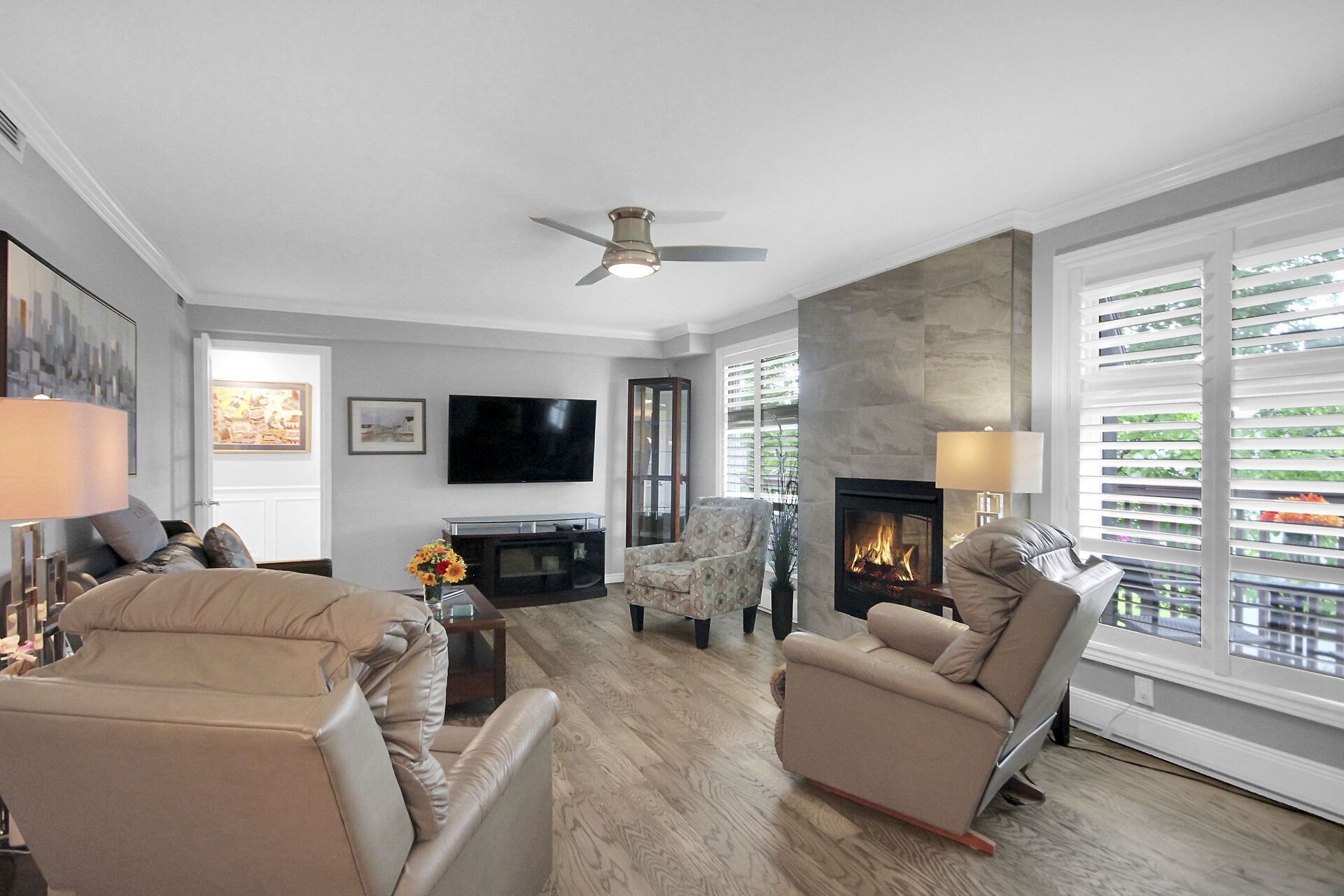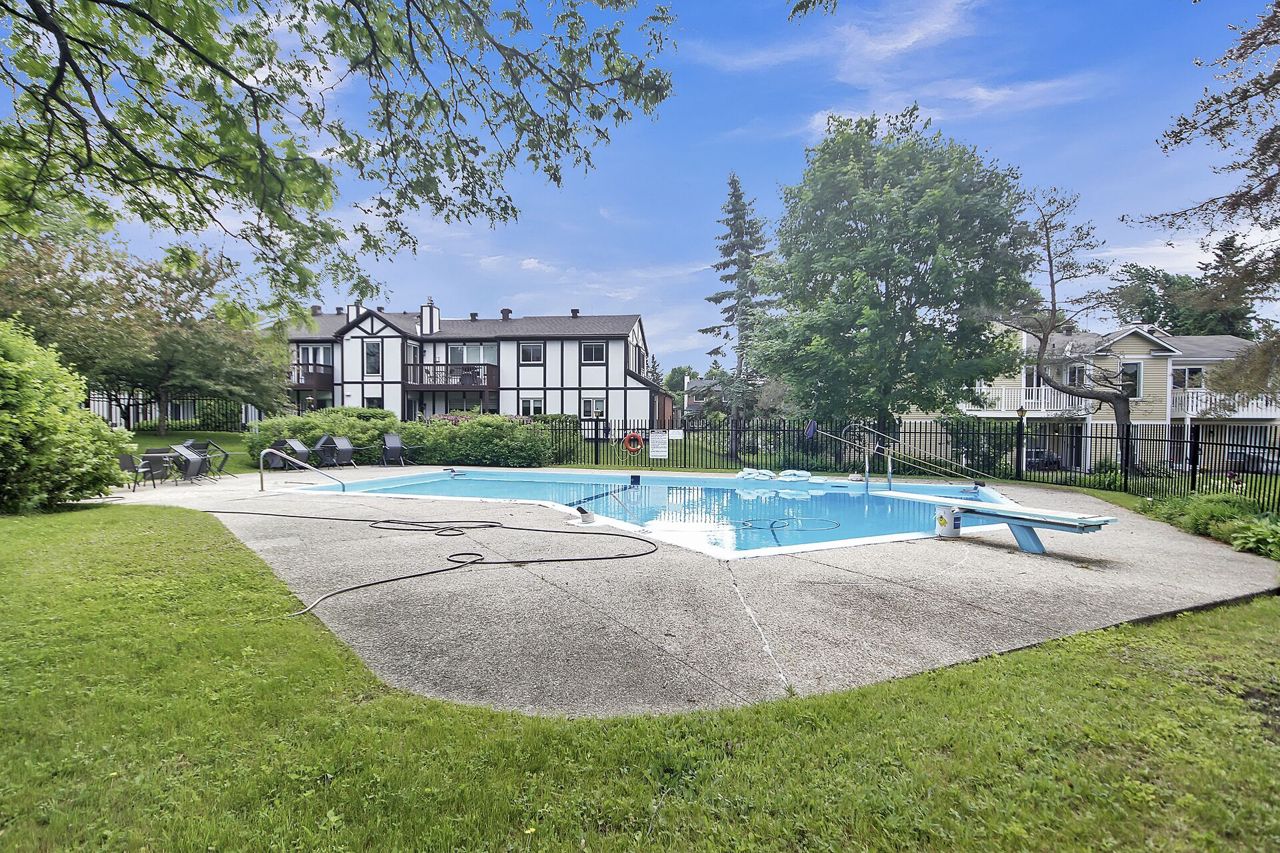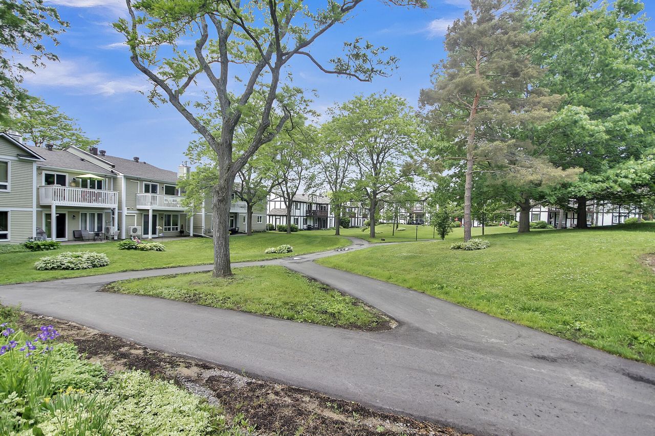 BEAUTIFULLY RENOVATED Two-bedroom two-bath condo with 2 PARKING! One garage with inside entry & driveway as well as many visitors parking. This condo is move-in ready & tastefully renovated with 2 high-end bathrooms, hardwood & tiles throughout, a designers kitchen with Quartz Countertop & fashionable back splash! The balcony off the kitchen offers a private & gorgeous view of landscape grounds. Condo fees of only $600 includes water, roof, snow removal & a beautiful saltwater pool. Windows are not part of condo fees but were done in 2015. Many renovations in recent years! (2025) laundry room (2023) painting, new flooring & crown moulding in bedrooms & baths, all doors including garage door (2021) main bathroom (2018) kitchen, dining room, living room including a new gas fireplace & new flooring & crown moulding. You have got to Love That Home! F244 requires 24 hrs irrevocable.