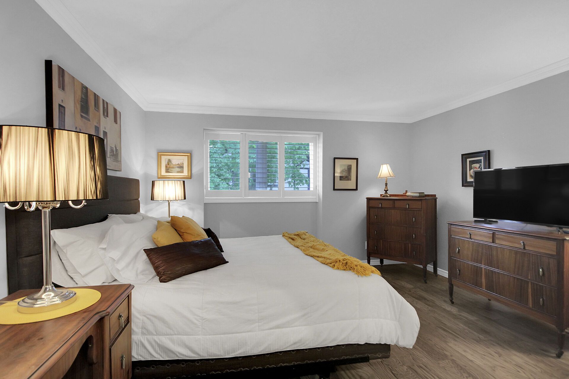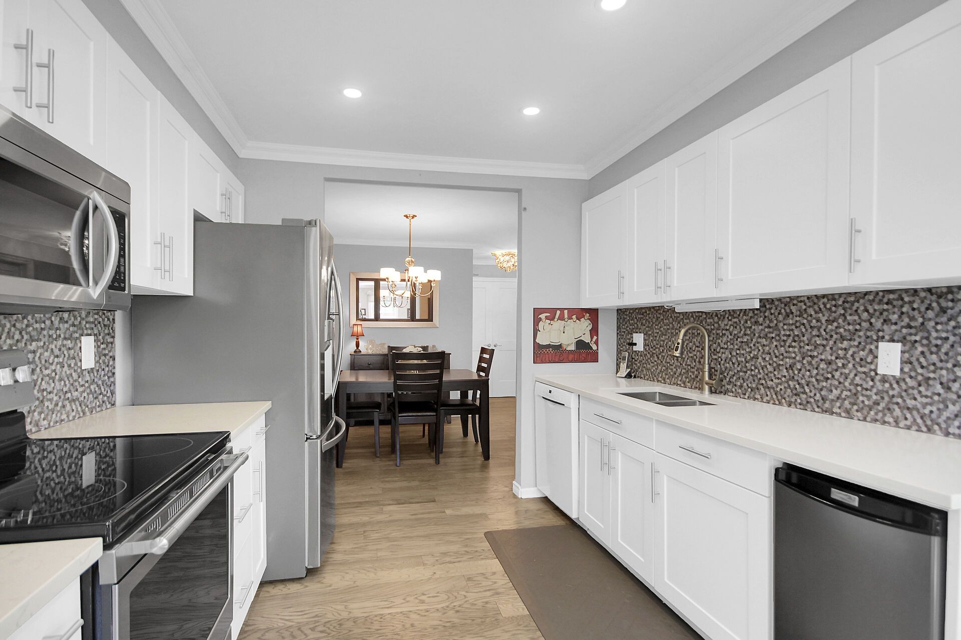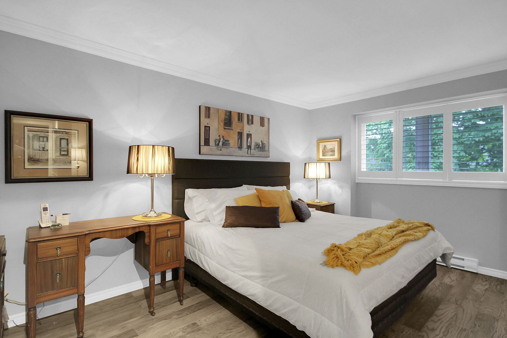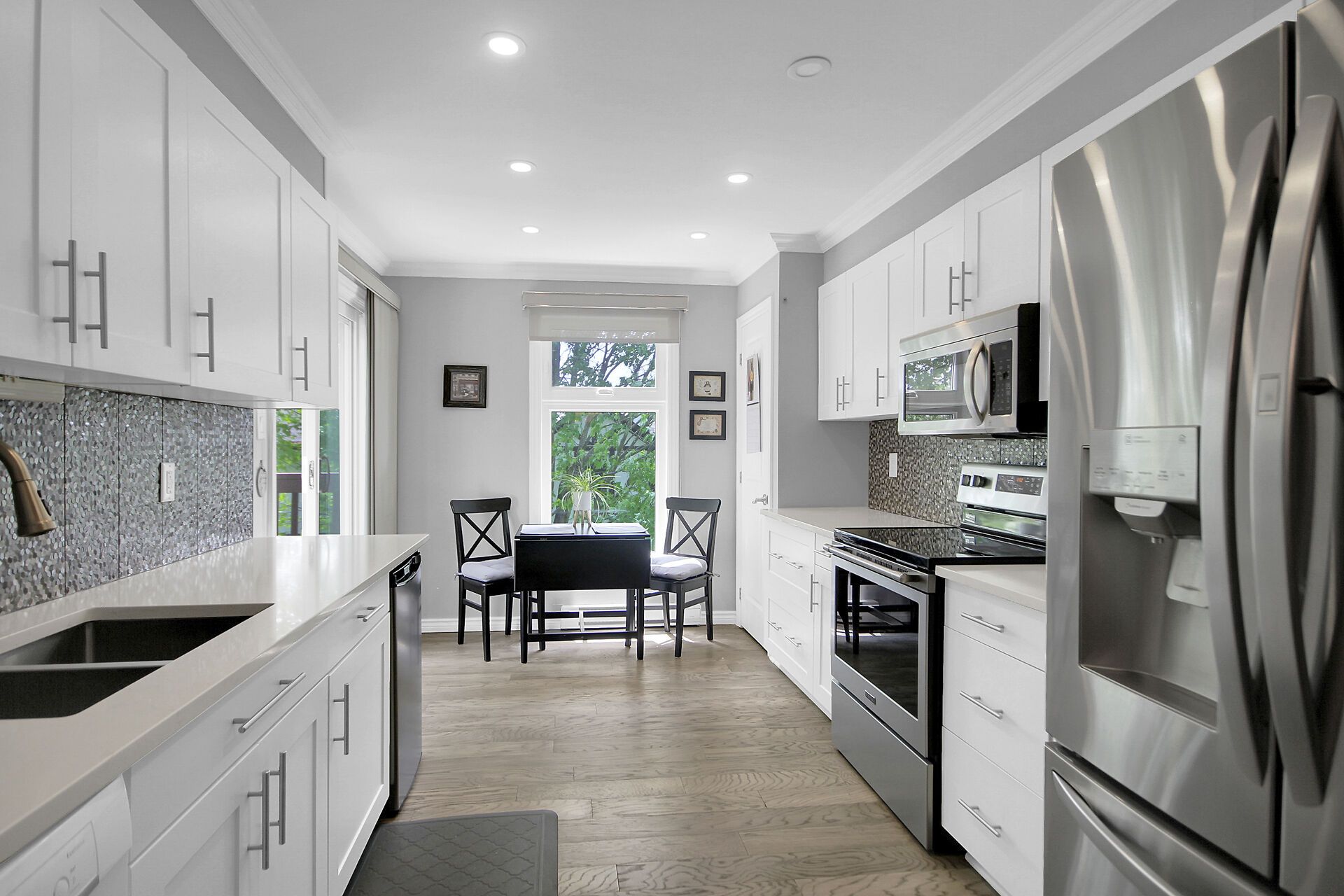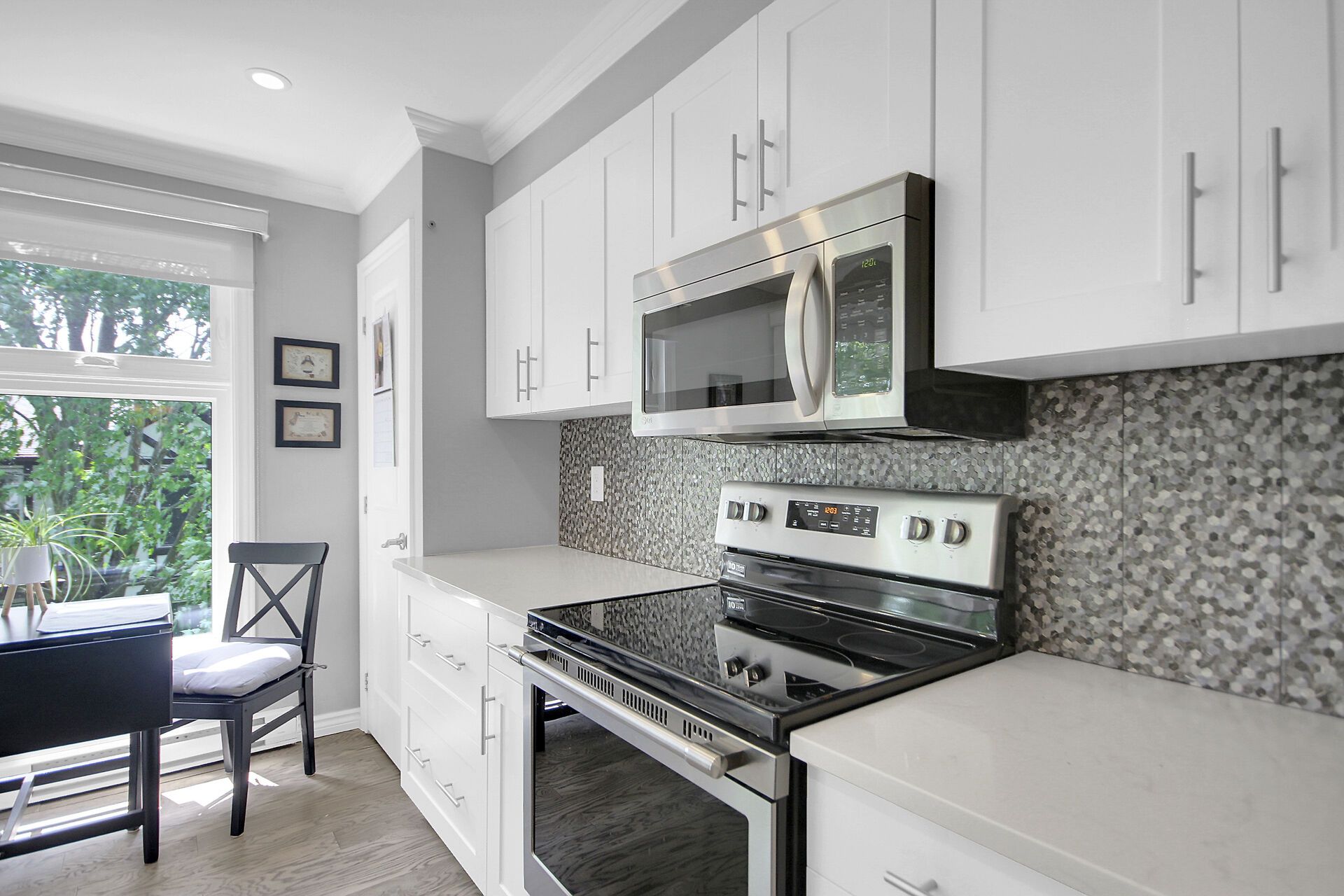 BEAUTIFULLY RENOVATED Two-bedroom two-bath condo with 2 PARKING! One garage with inside entry & driveway as well as many visitors parking. This condo is move-in ready & tastefully renovated with 2 high-end bathrooms, hardwood & tiles throughout, a designers kitchen with Quartz Countertop & fashionable back splash! The balcony off the kitchen offers a private & gorgeous view of landscape grounds. Condo fees of only $600 includes water, roof, snow removal & a beautiful saltwater pool. Windows are not part of condo fees but were done in 2015. Many renovations in recent years! (2025) laundry room (2023) painting, new flooring & crown moulding in bedrooms & baths, all doors including garage door (2021) main bathroom (2018) kitchen, dining room, living room including a new gas fireplace & new flooring & crown moulding. You have got to Love That Home! F244 requires 24 hrs irrevocable.